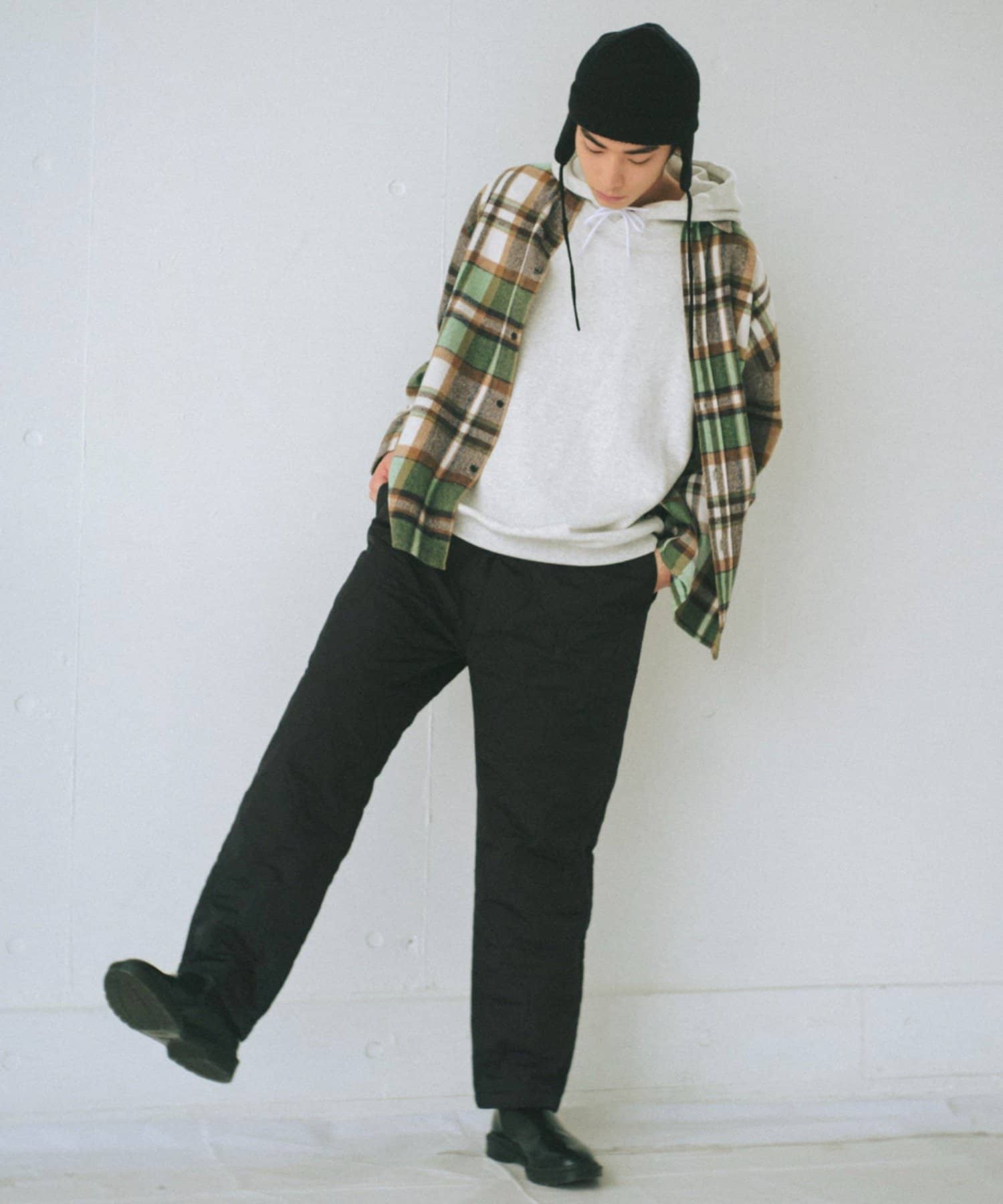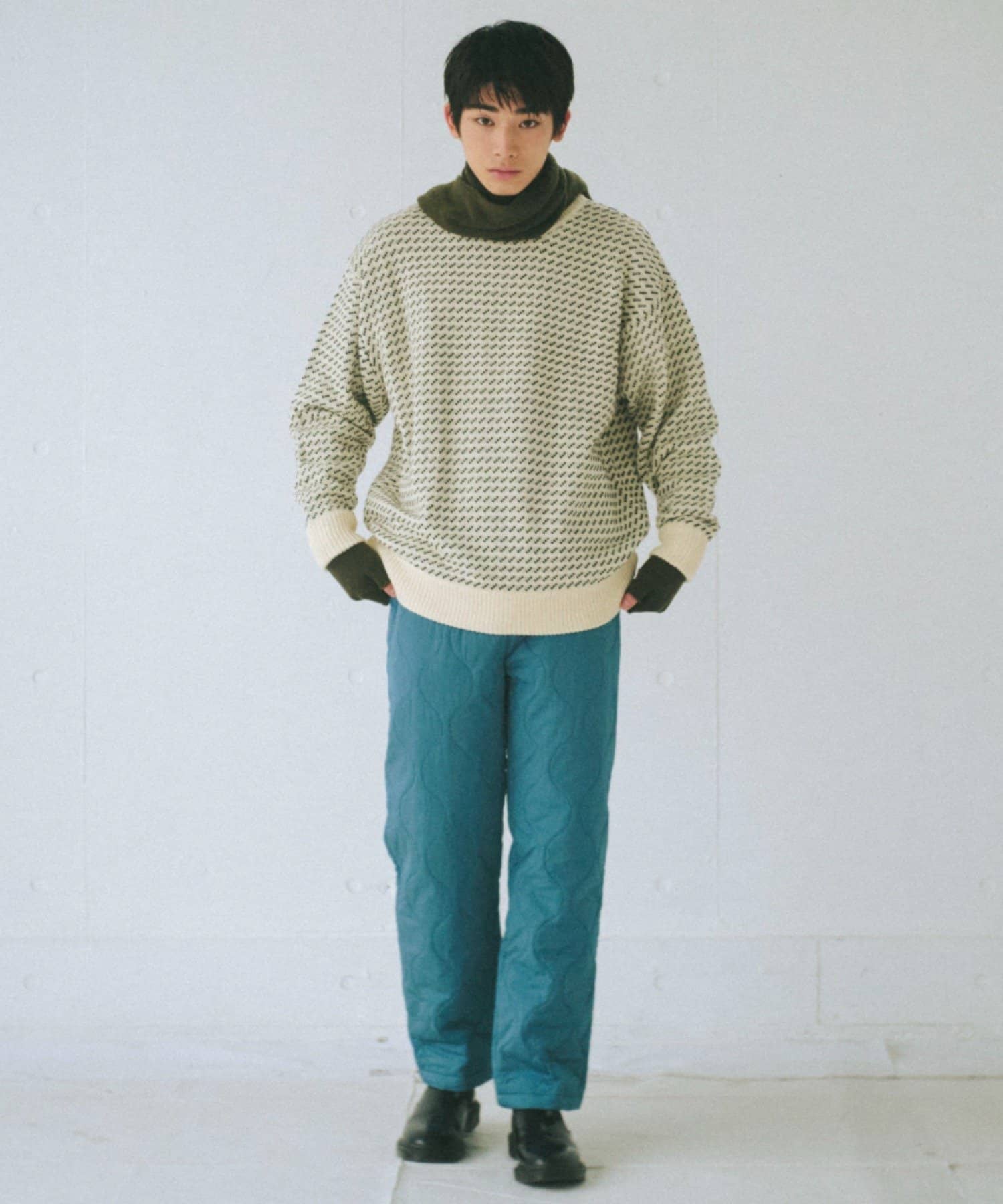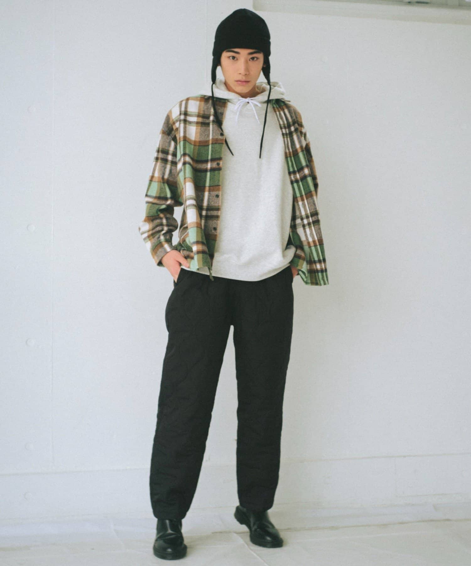 起毛素材や重く見えるアイテムとの相性が良く、スタイリングの幅を広げるアイテムです。