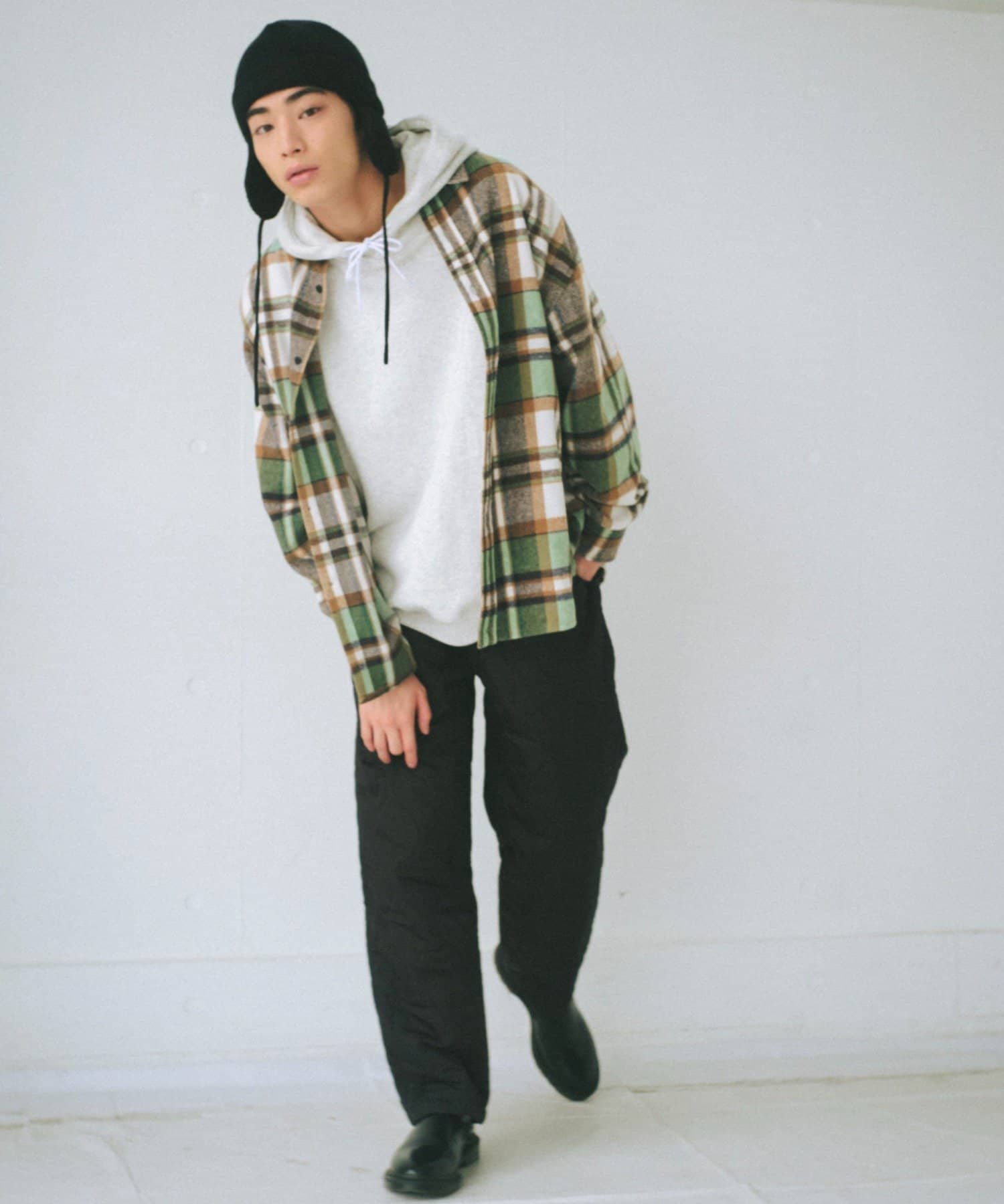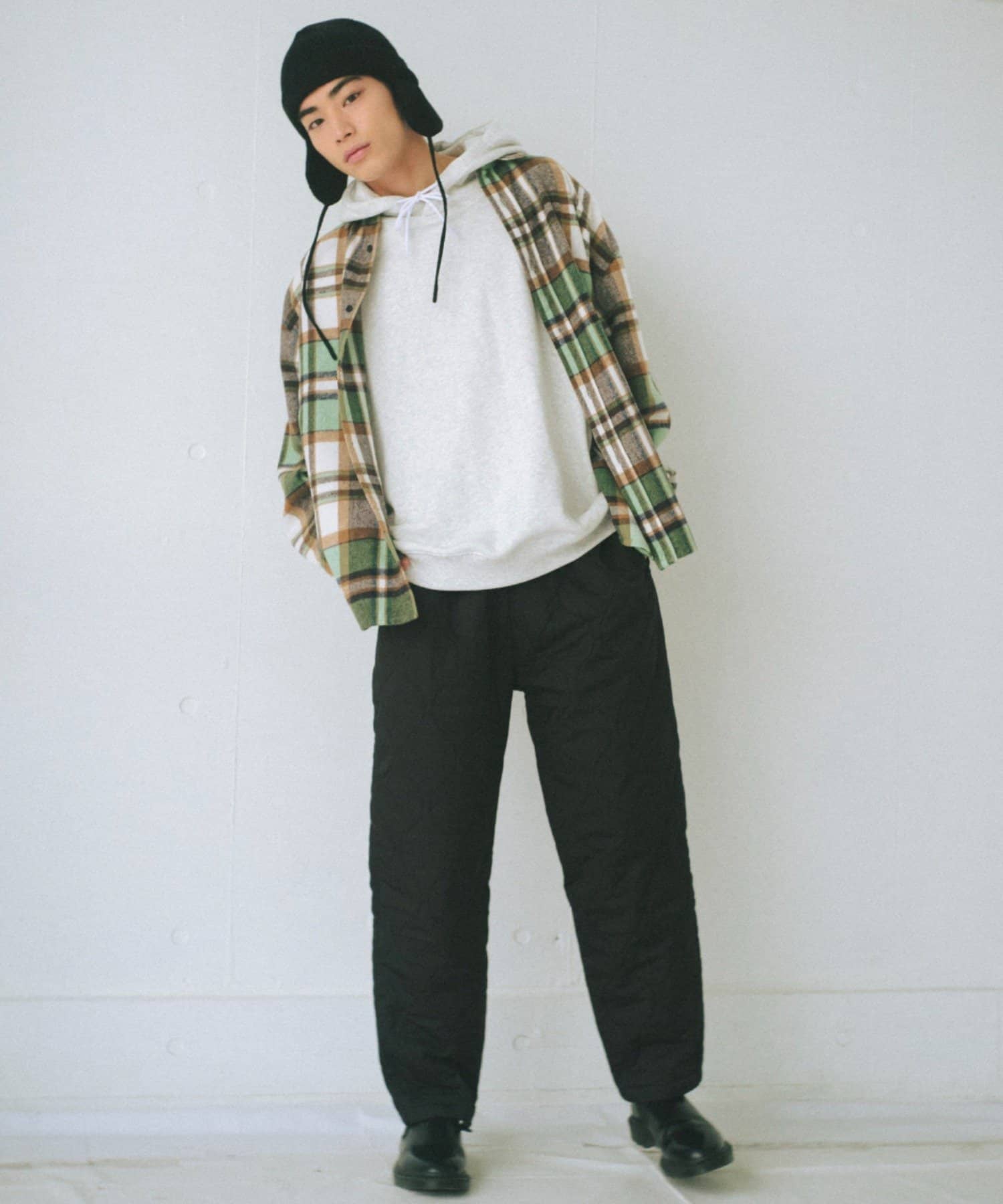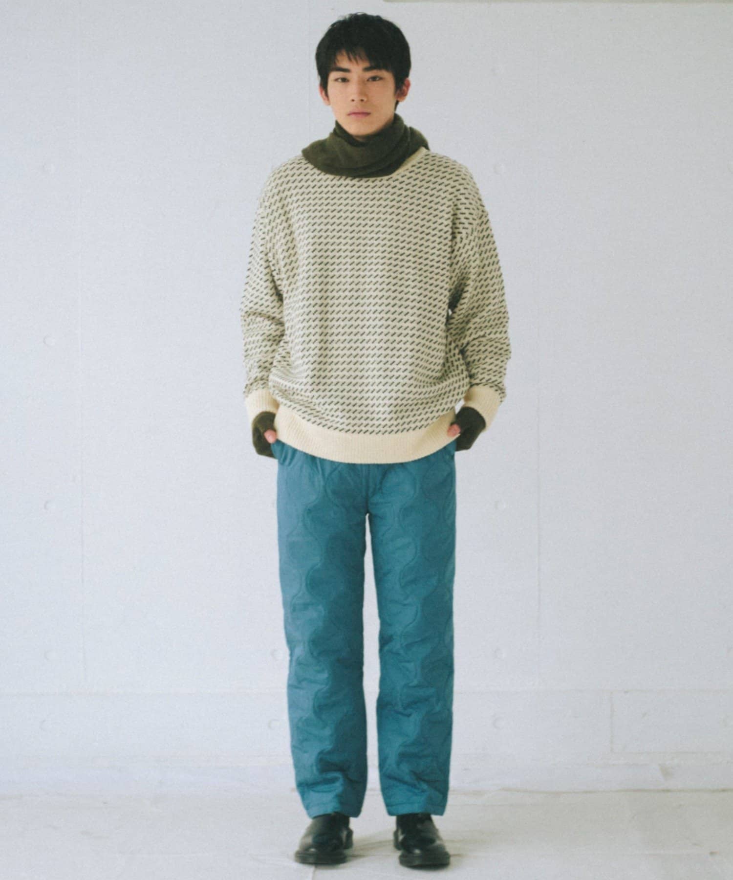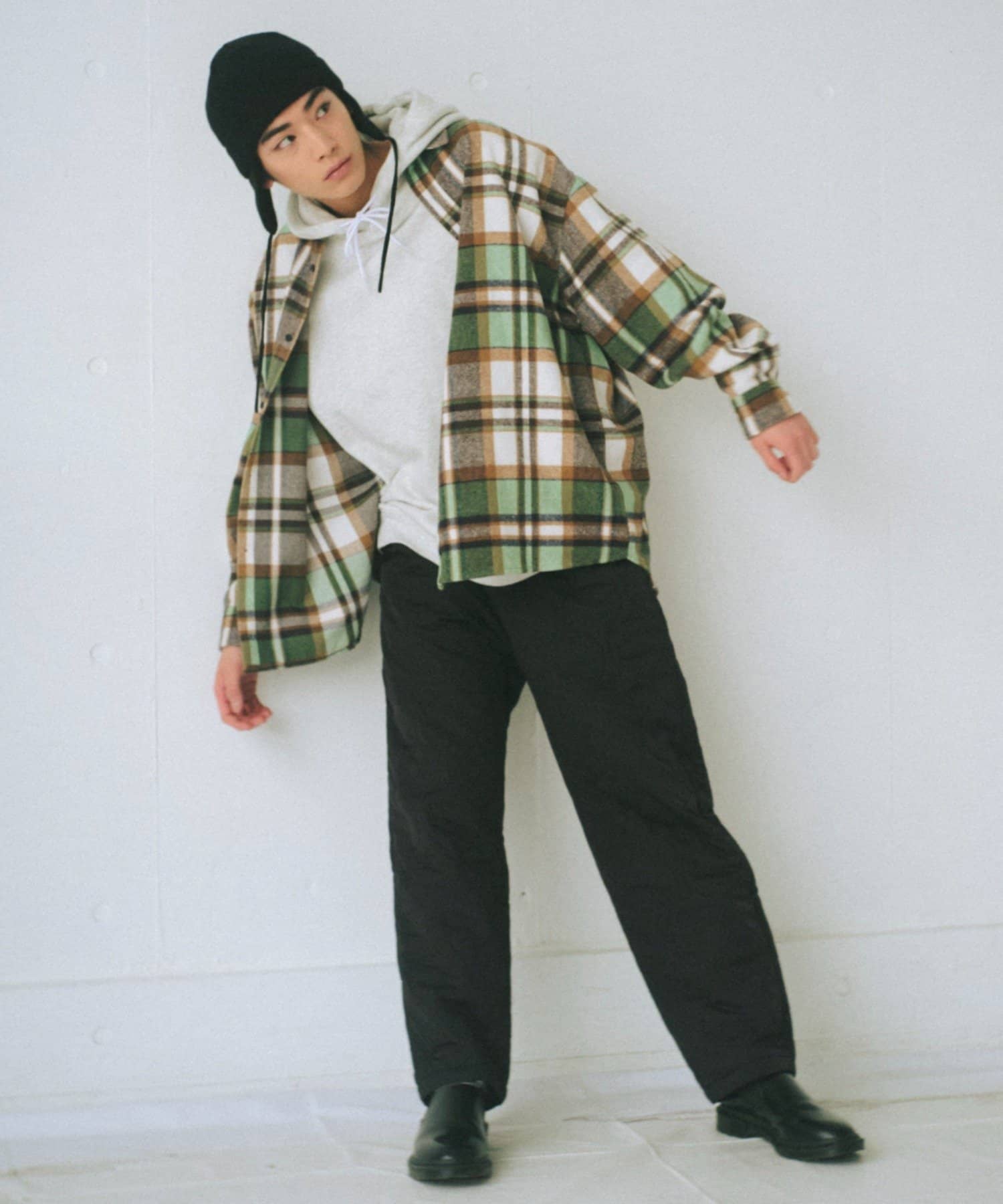 起毛素材や重く見えるアイテムとの相性が良く、スタイリングの幅を広げるアイテムです。