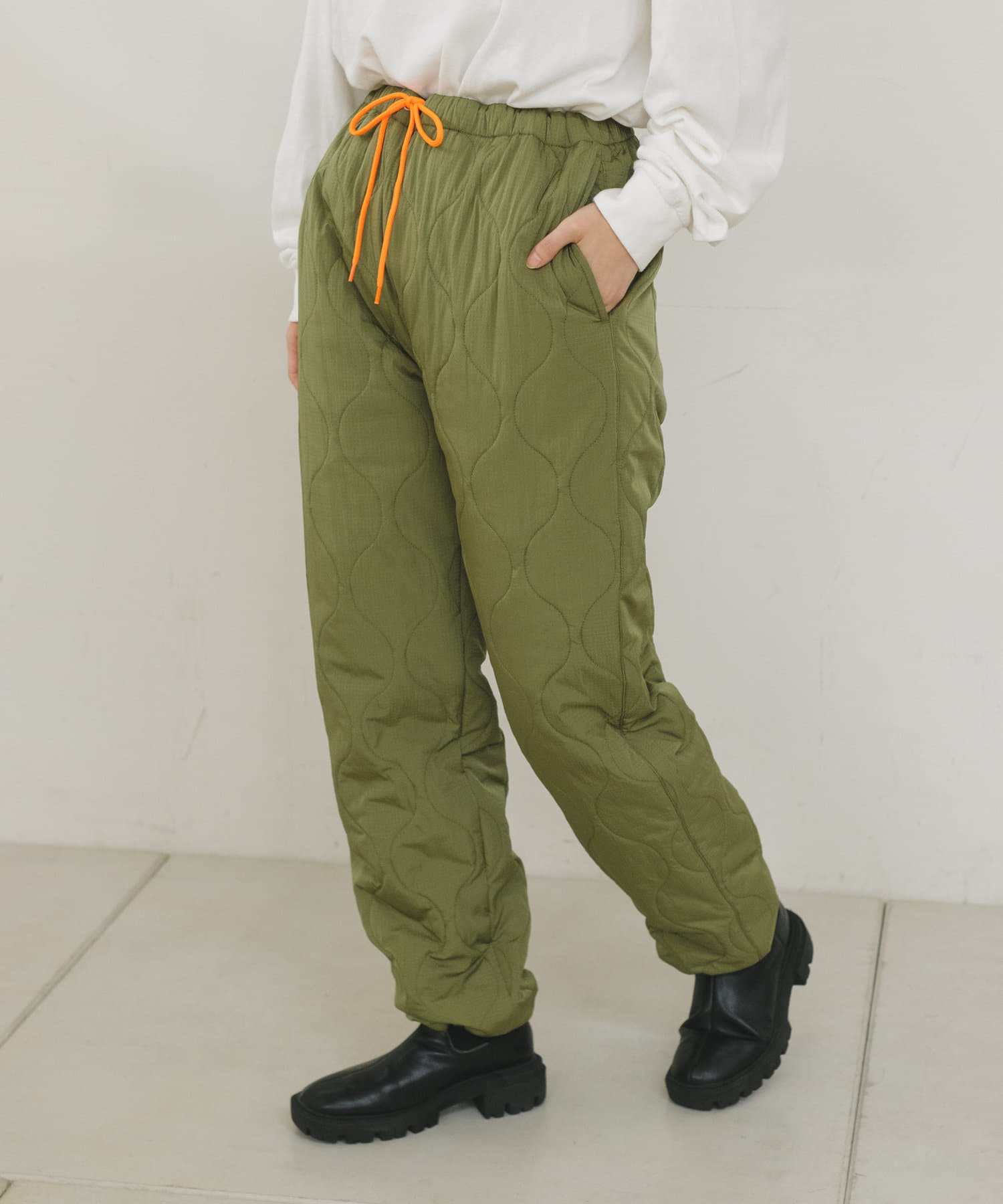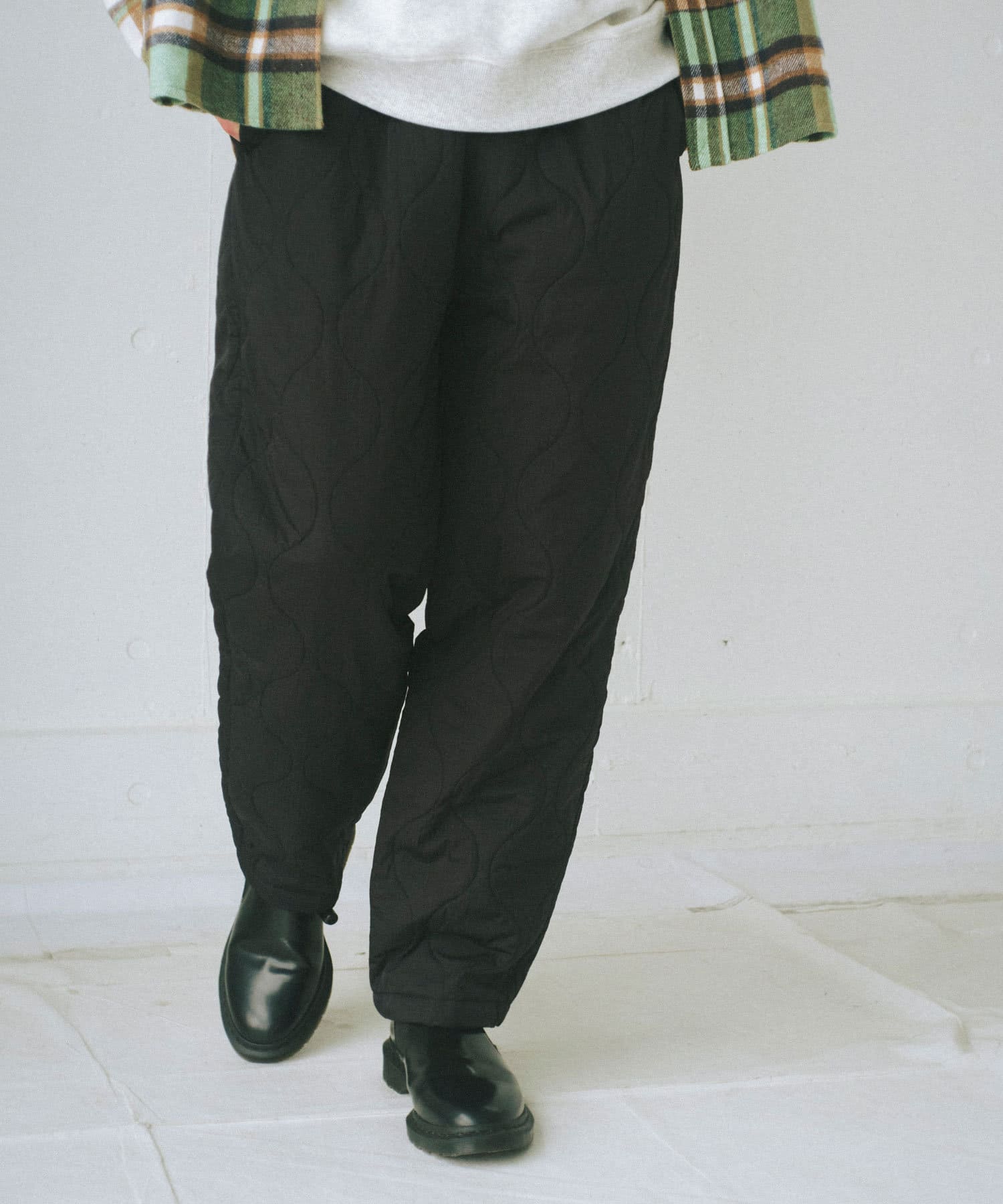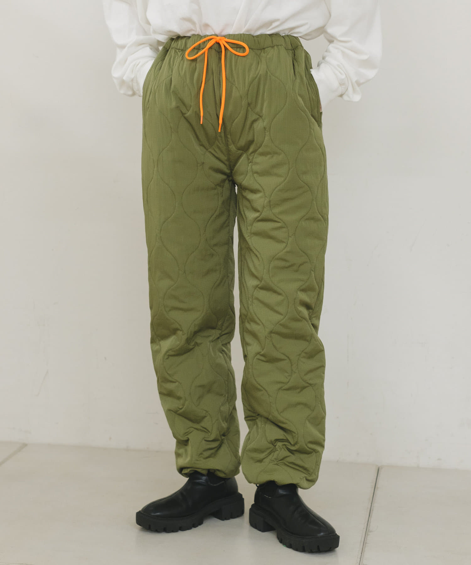 程よい中綿のボリュームで防寒性と軽量性のある中綿キルティングパンツです。