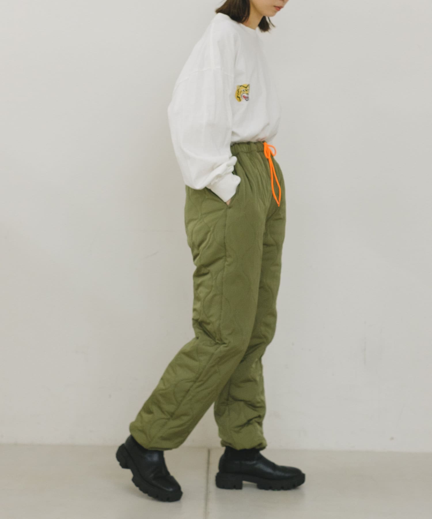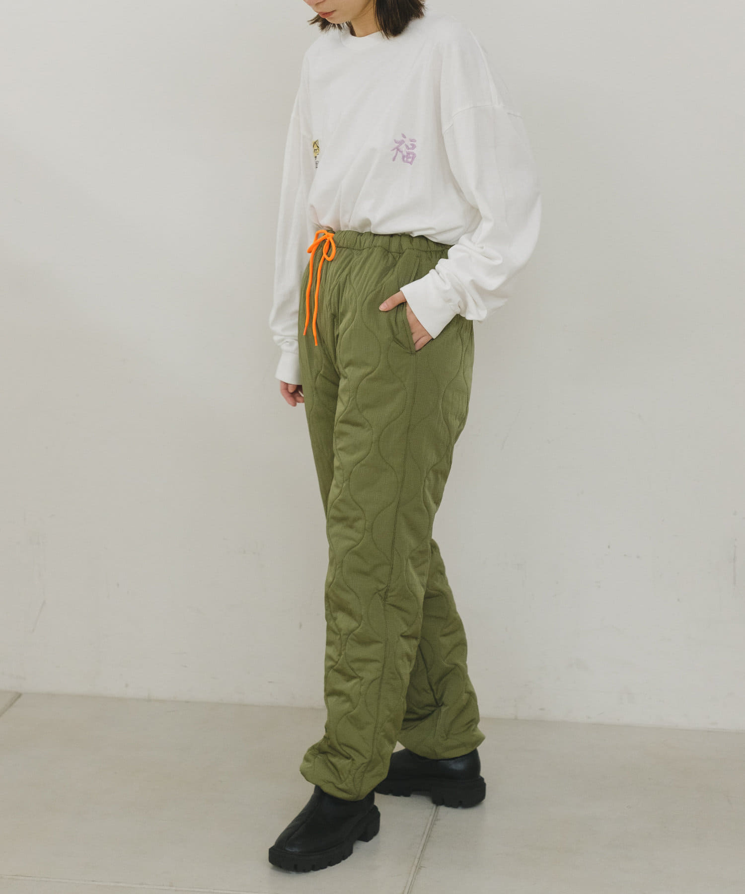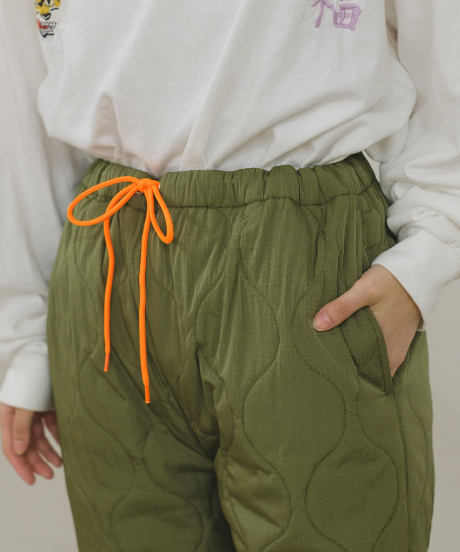 程よい中綿のボリュームで防寒性と軽量性のある中綿キルティングパンツです。