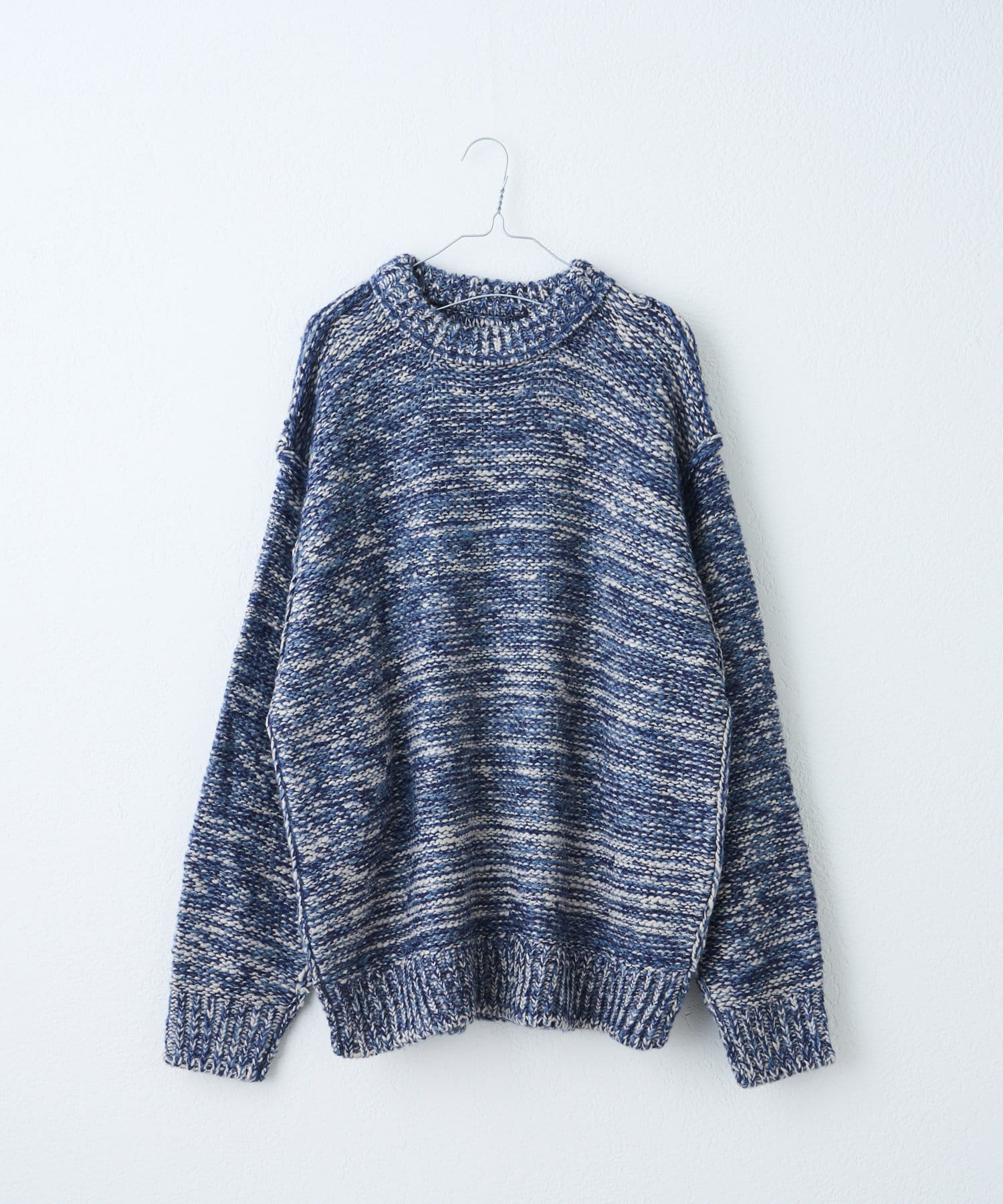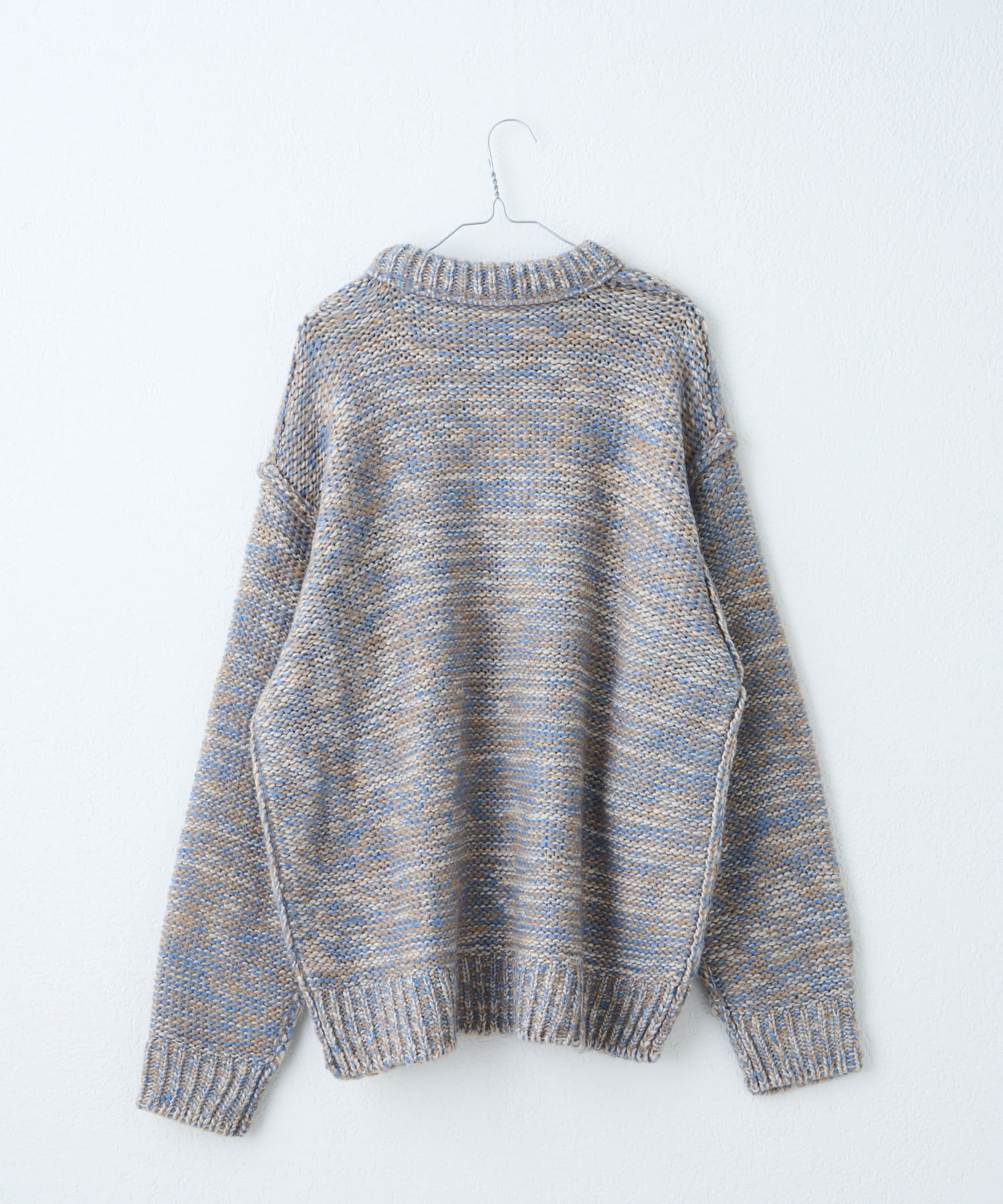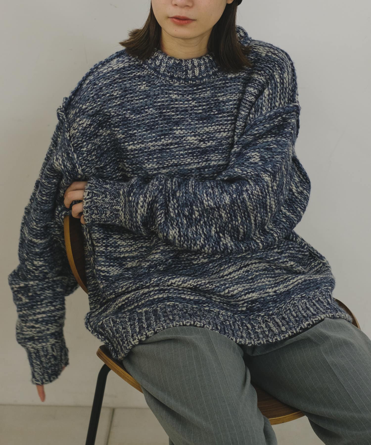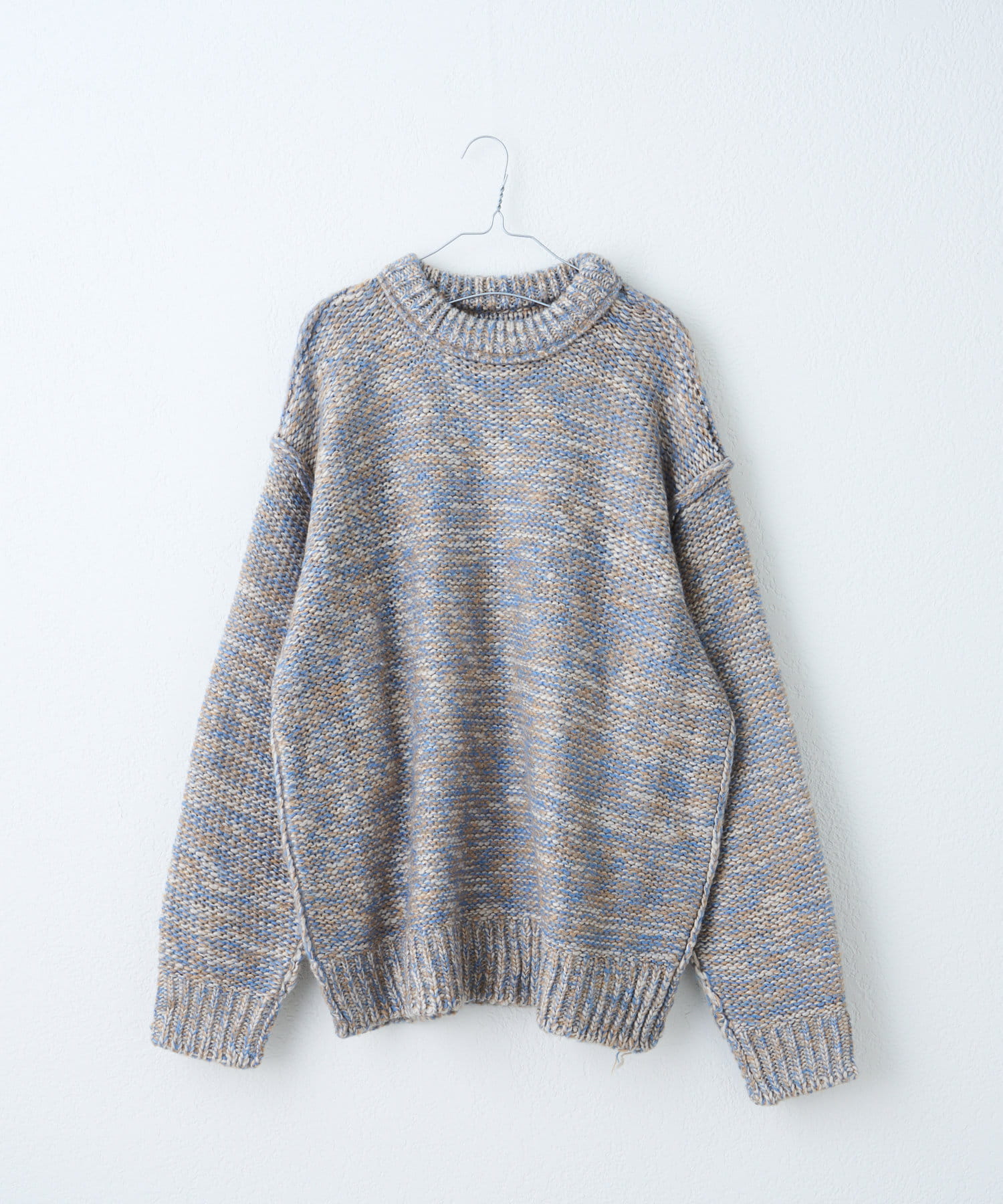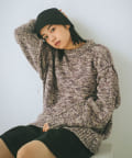 ミックス糸をローゲージでざっくりと編み上げた裏目編み使いのニットプルオーバーです。