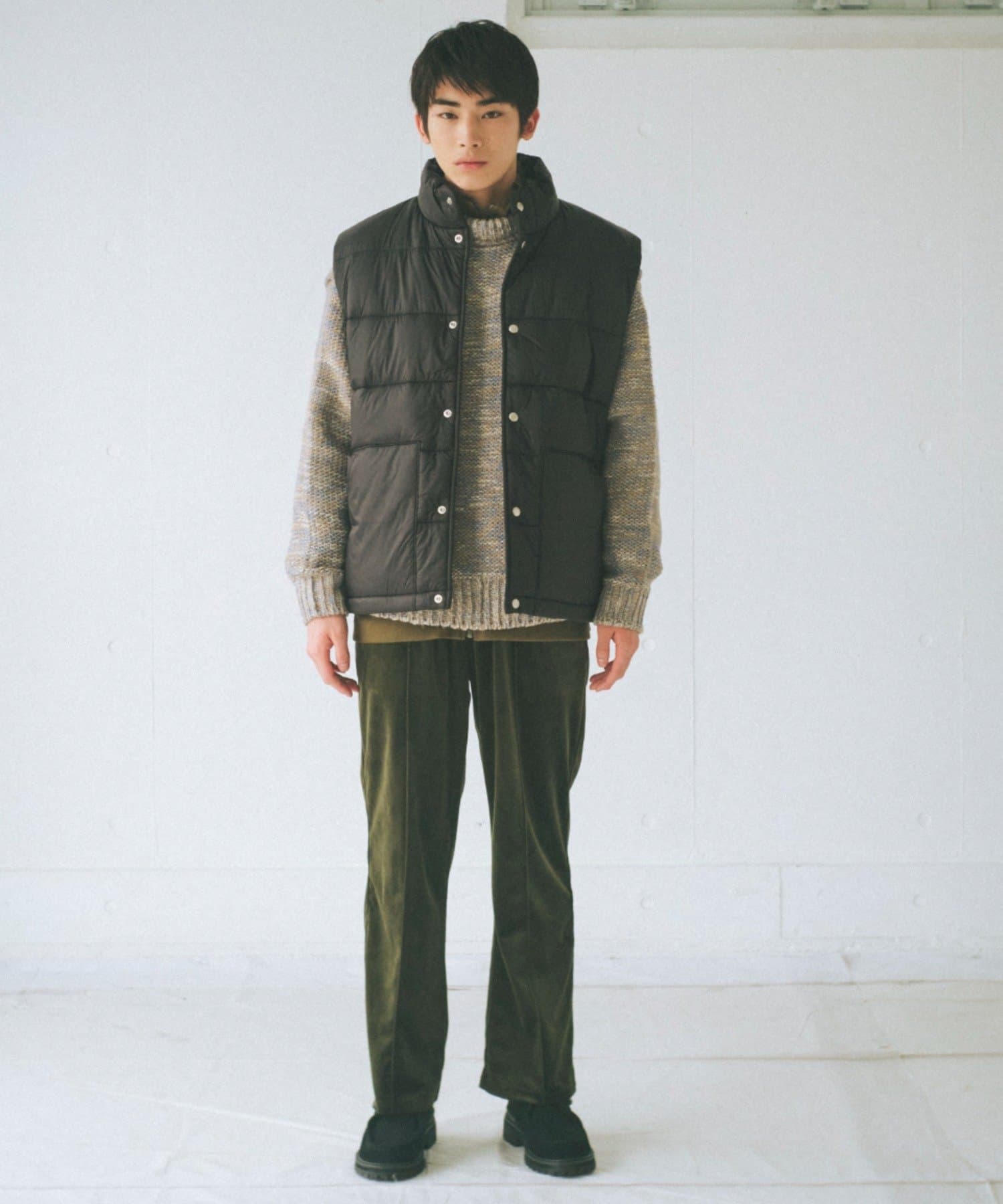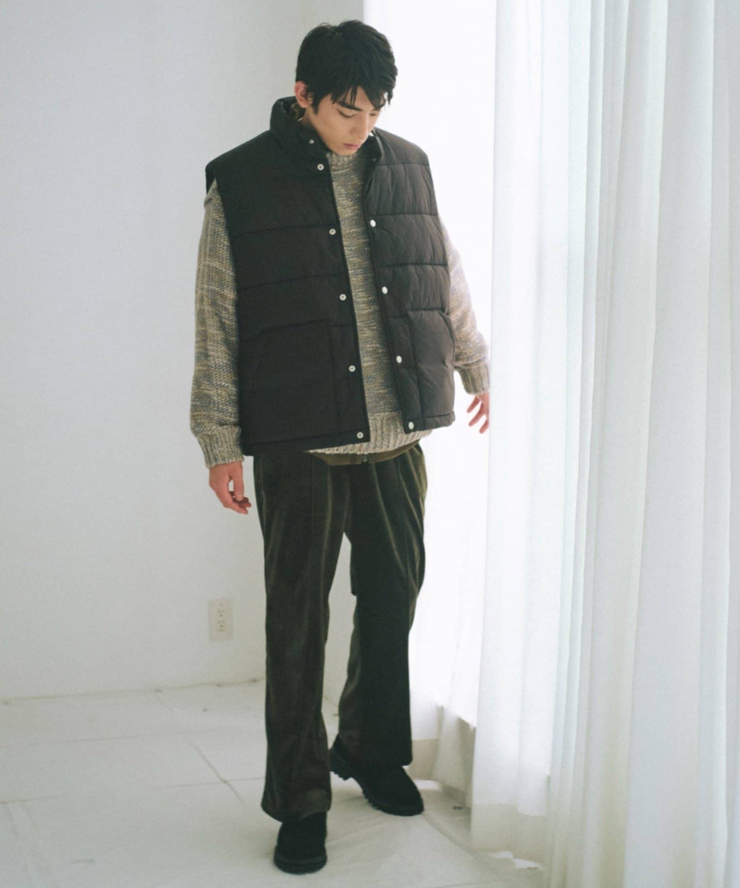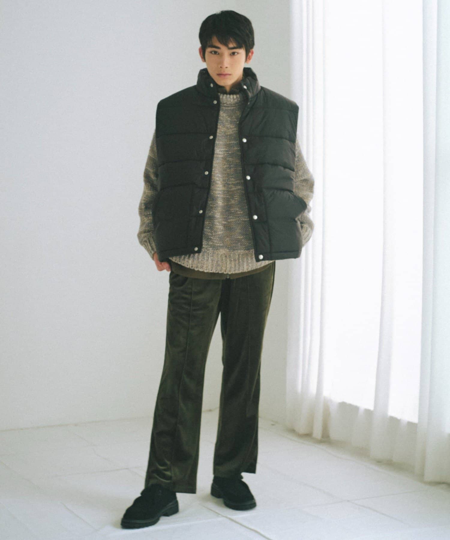 落ち感のあるボトムや、丈が長めなのでミニボトム合わせがバランスよく決まります。