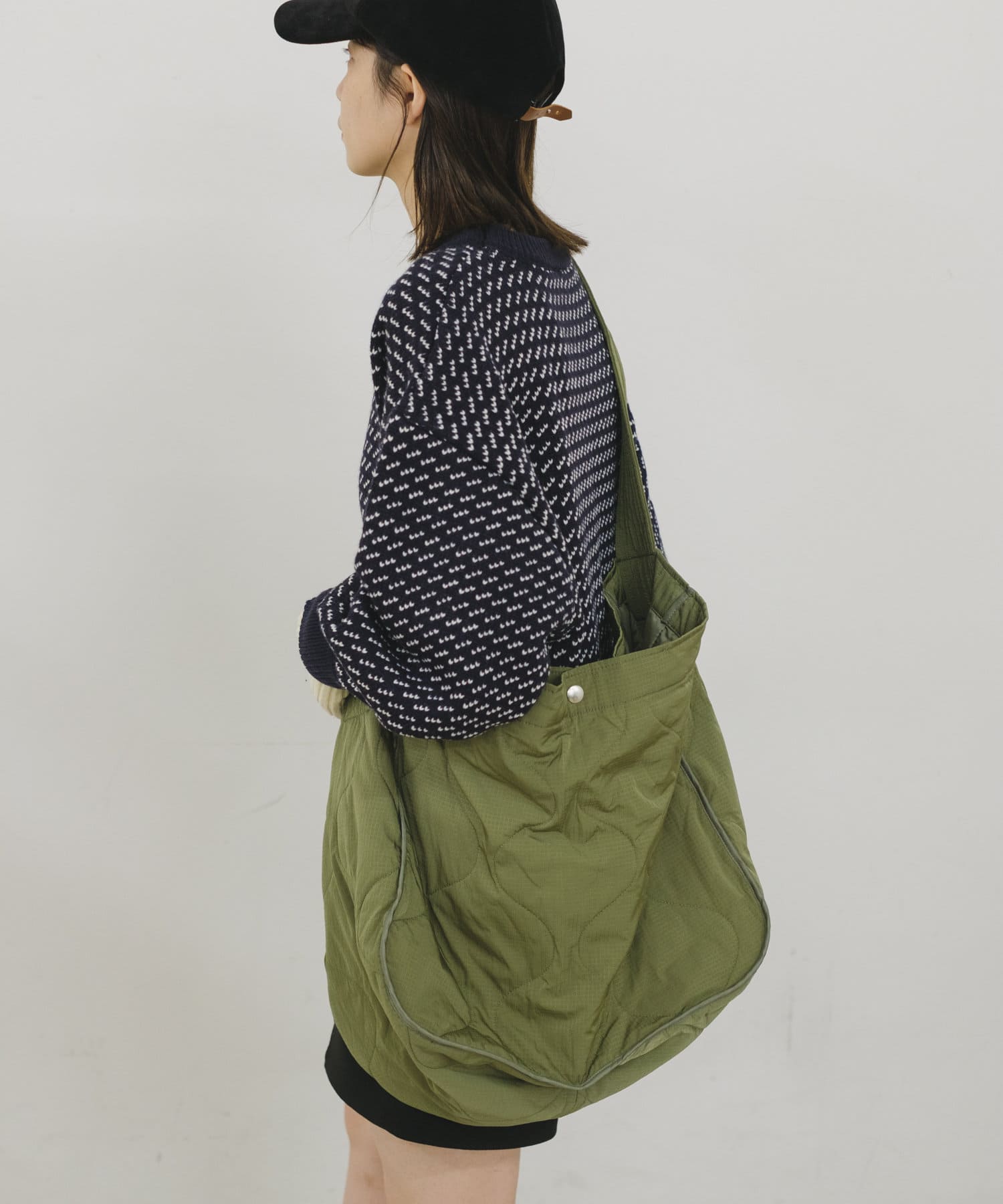 軽量なキルティングを使用しているため肩に負担もかかりにくく、横長なシルエットは荷物の出し入れがしやすい仕様です。