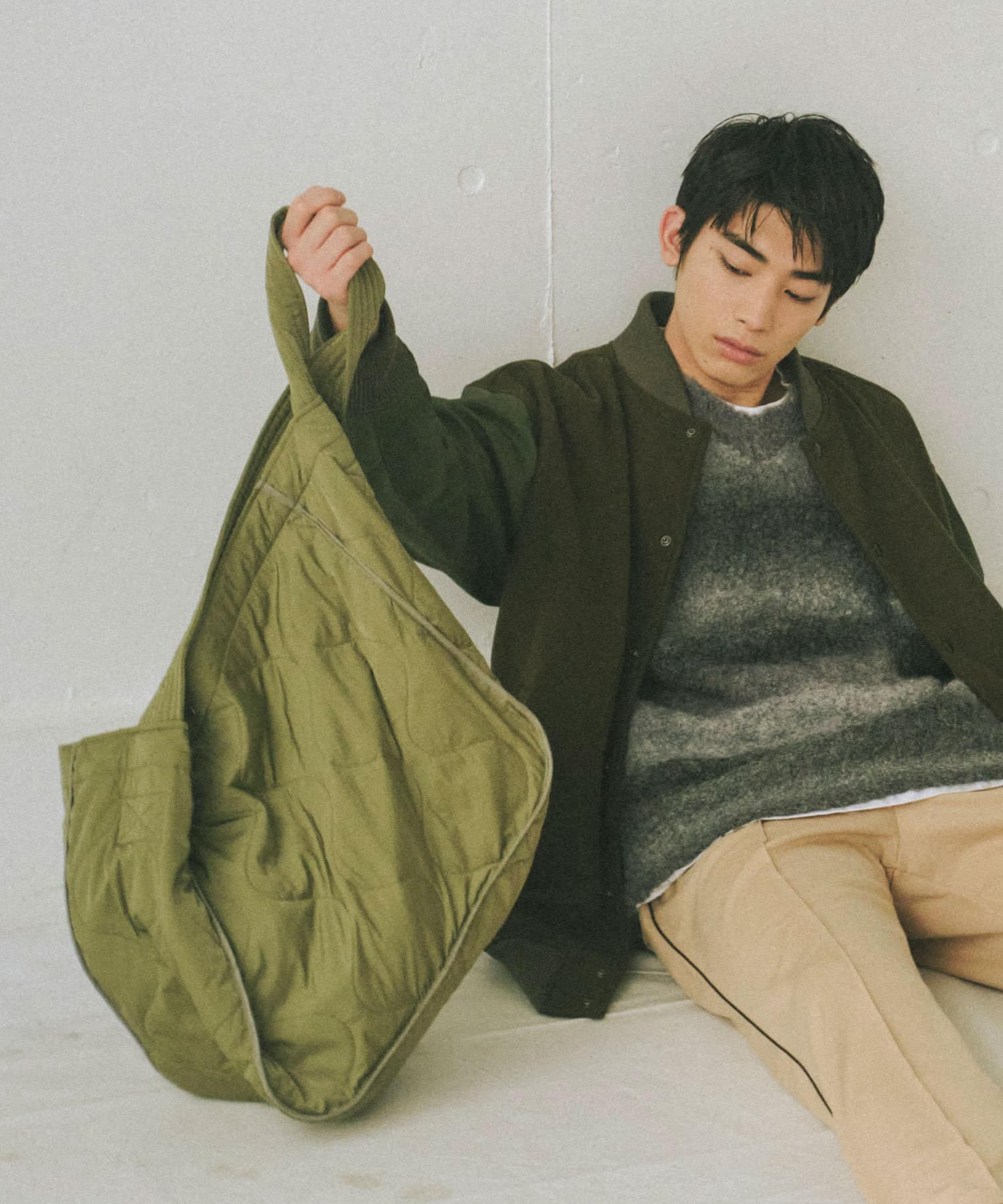 新聞配達員が使用していたバッグをサンプリングベースに、薄中綿のキルティング生地を使用したニュースペーパーバッグです。
