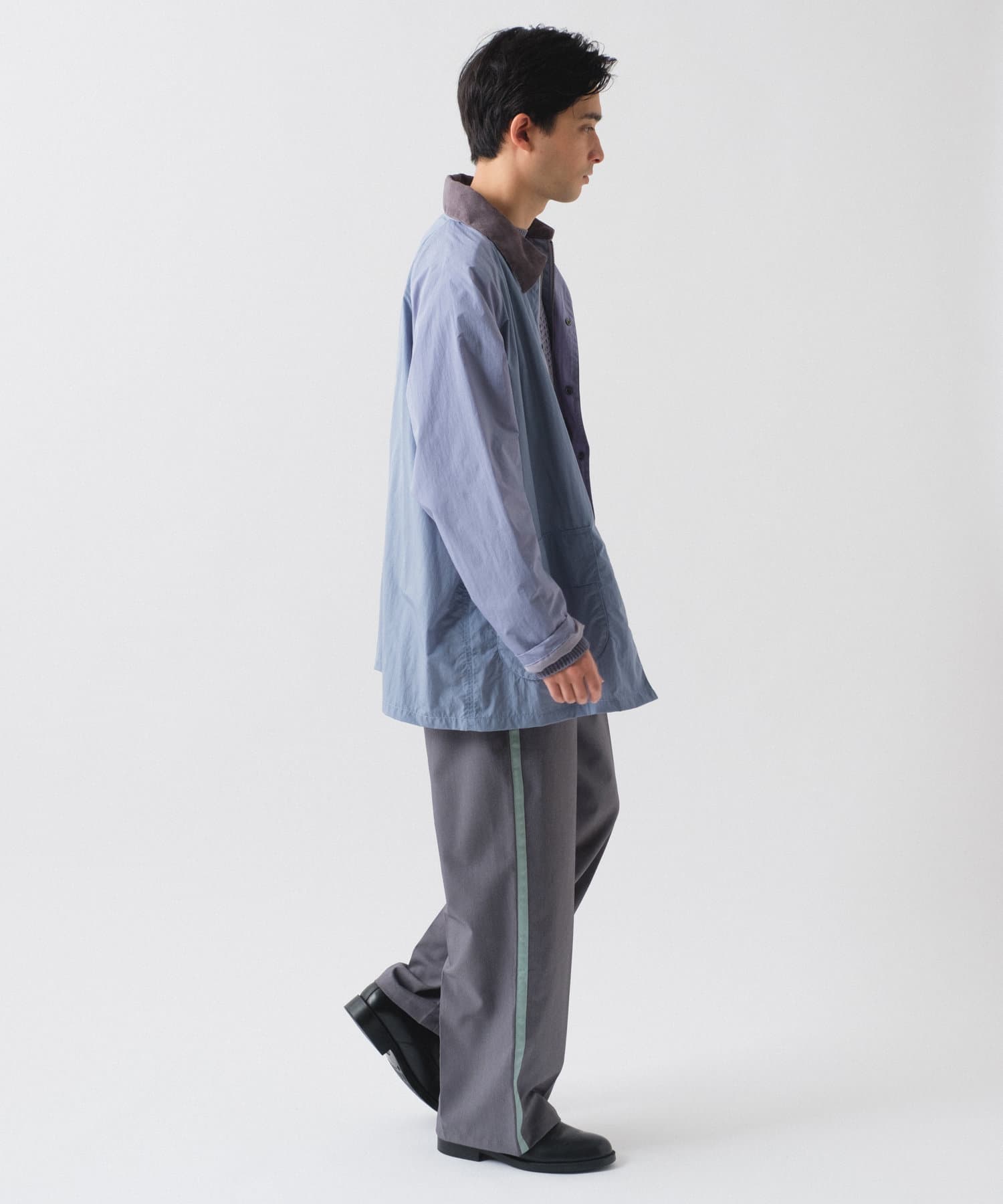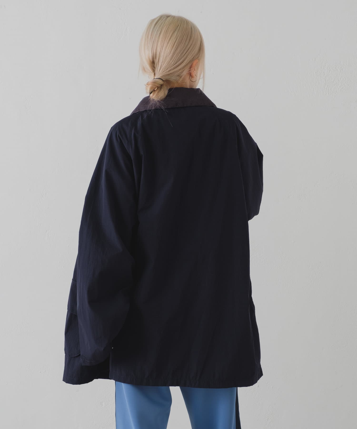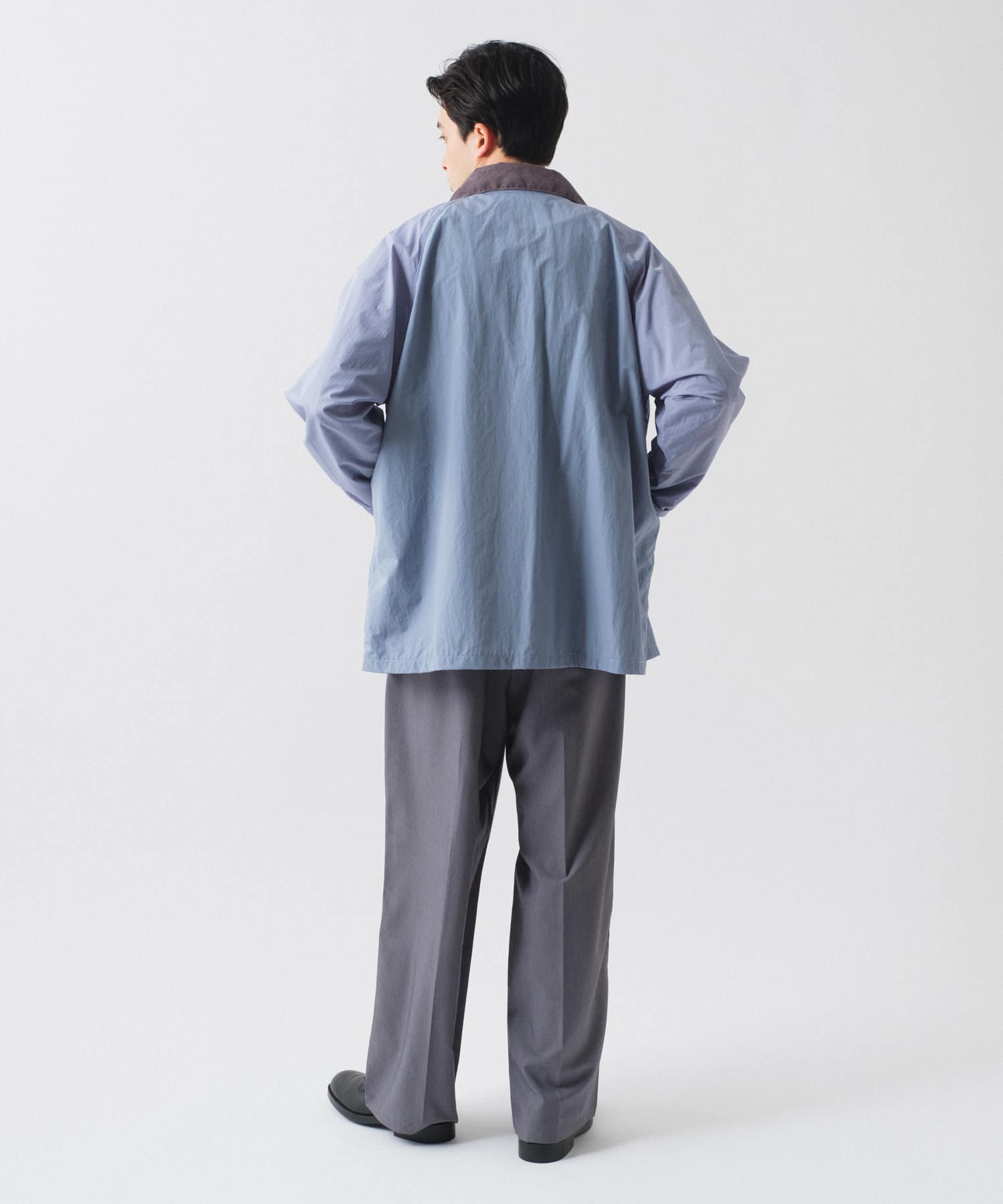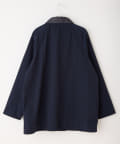 マチ付きの大ぶりなポケット、コーデュロイ生地で切り替えた衿がアクセントのユーティリティージャケット。