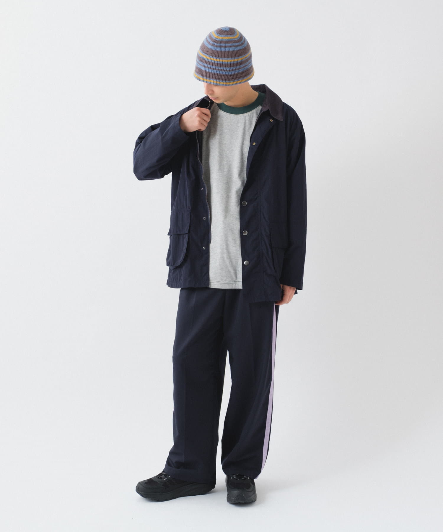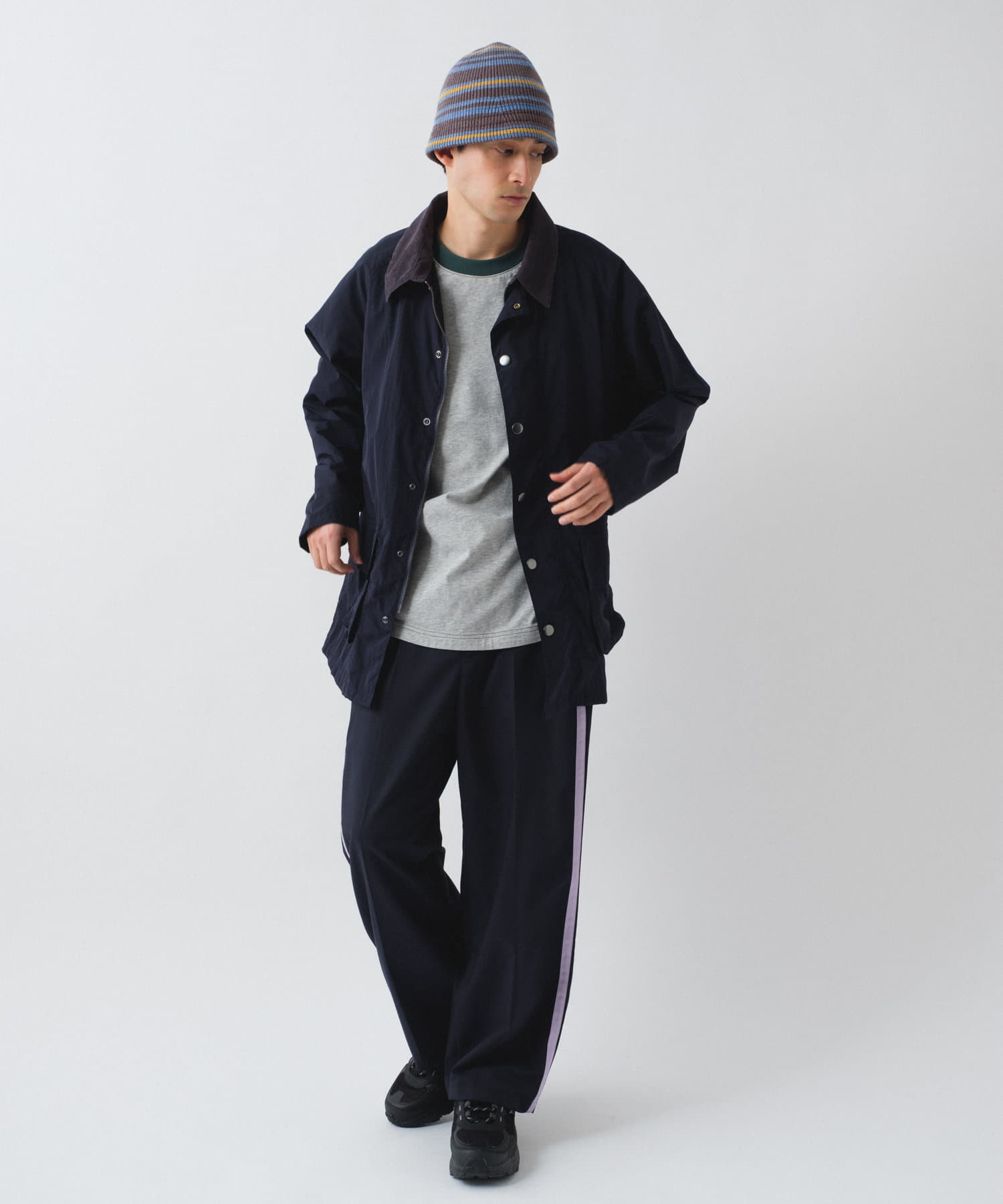 ゆとりのある身幅と機能性を持たせたラグランスリーブに、重ね着を想定した着丈はジャケットが隠れる丈感で、様々な着こなしに対応できます。