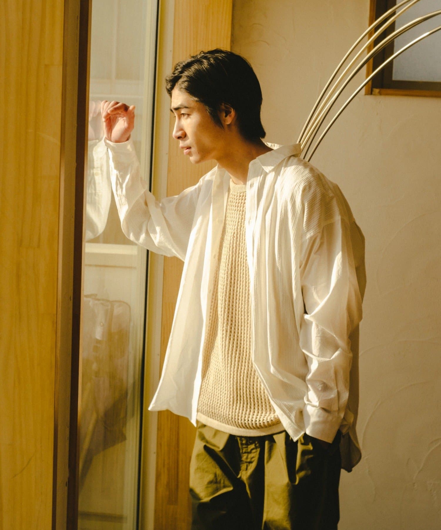 派手過ぎず、シンプル過ぎない丁度よいデザインシャツで、スタイリングのアクセントになる一着です。