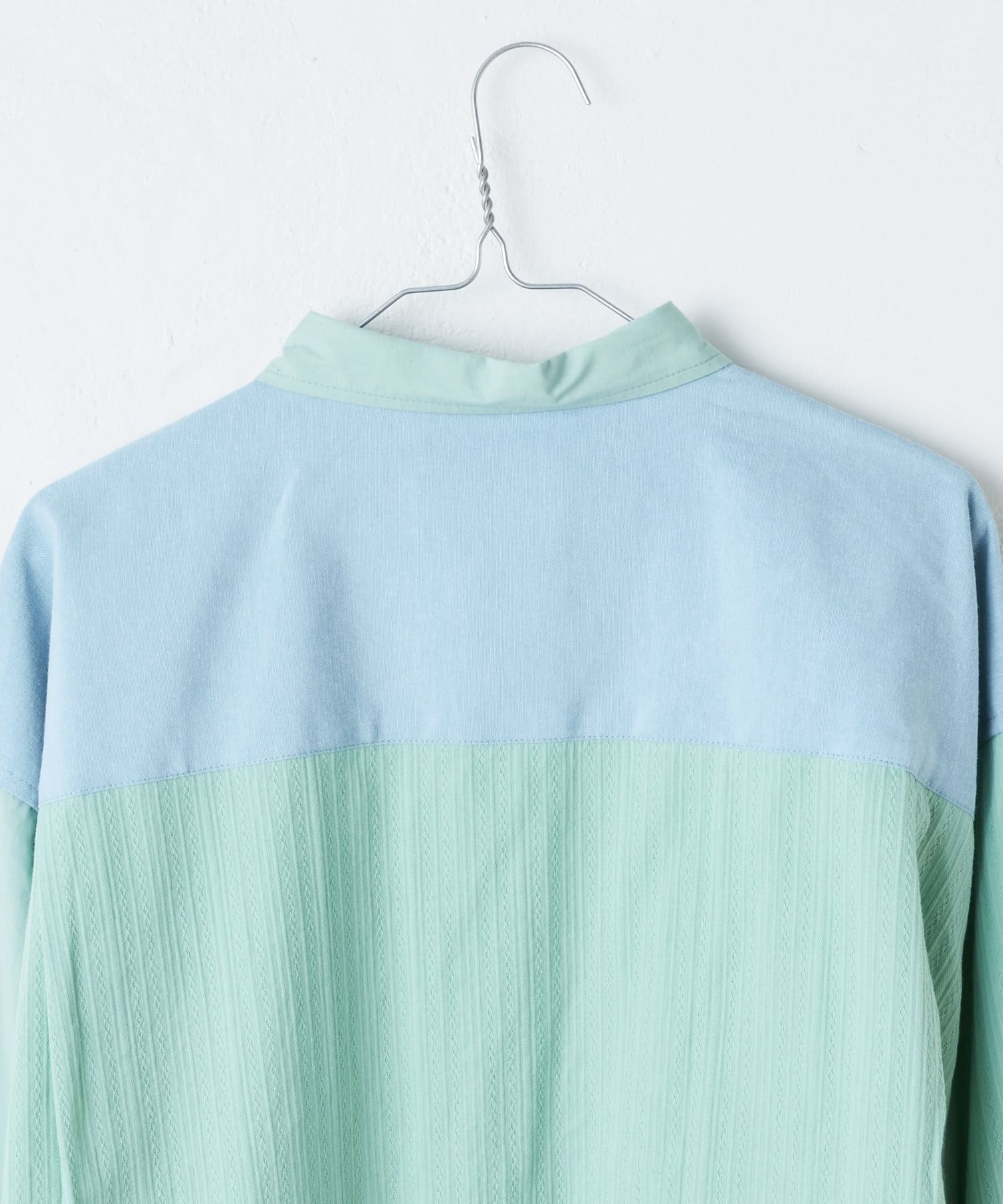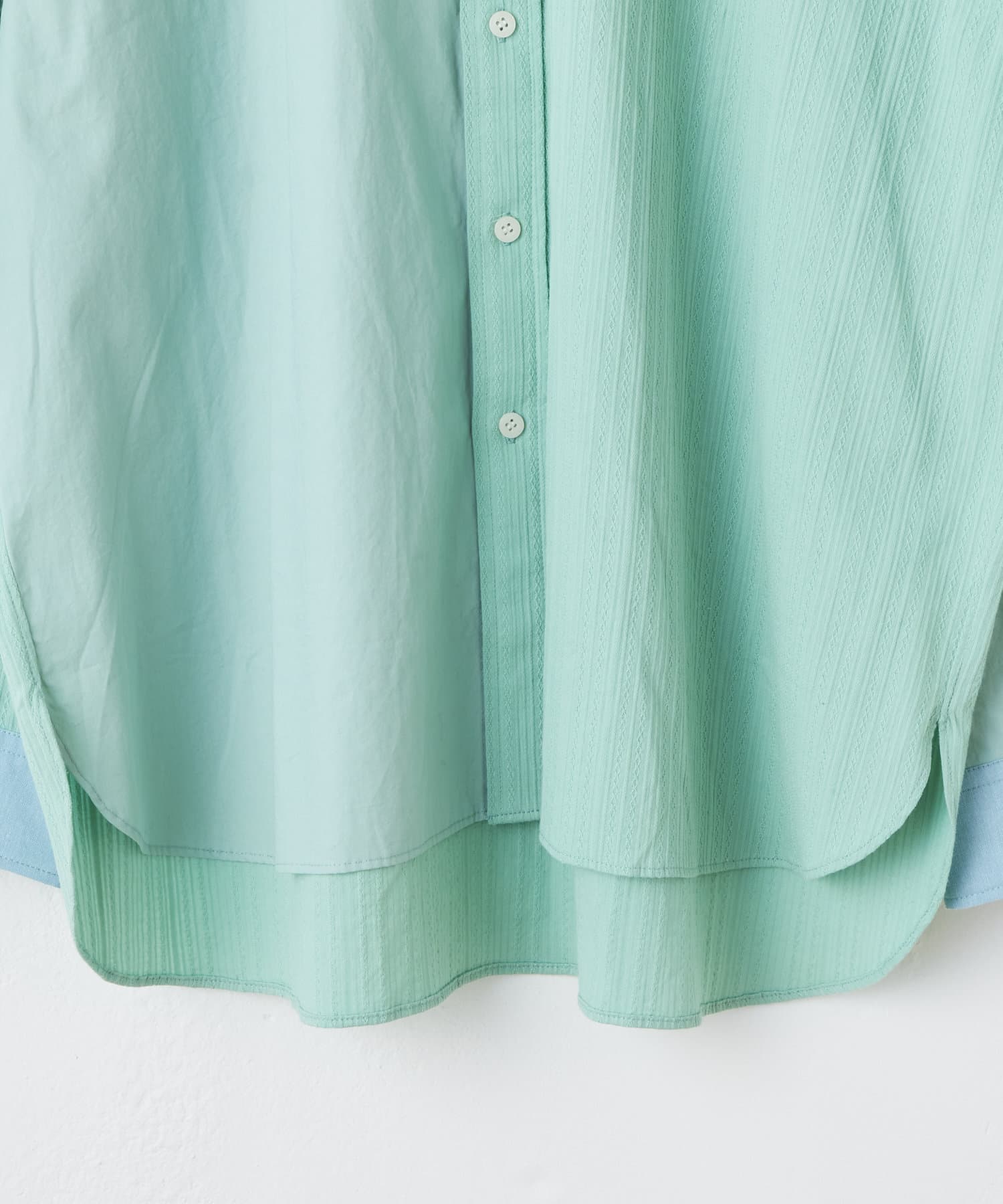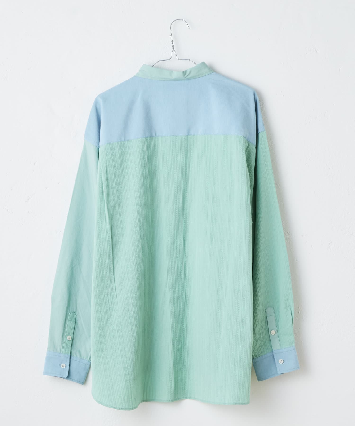 【UNISEX】THREE TYPE FABRICS PATCHWORK SHIRT