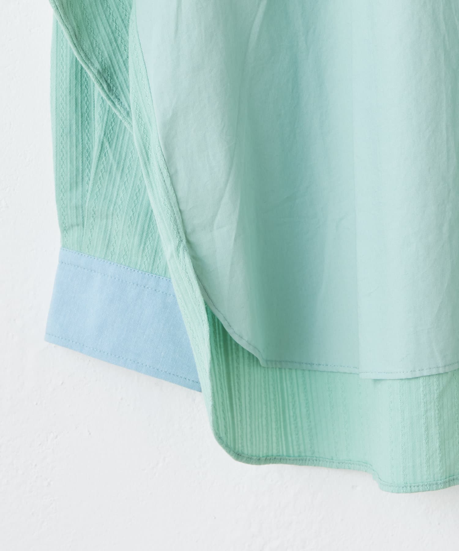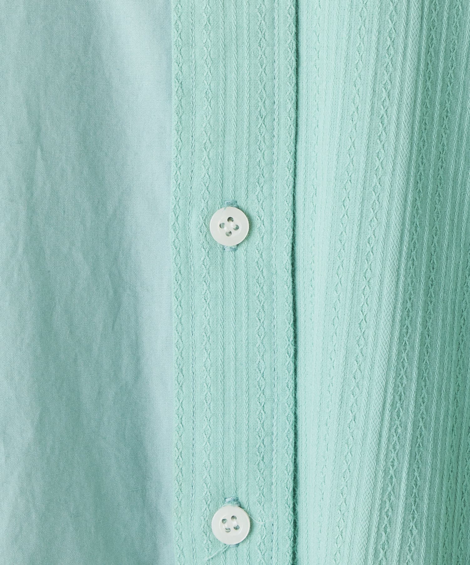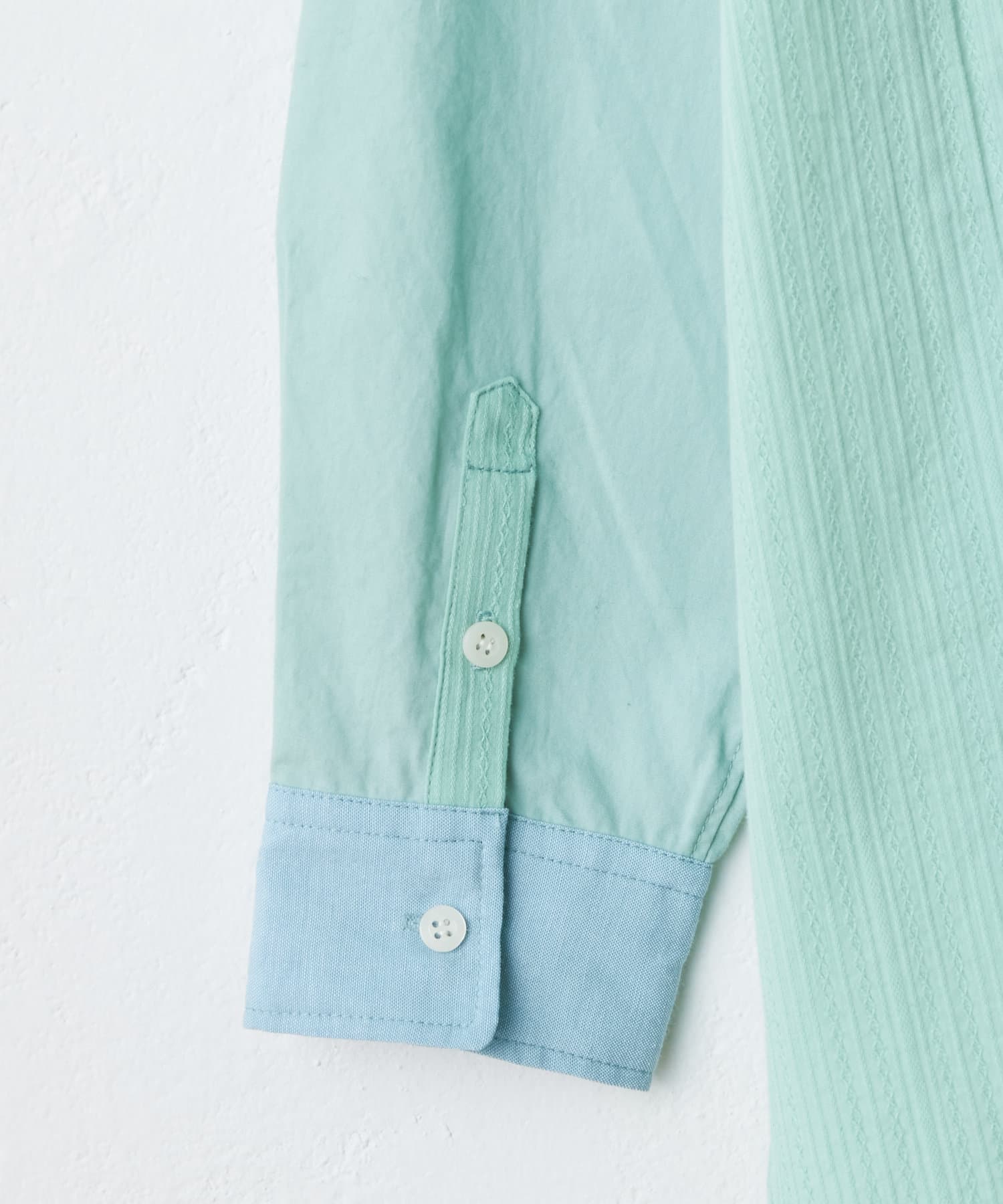 ポプリン、オックスフォード、ジャガード、3種類の生地を使用したパッチワークシャツです。