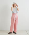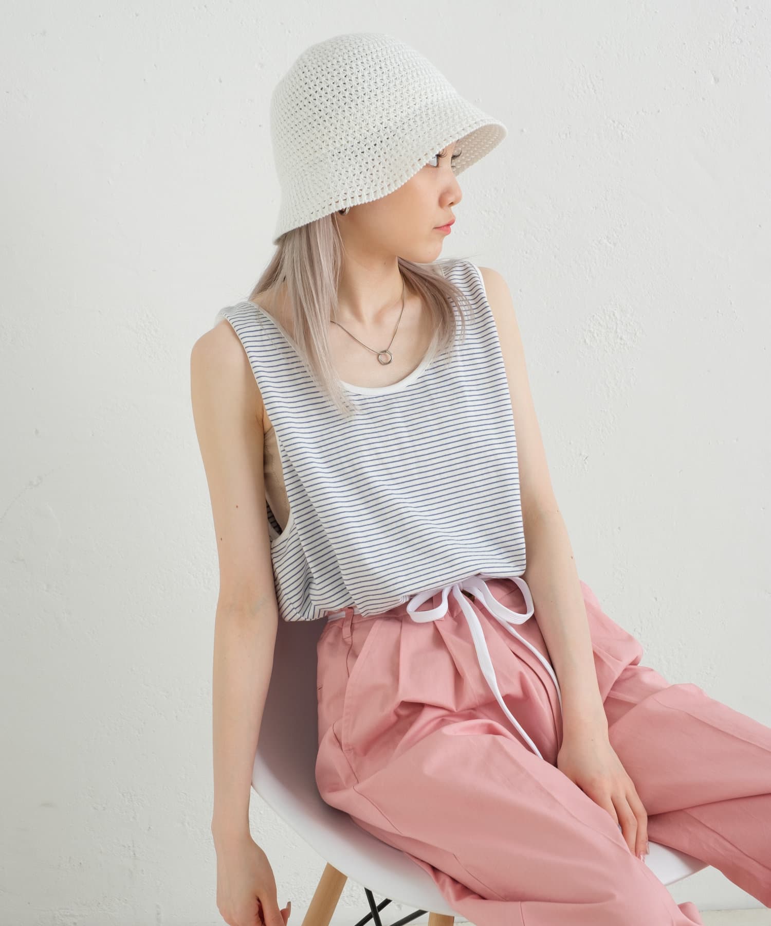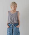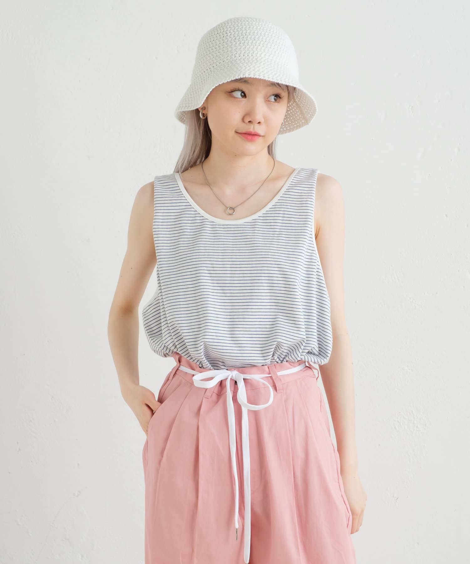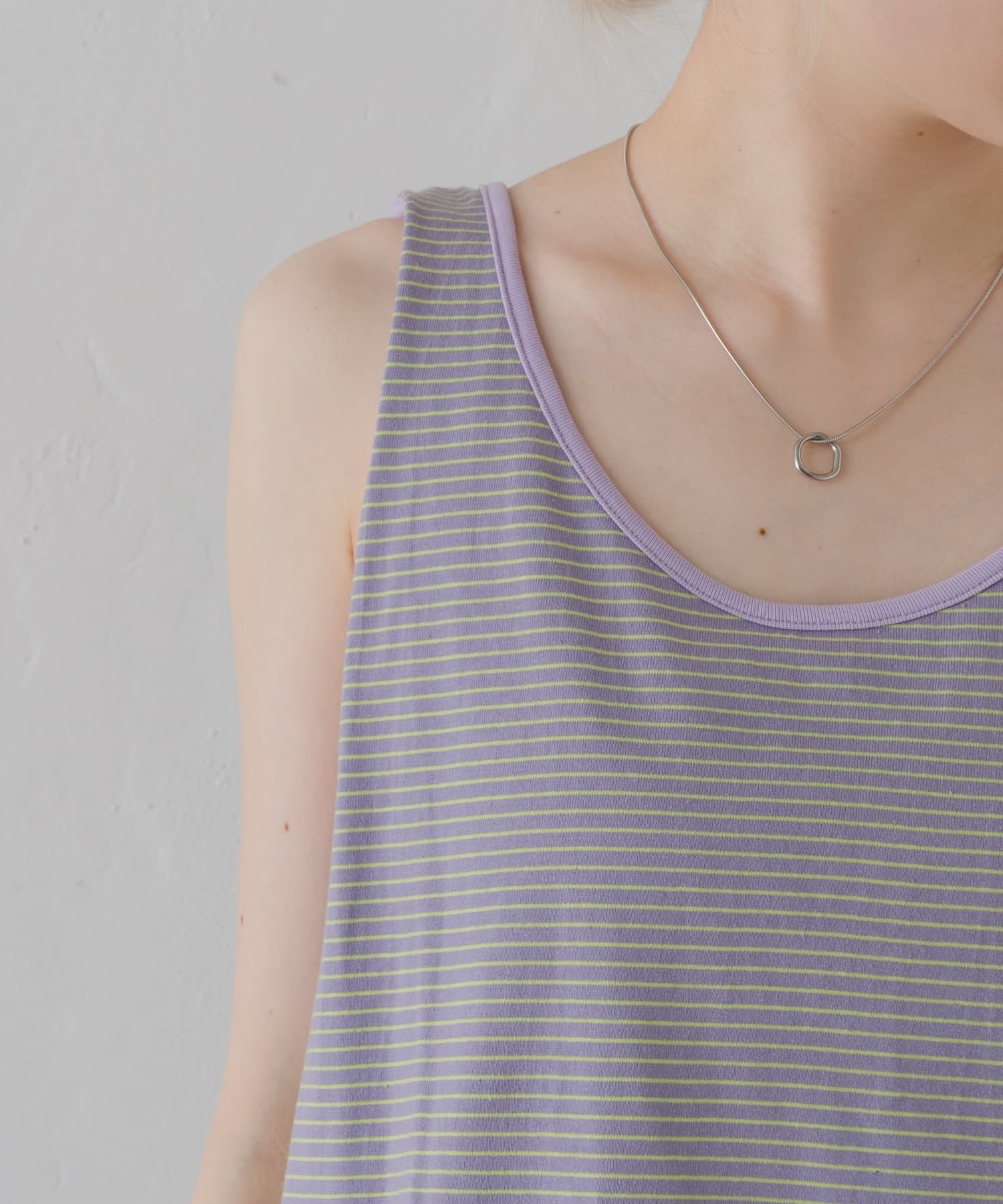 細かいピッチのボーダーがさりげないアクセントになるタンクトップ。