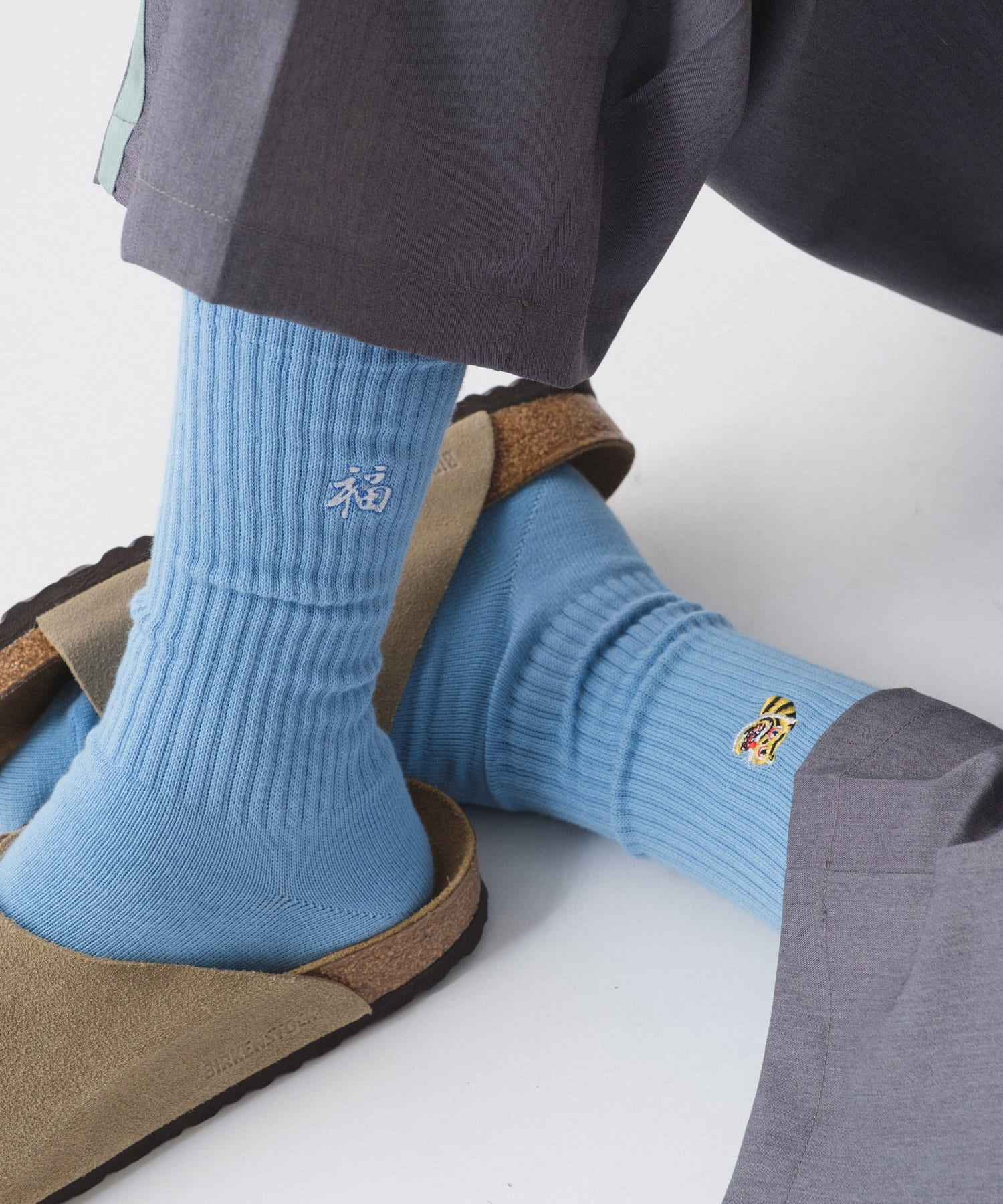 スーベニアジャケットの刺繍に用いられる”虎、福”の刺繍を入れたスーベニアソックスです。