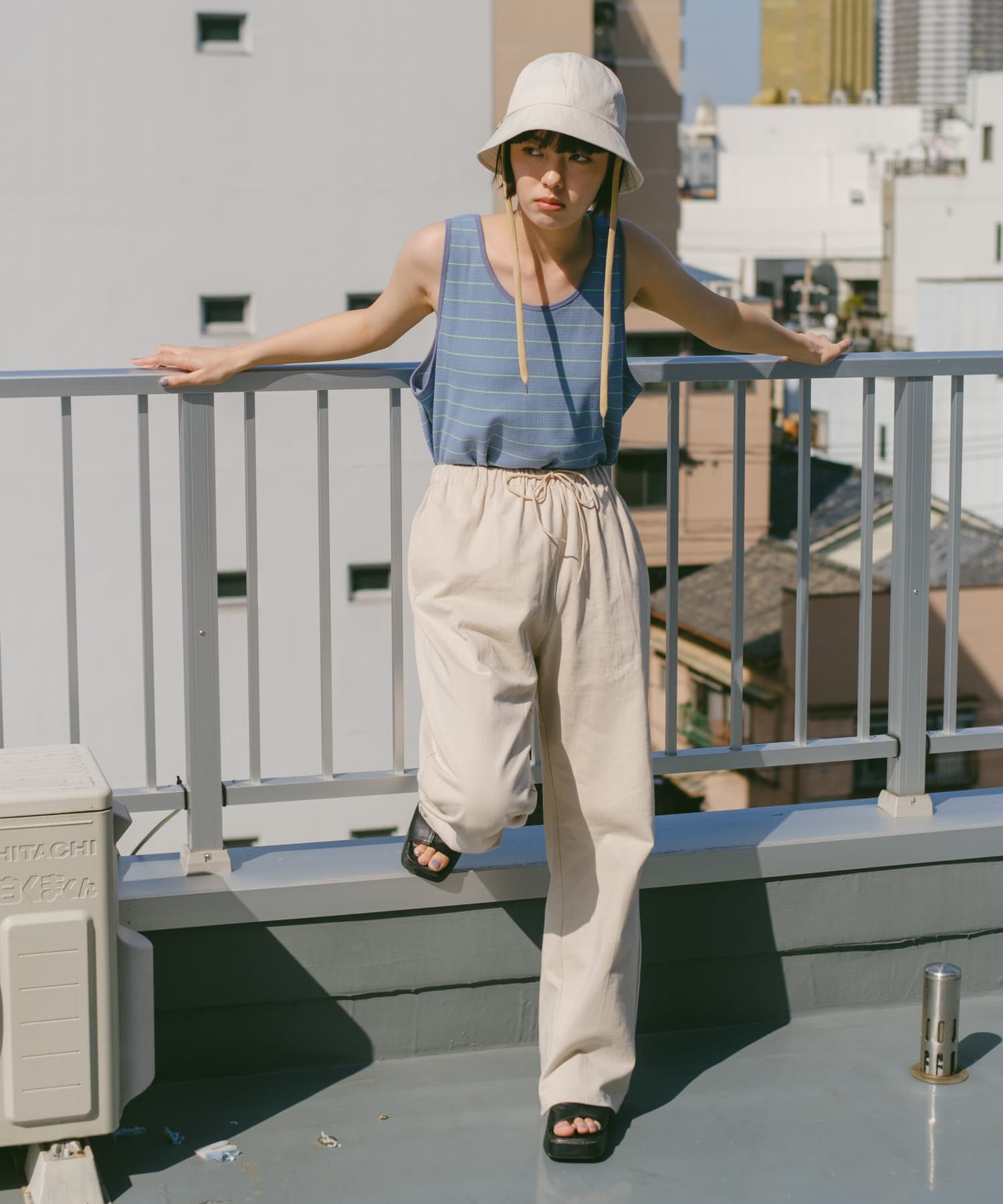 仕上げの段階で製品洗いによるアタリや日焼け加工を施すことでユーズド感ある表情に仕上げています。