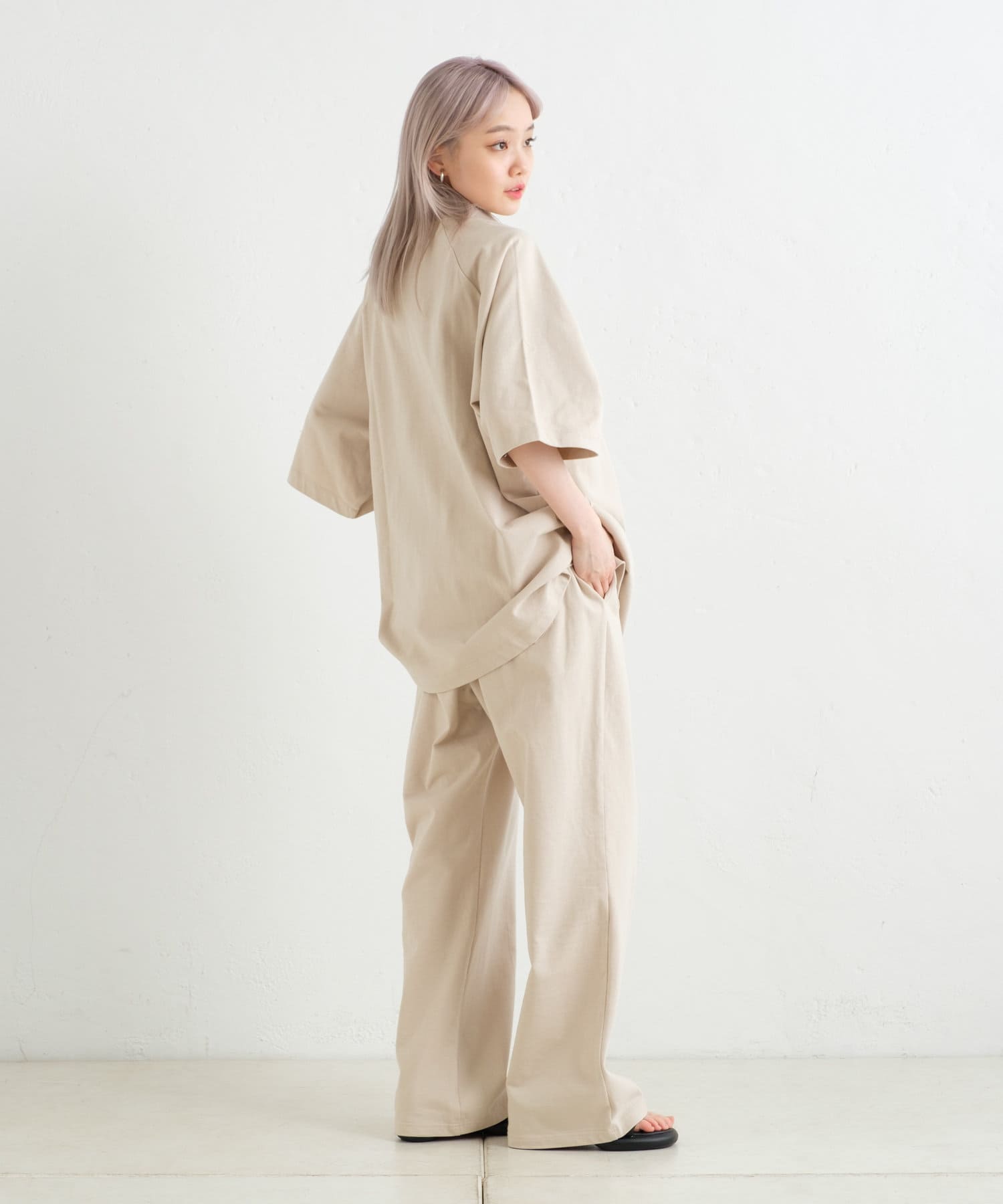 ヘビーウェイト度詰め天竺を採用し、経年変化によるアタリや日焼けをリアルに表現したカットソーパンツです。