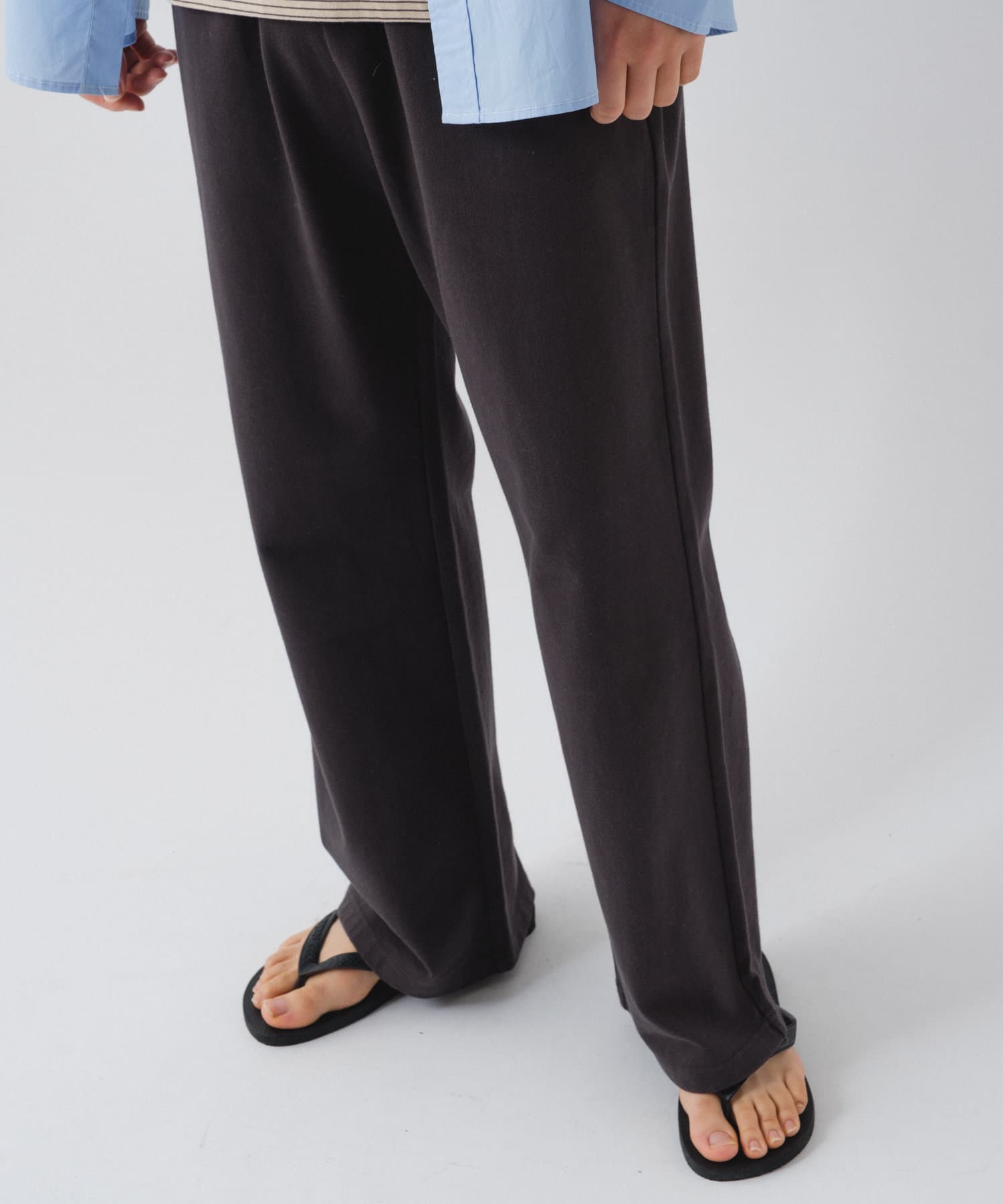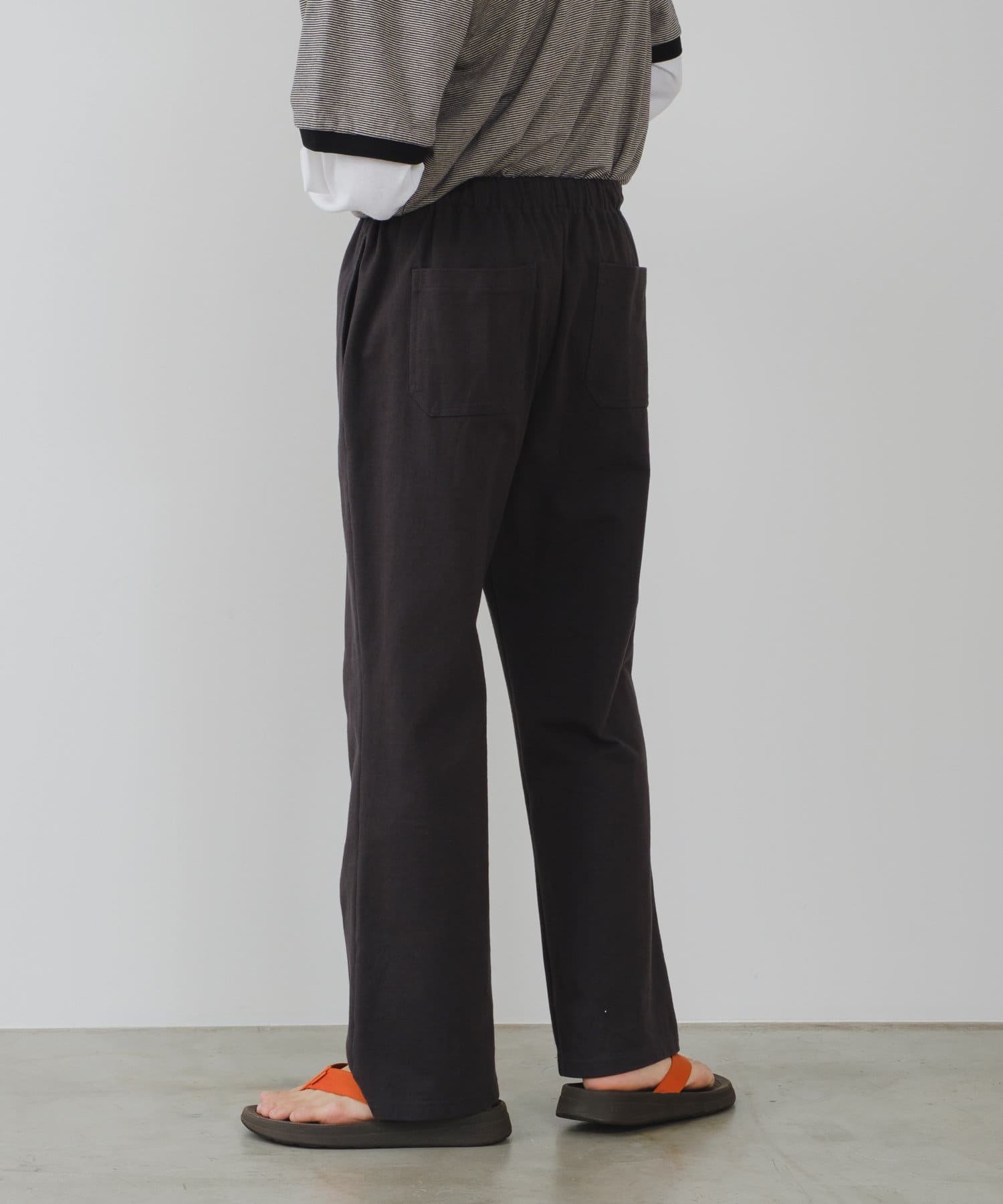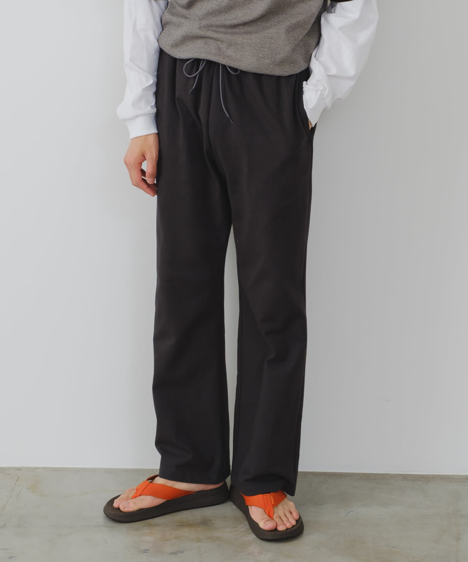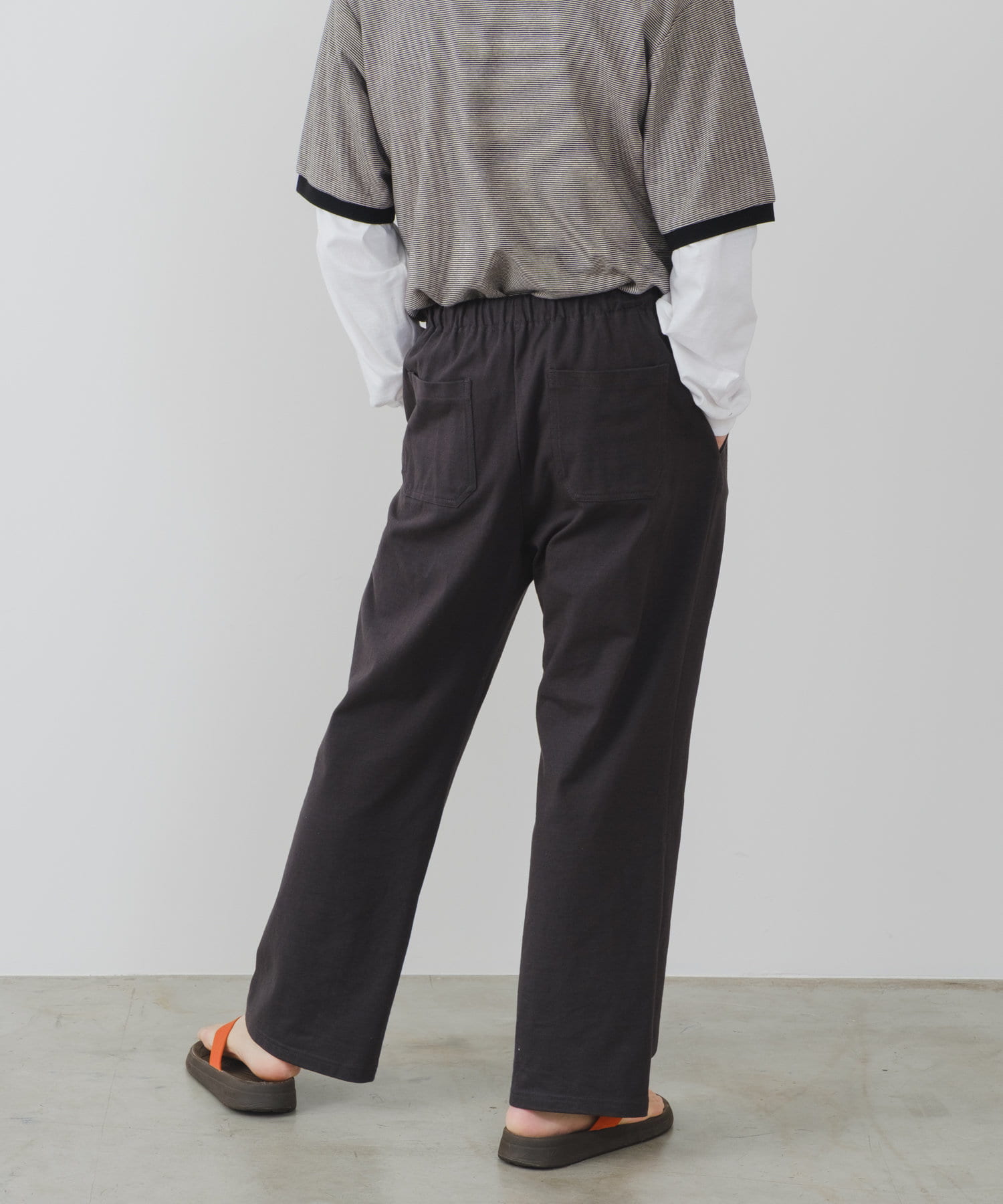 シルエットは裾リブタイプに比べてもたつきにくく、足のシルエットが綺麗に見える仕様です。