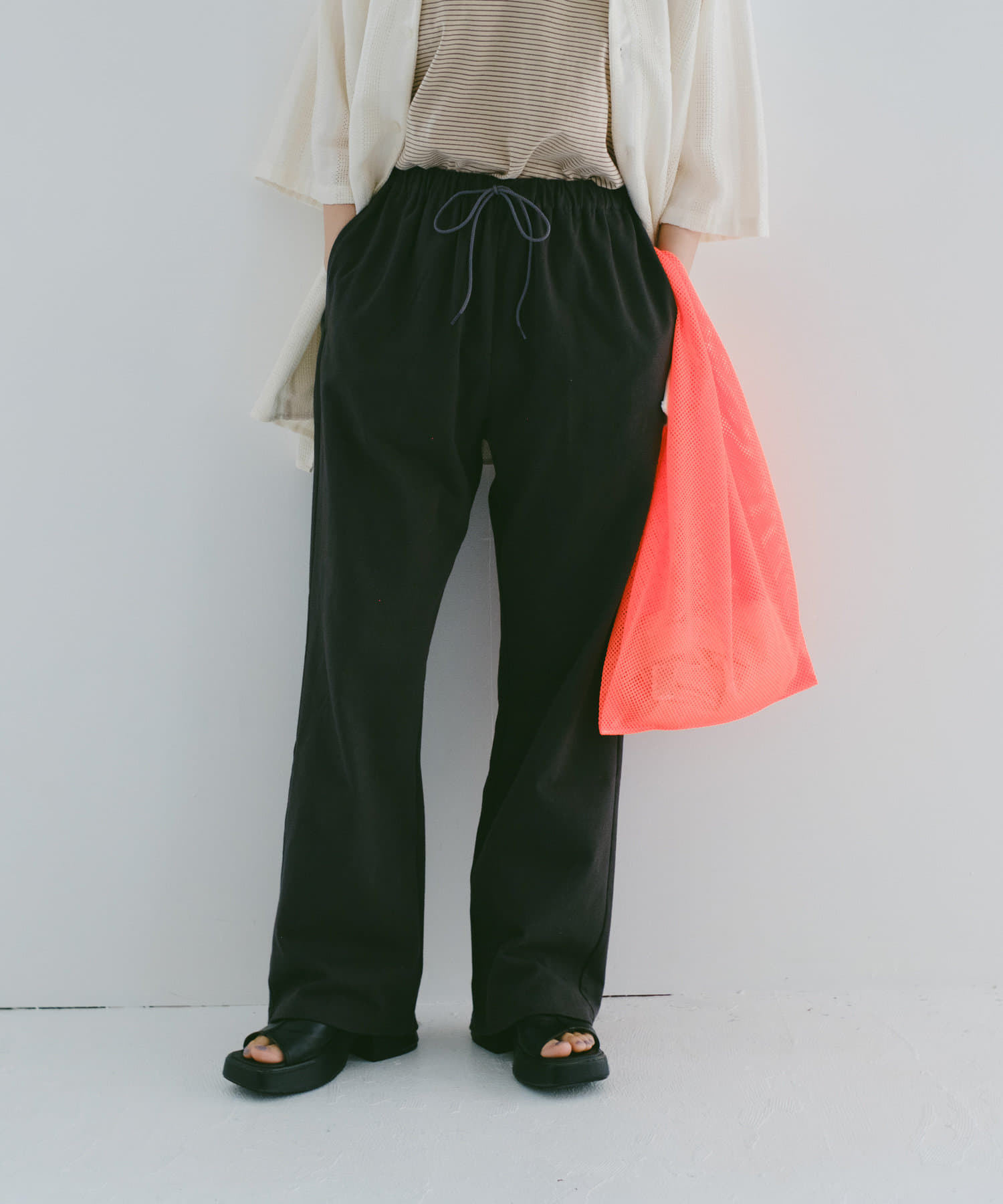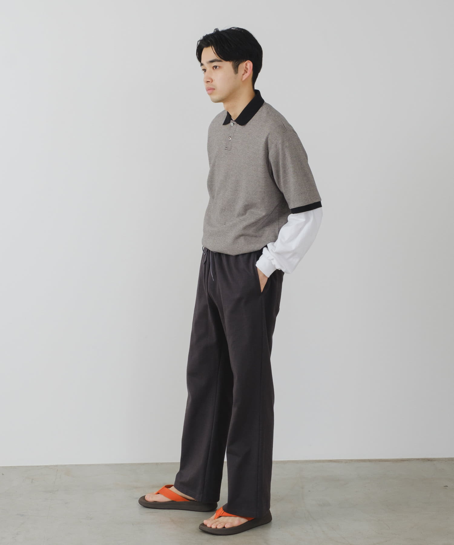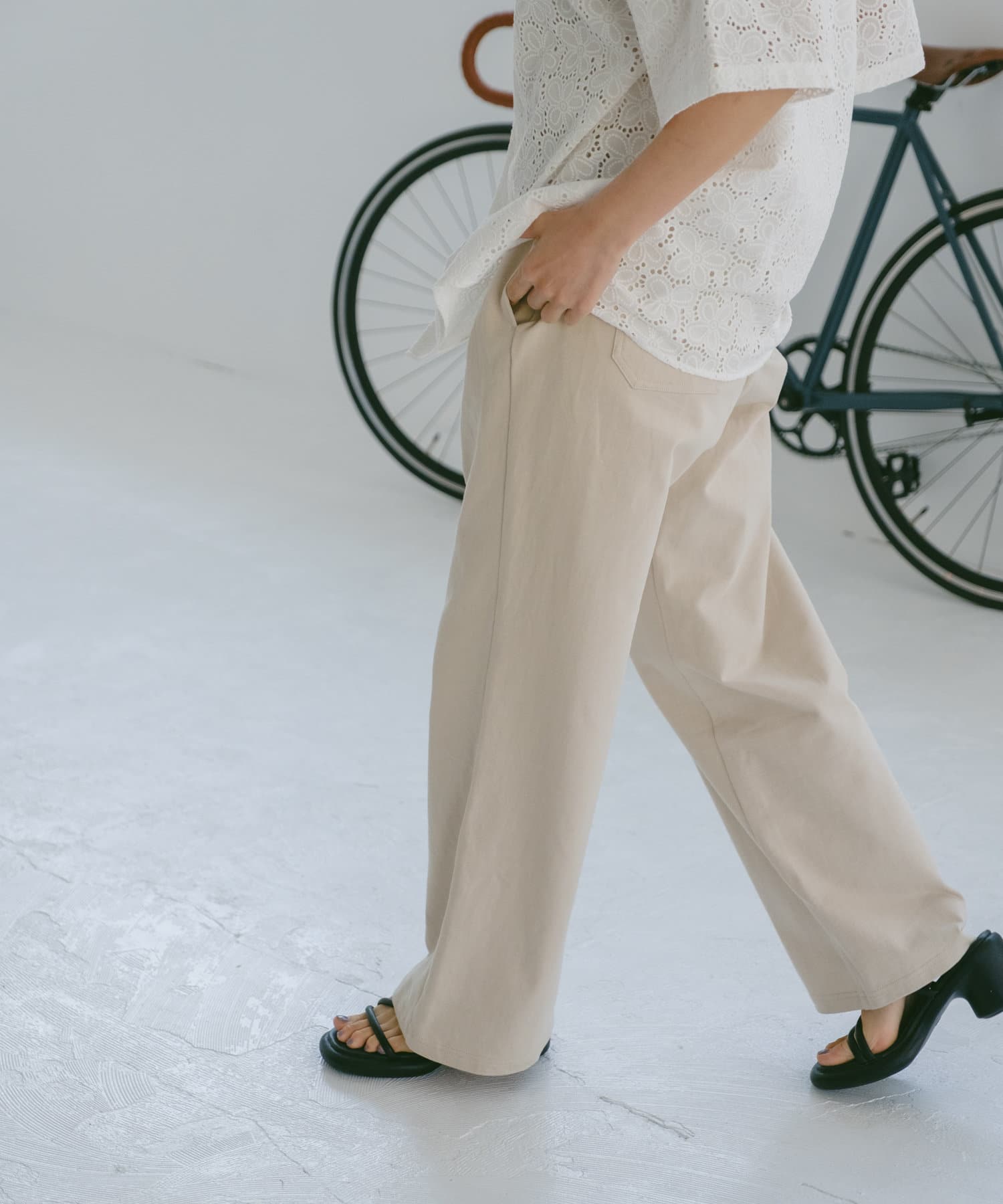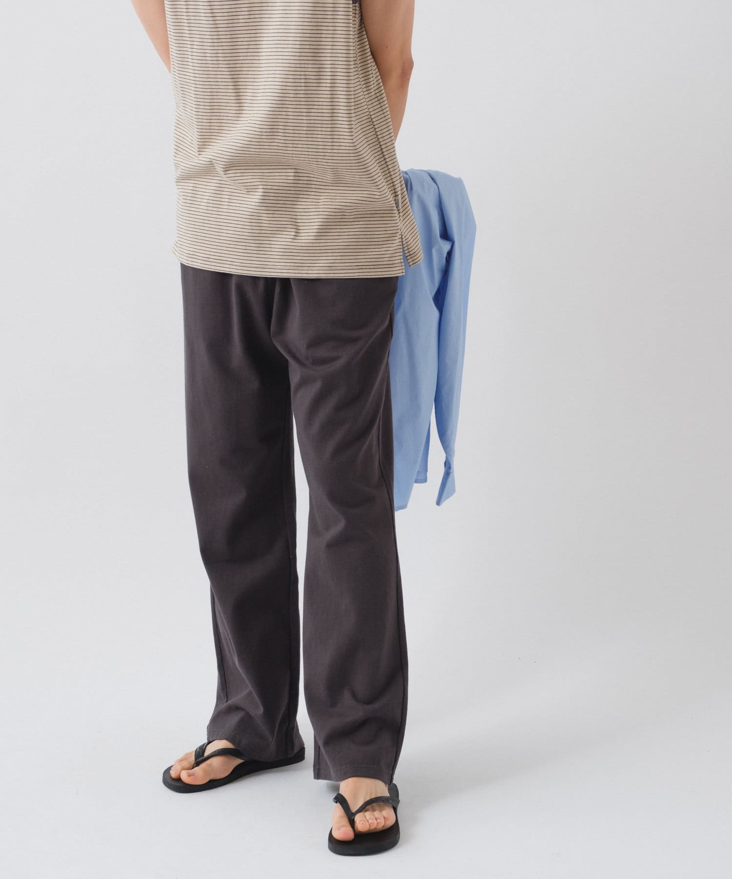シルエットは裾リブタイプに比べてもたつきにくく、足のシルエットが綺麗に見える仕様です。