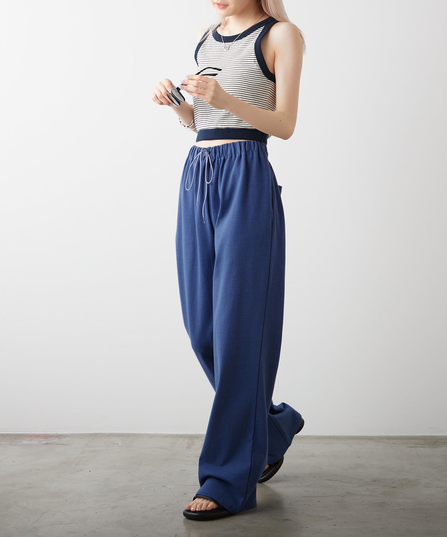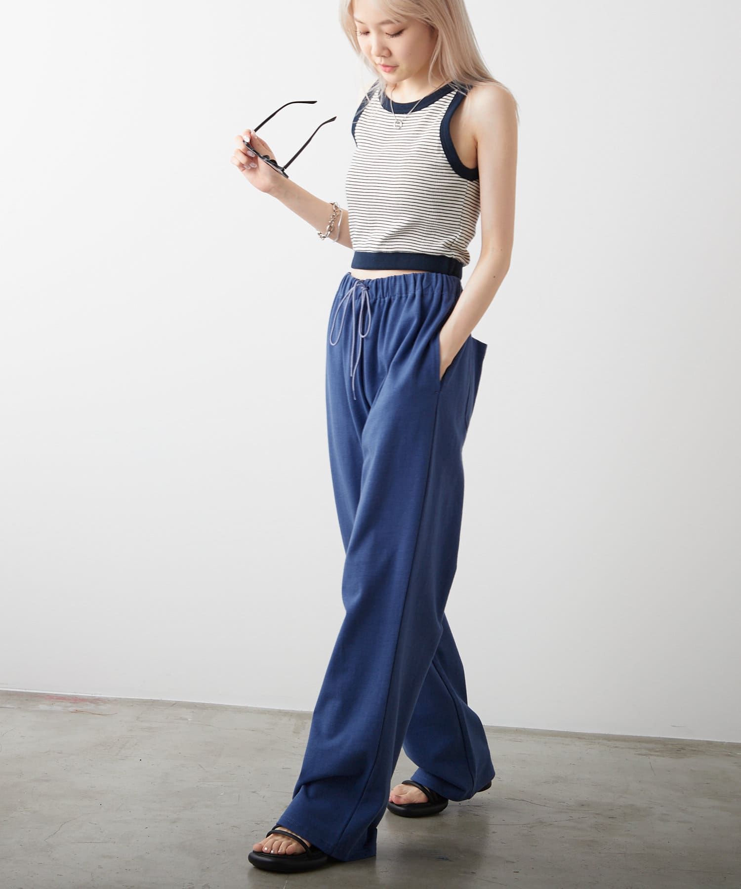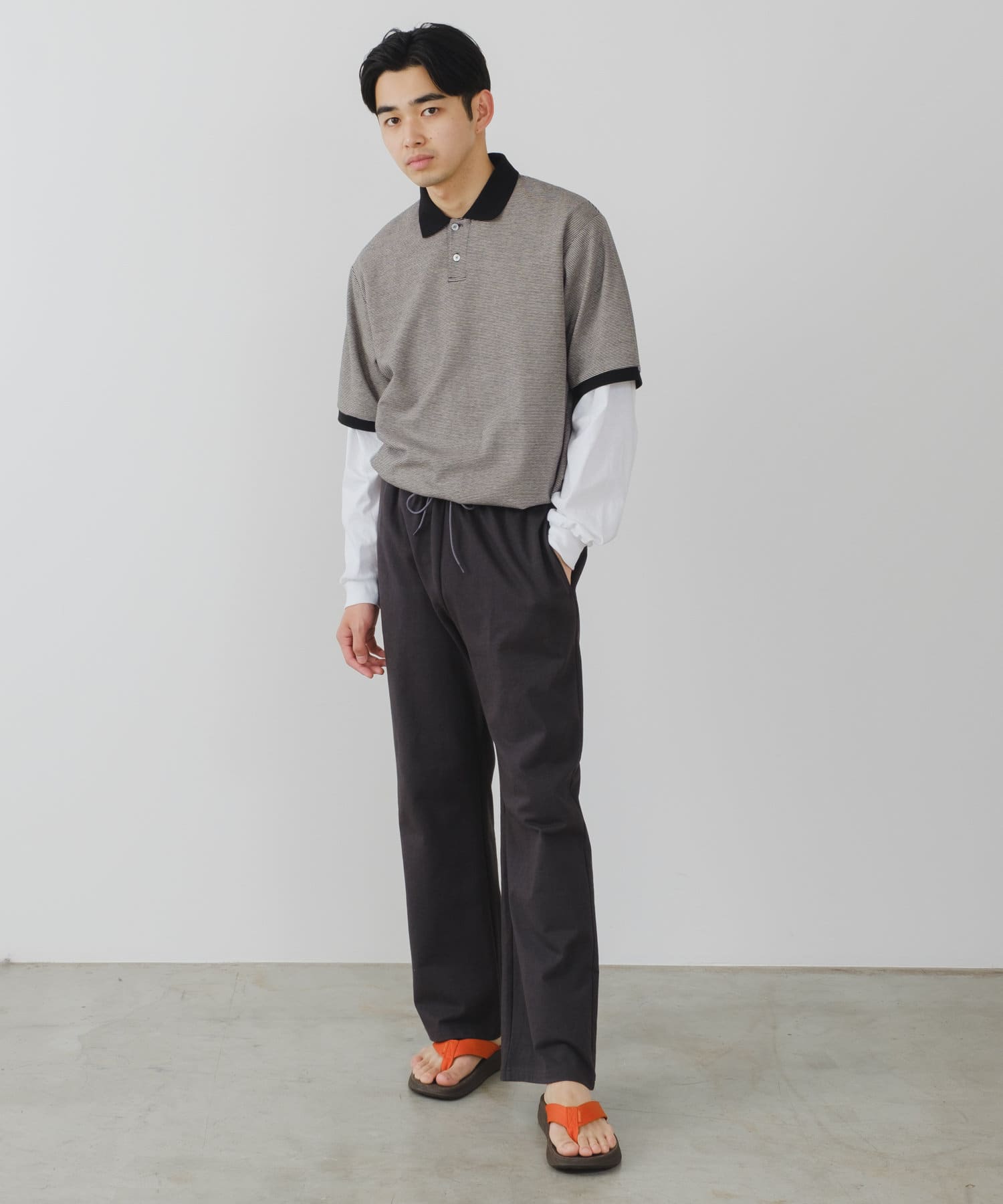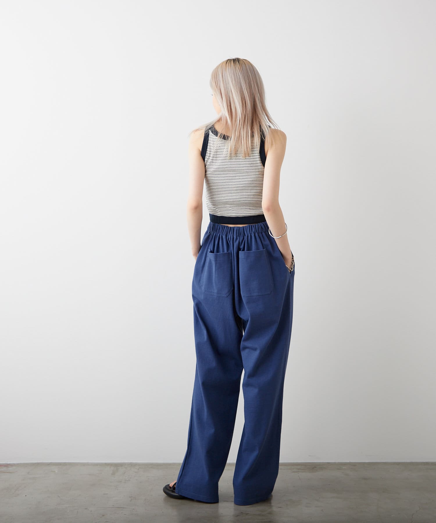 シルエットは裾リブタイプに比べてもたつきにくく、足のシルエットが綺麗に見える仕様です。