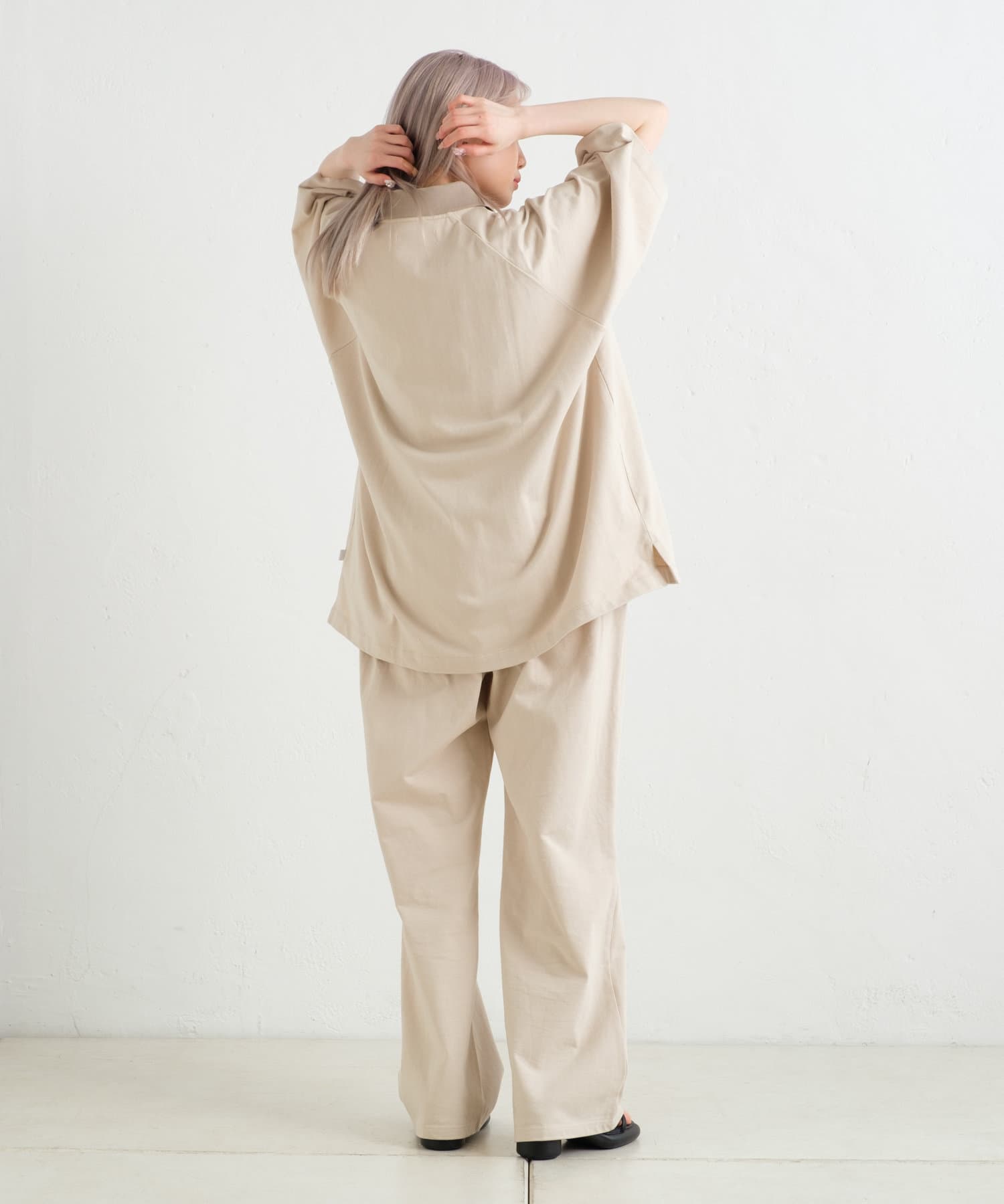 素材がスウェットっぽいのでセットアップで着ても綺麗めになりすぎず、力の抜けた感じの着こなしができます。