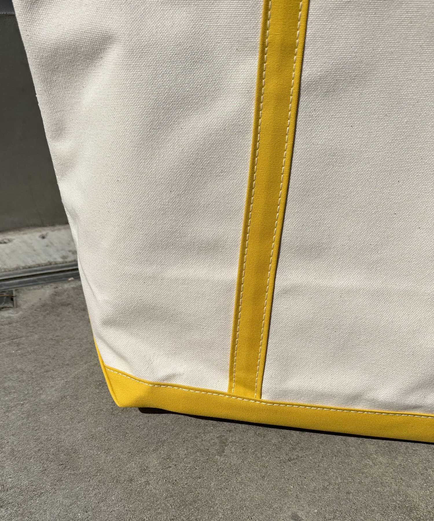 丈夫な24オンスのナチュラルなコットン・キャンバス地のボディーに、コントラストカラーのハンドル。