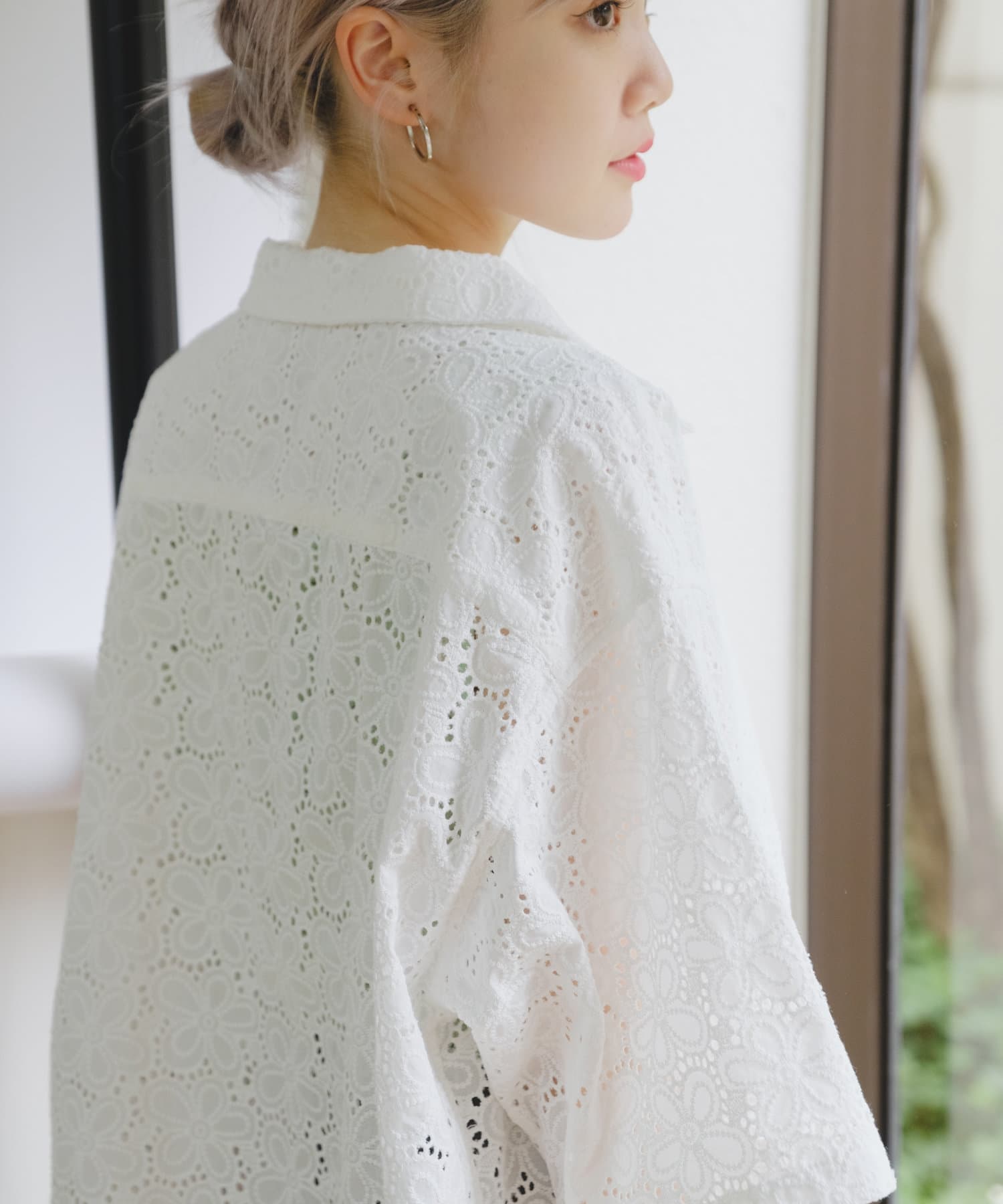 【WHIMSIC】FLOWER PATTERN LACE SHIRT