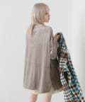 程よい厚さのベロア生地を使用しているためメイントップスはもちろんシャツやカーディガンのインナーにも最適です。