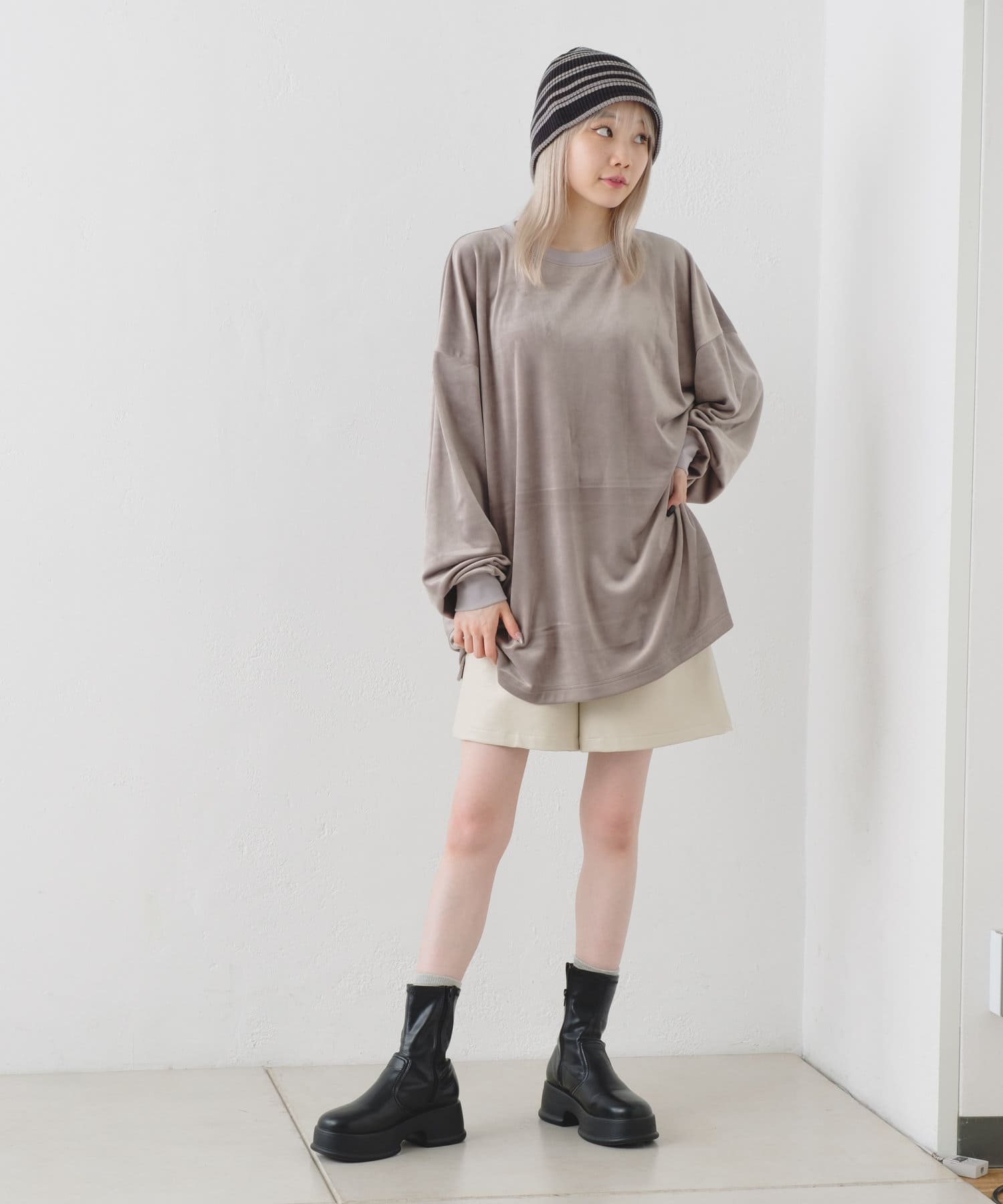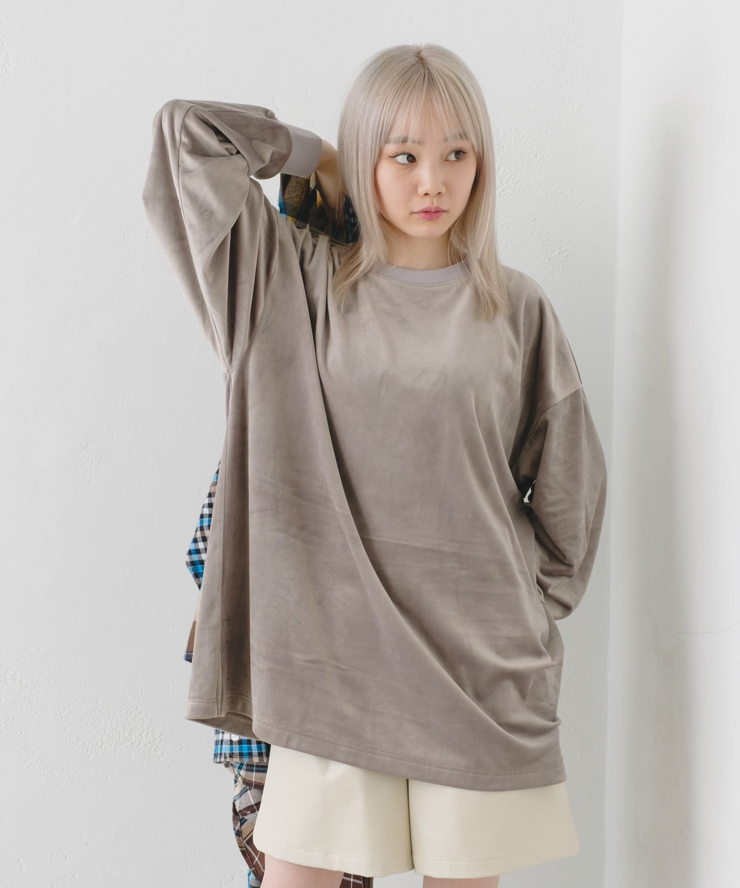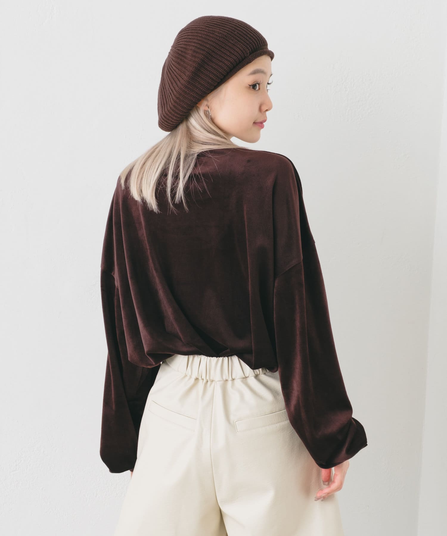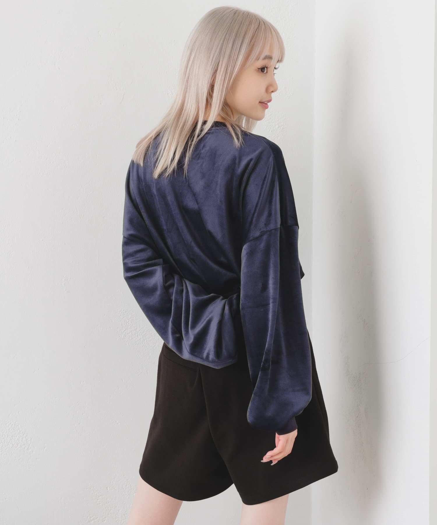 ロンTだけど、ベロア生地なので、光沢感があり、ラフになりすぎないのがかわいい!