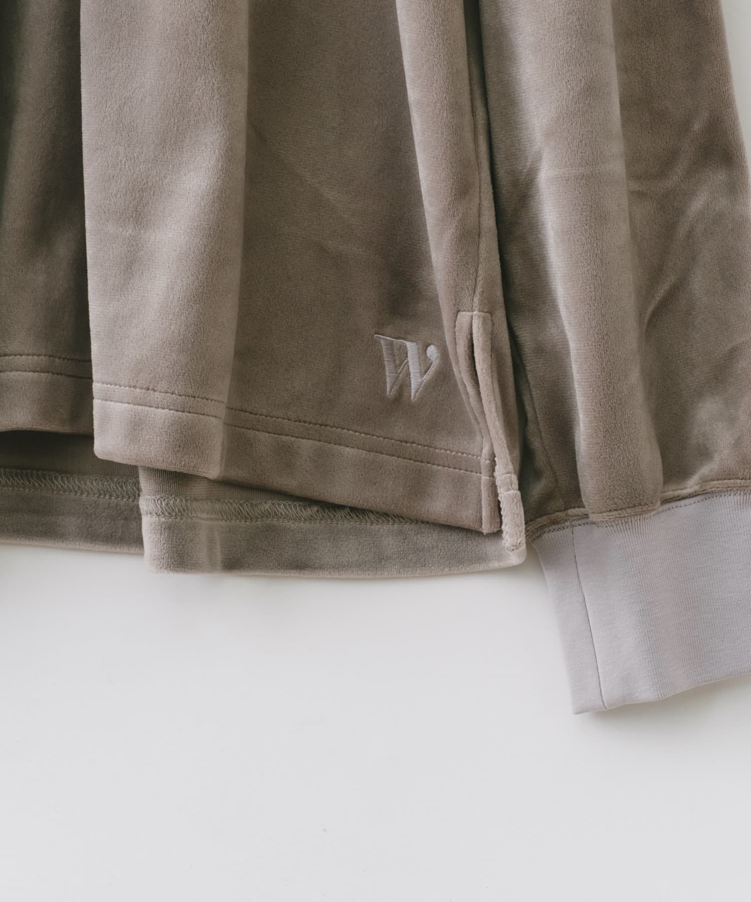 ベロア生地なので気持ちよくて、さりげなく裾にWの文字が入っているのがかわいい