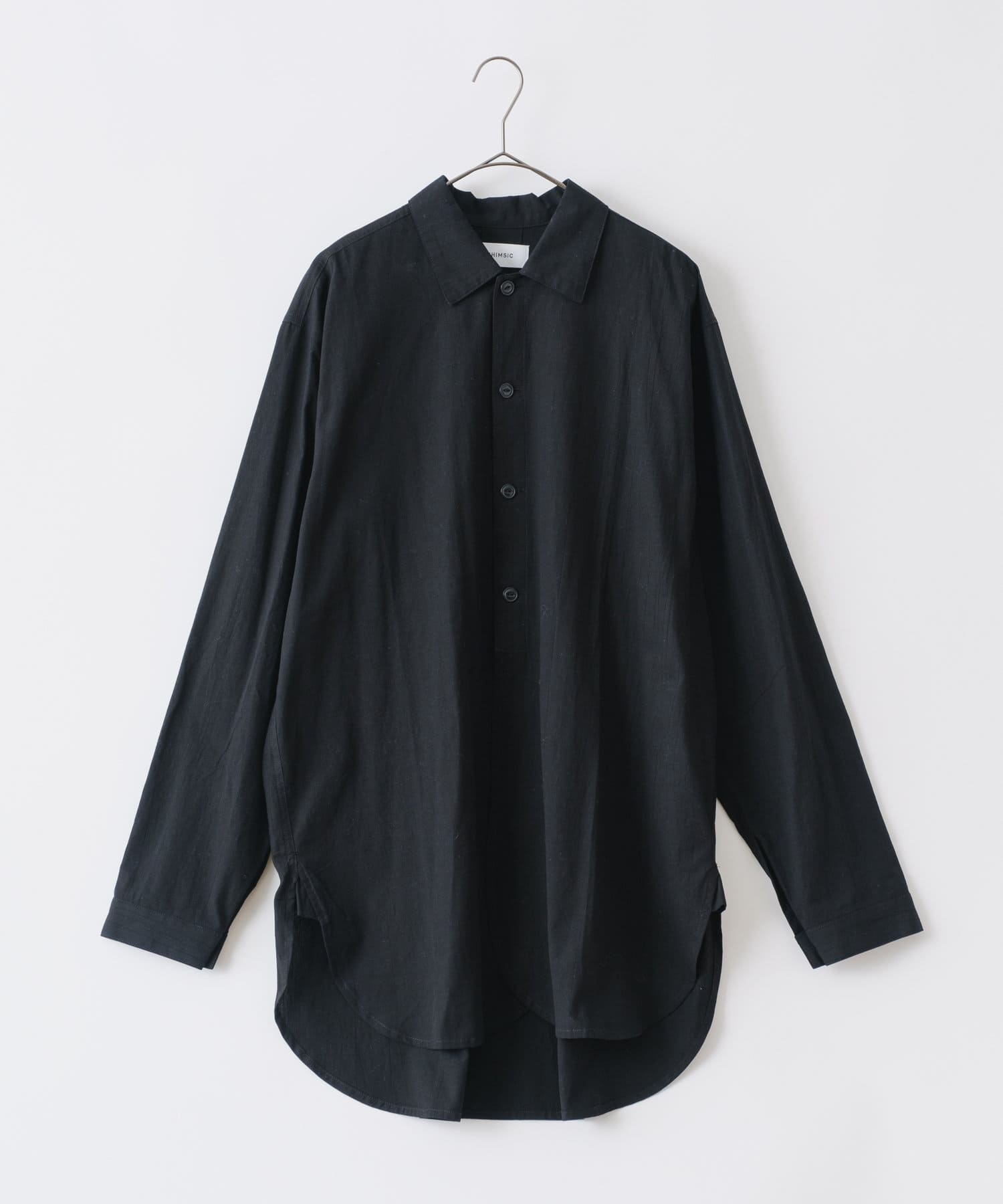 50年代、兵士の就寝用、軍の医療機関へ支給されていたスウェーデン軍M-55 PULLOVER SHIRTをデザインベースにプルーオーバーから前開き仕様に変更。身幅、着丈なども現代的なシルエットに変更しています。