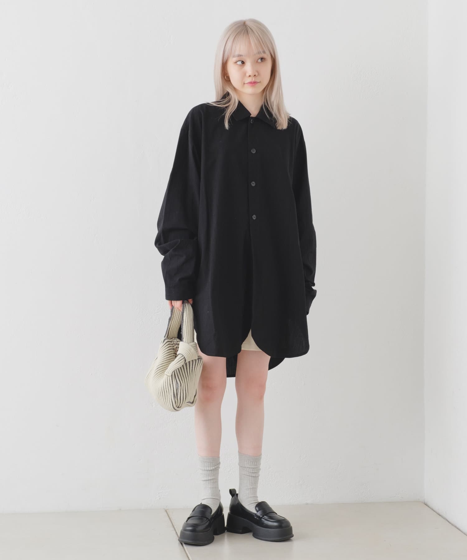 身幅や着丈にゆとりを出しているため、一枚着シャツスタイルからインナーにニット、スウェットなどを入れてシャツコートスタイルまで幅広いスタイリングが楽しめます。