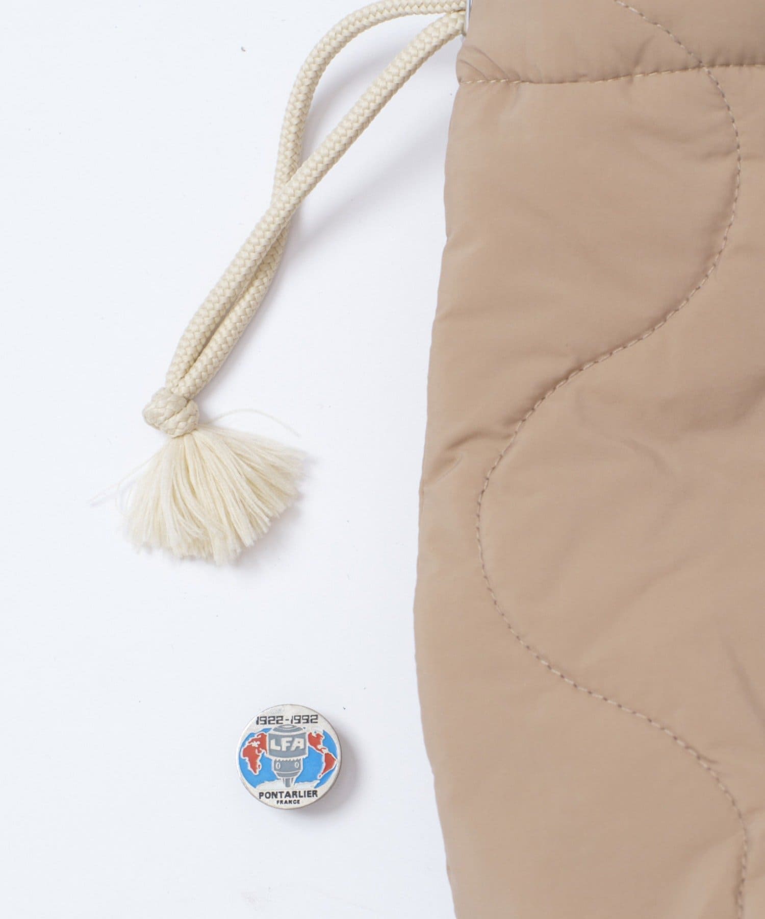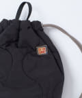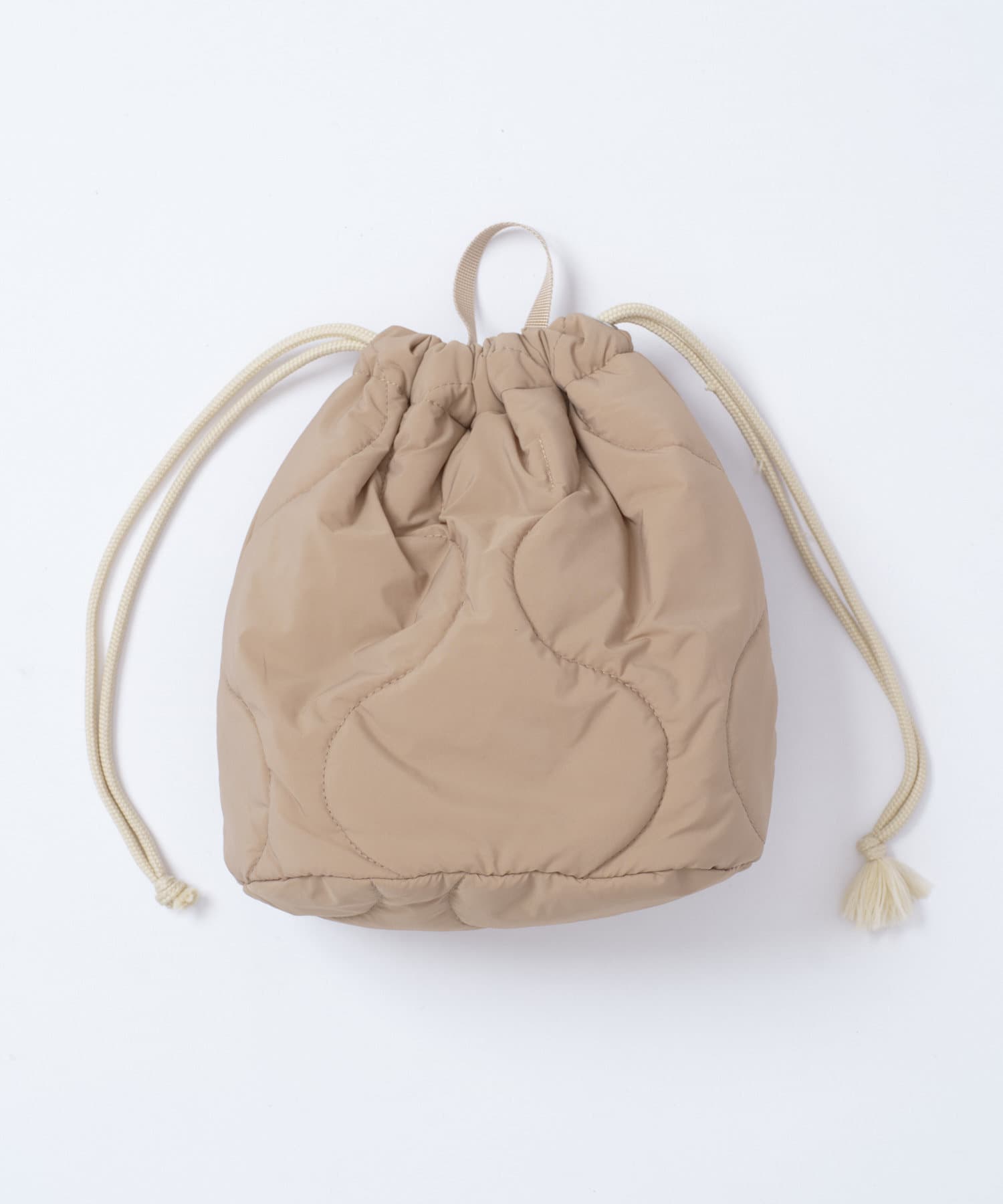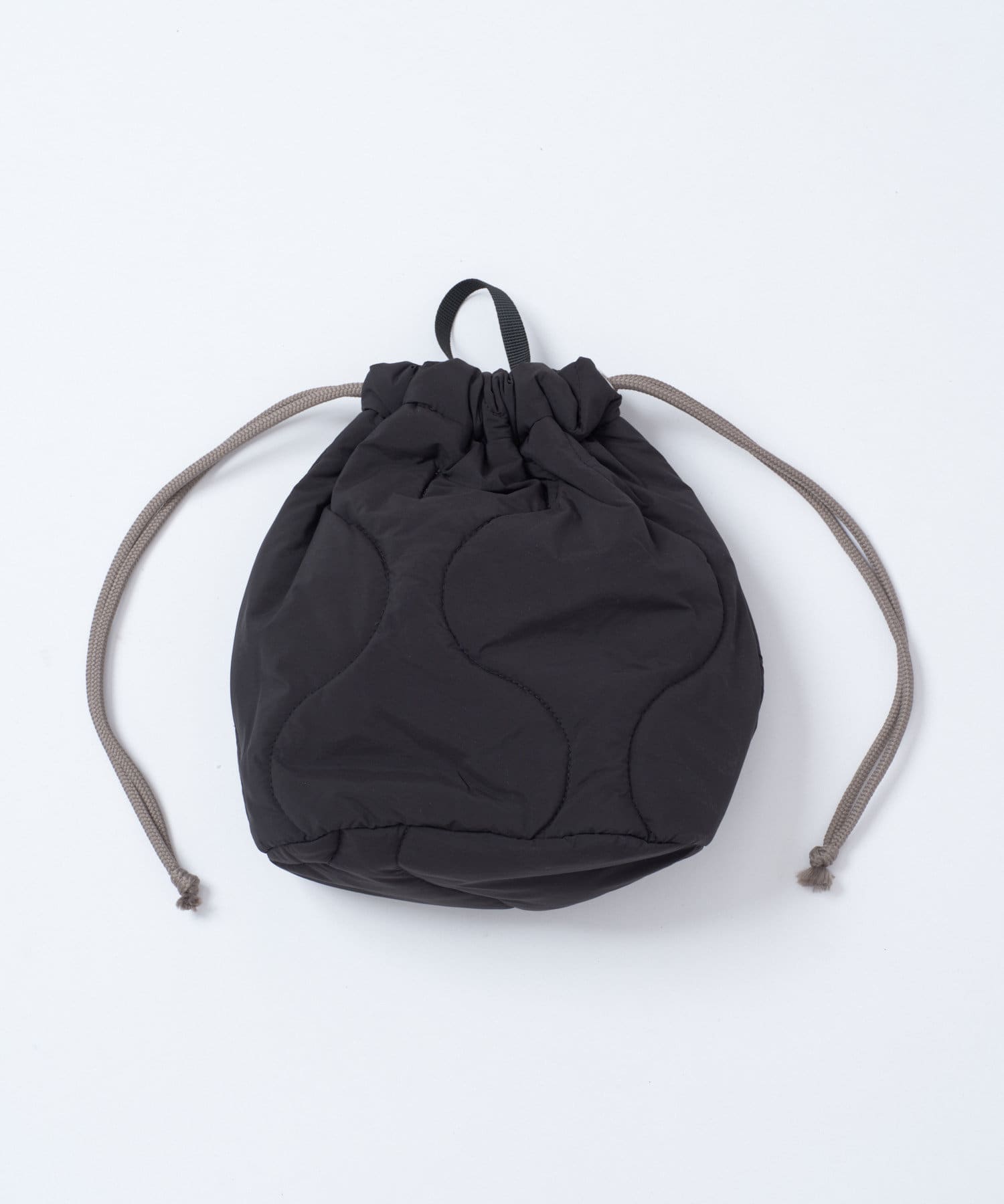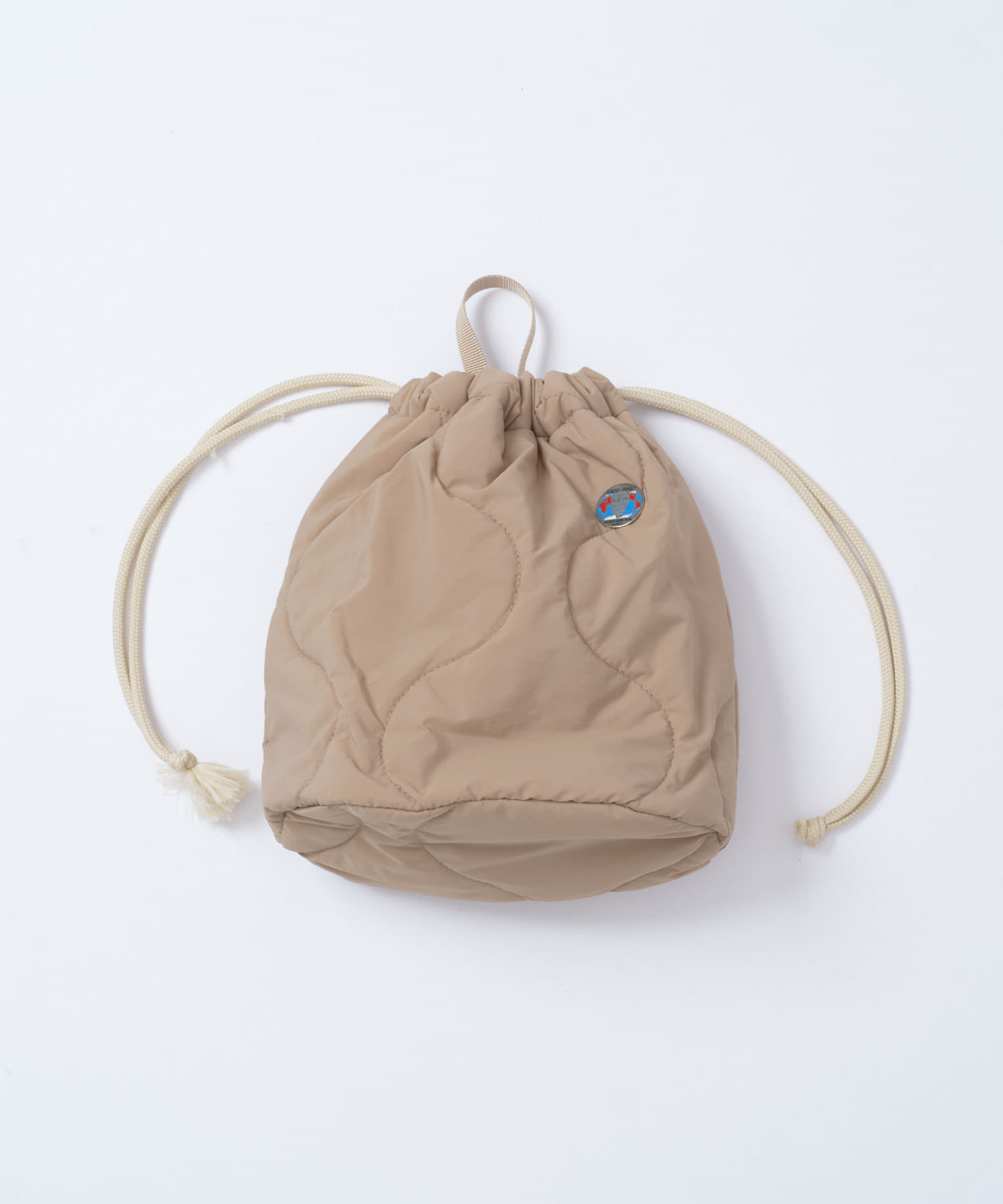 アメリカ軍パーソナルエフェクトバッグをサンプルベースに中綿キルティング生地を使用した巾着バッグです。