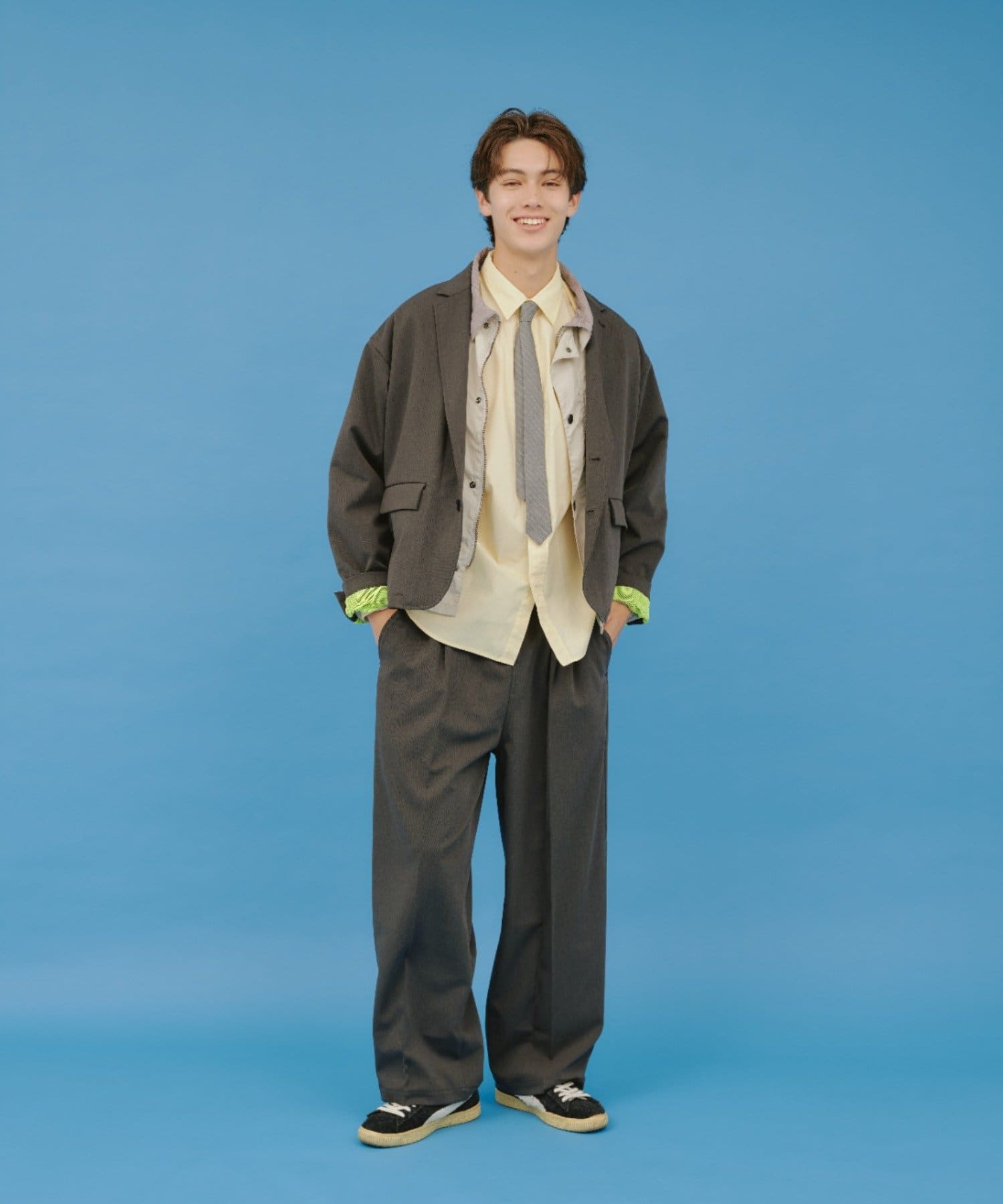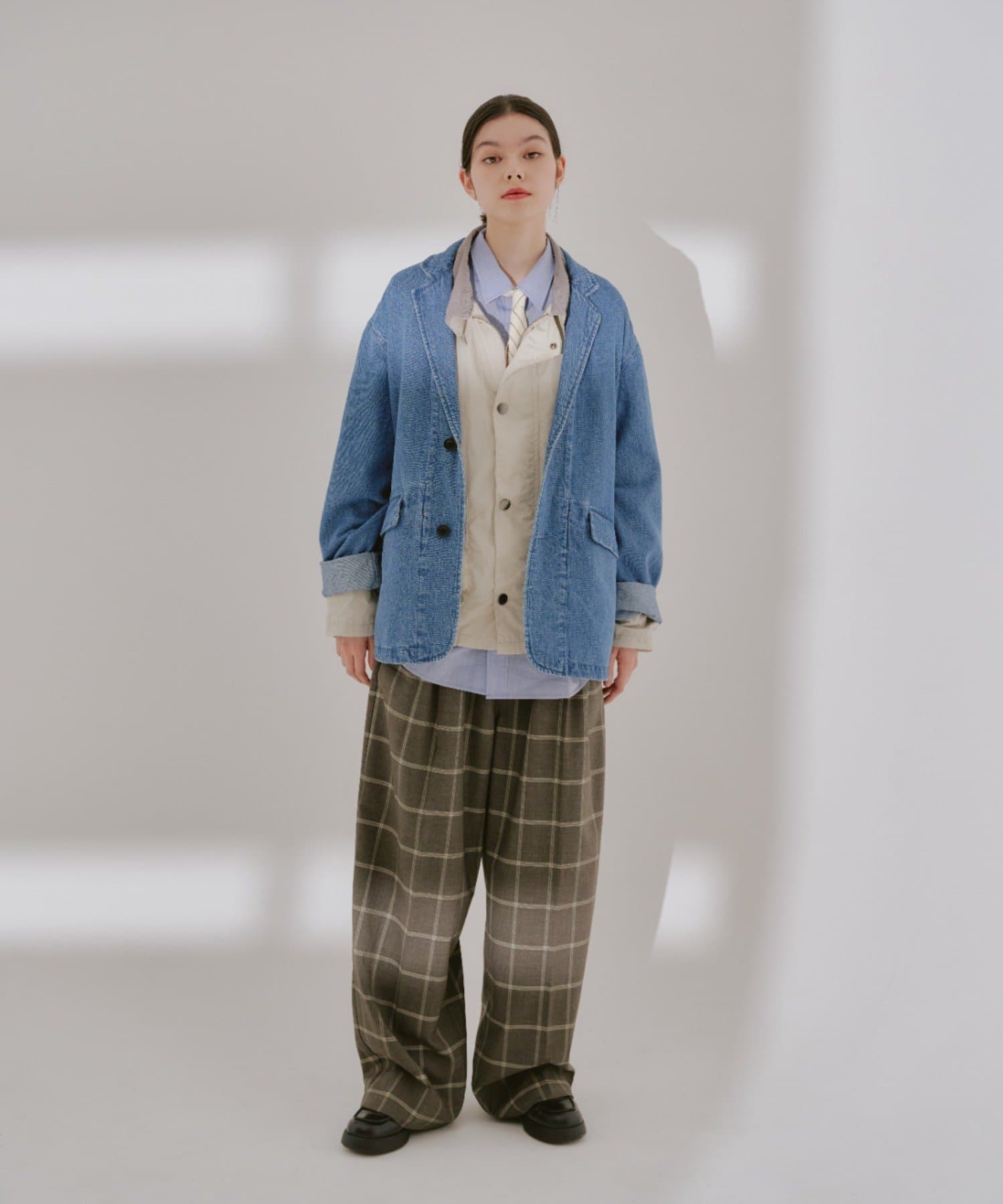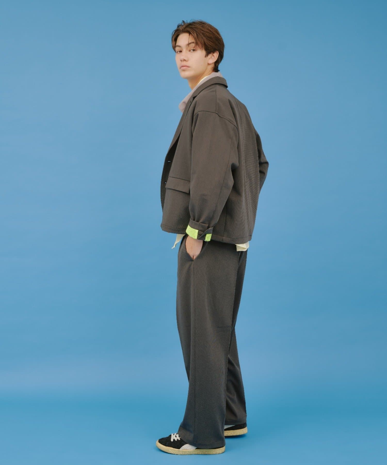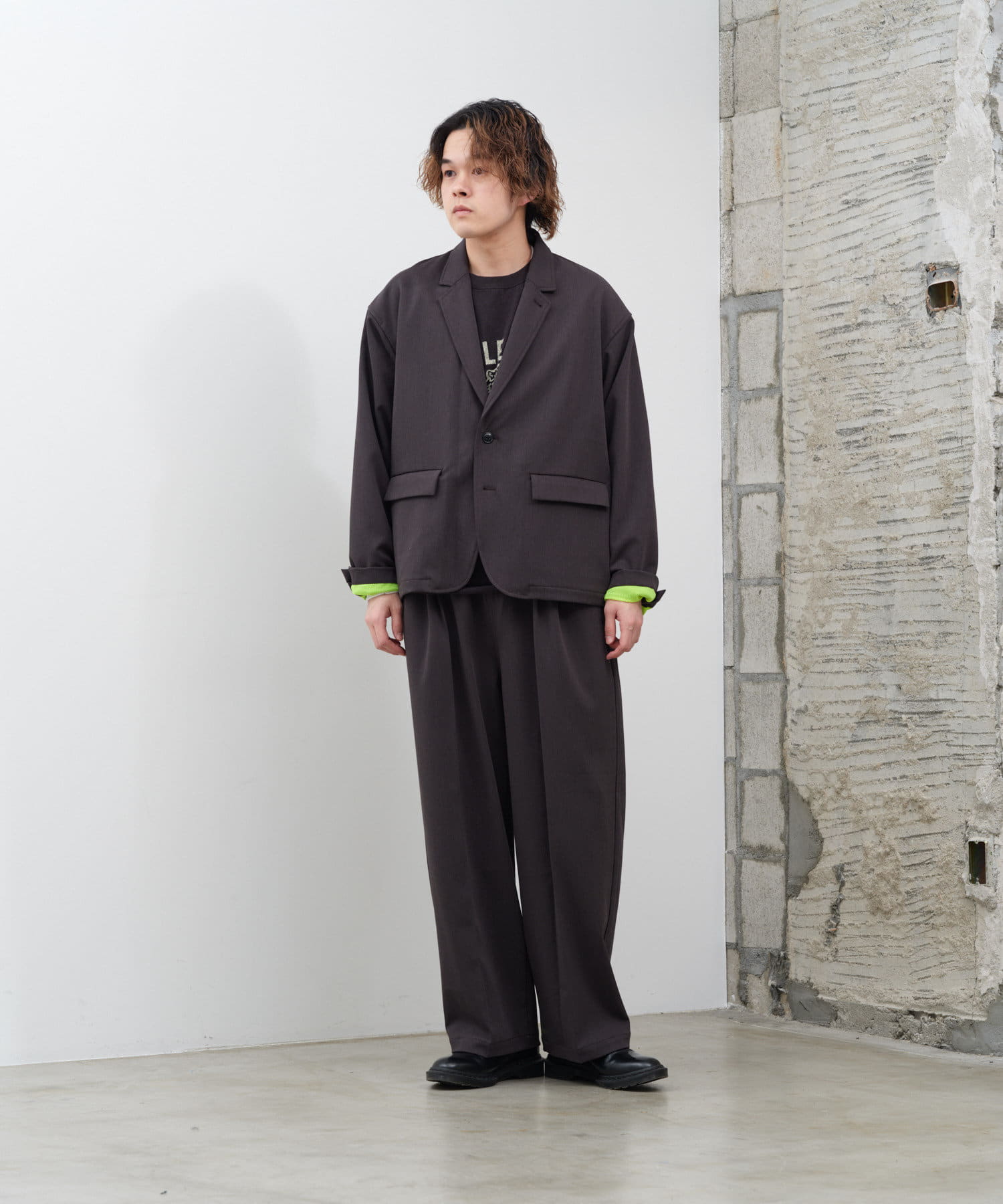 同素材を使用した2Bテーラードジャケットも用意しているのでセットアップとしてのコーディネイトもオススメです。