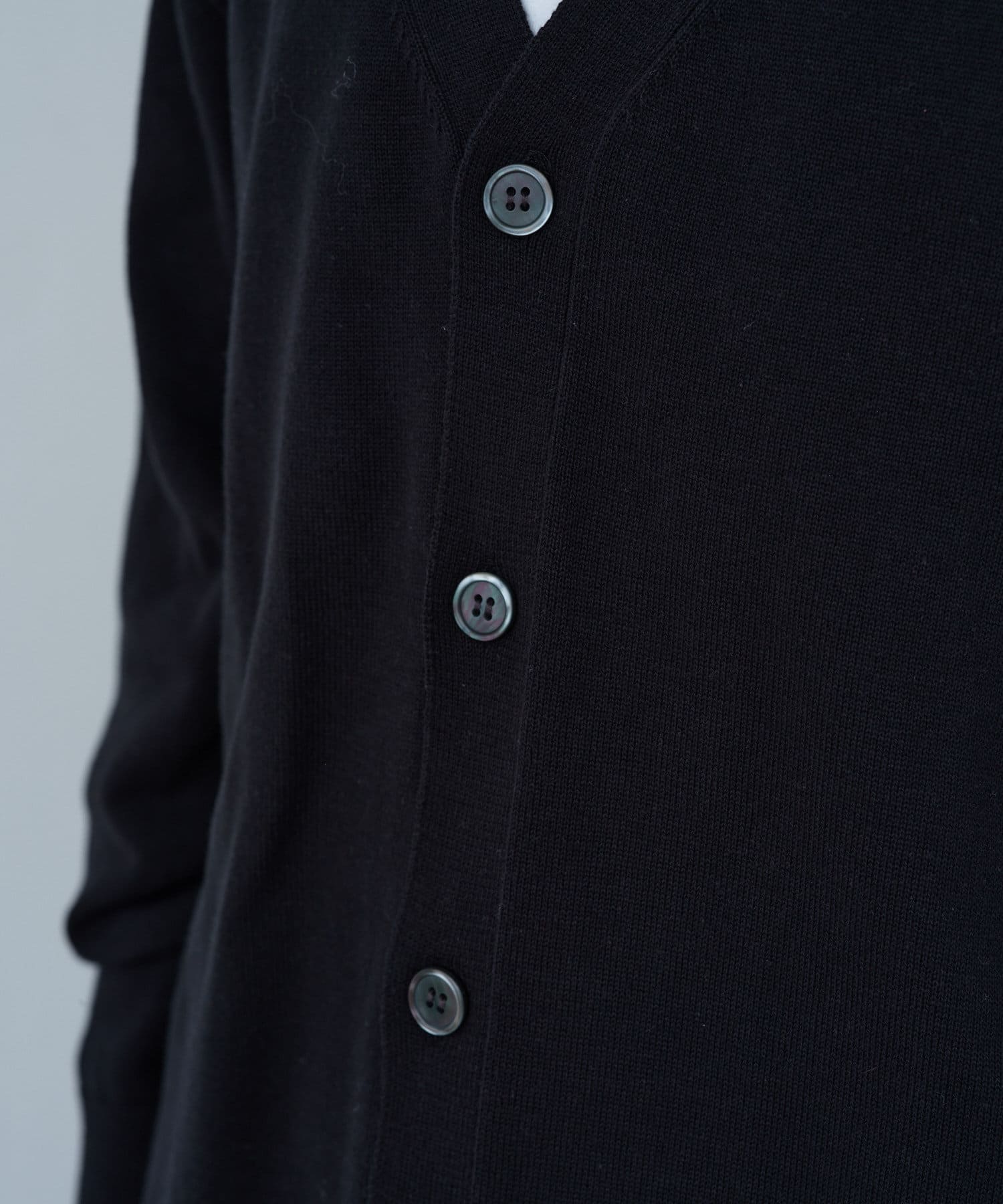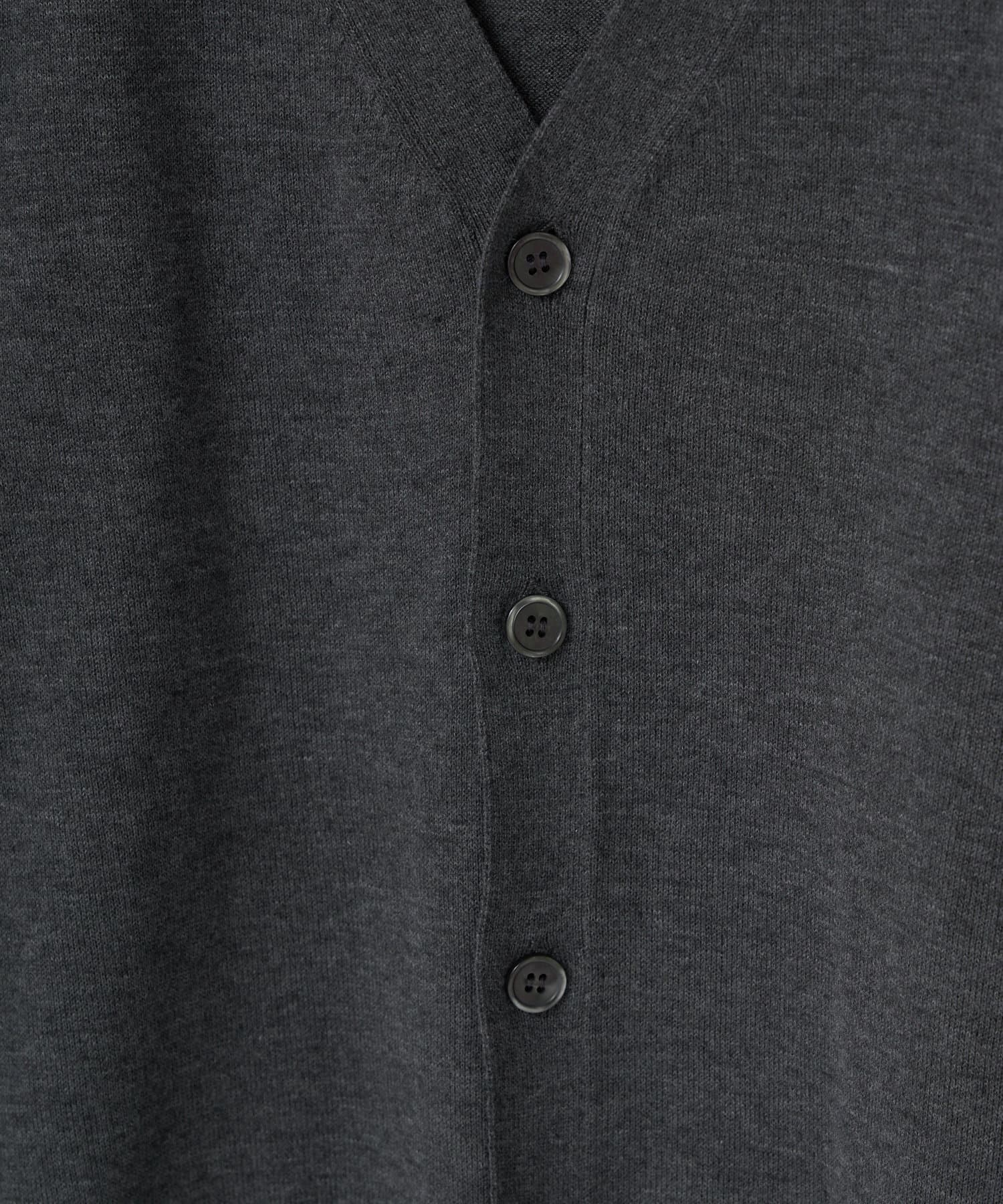 程よくハリがある糸で細かく編み上げた春夏に最適な清涼感のあるオーセンティックな雰囲気のハイゲージニットカーディガンです。