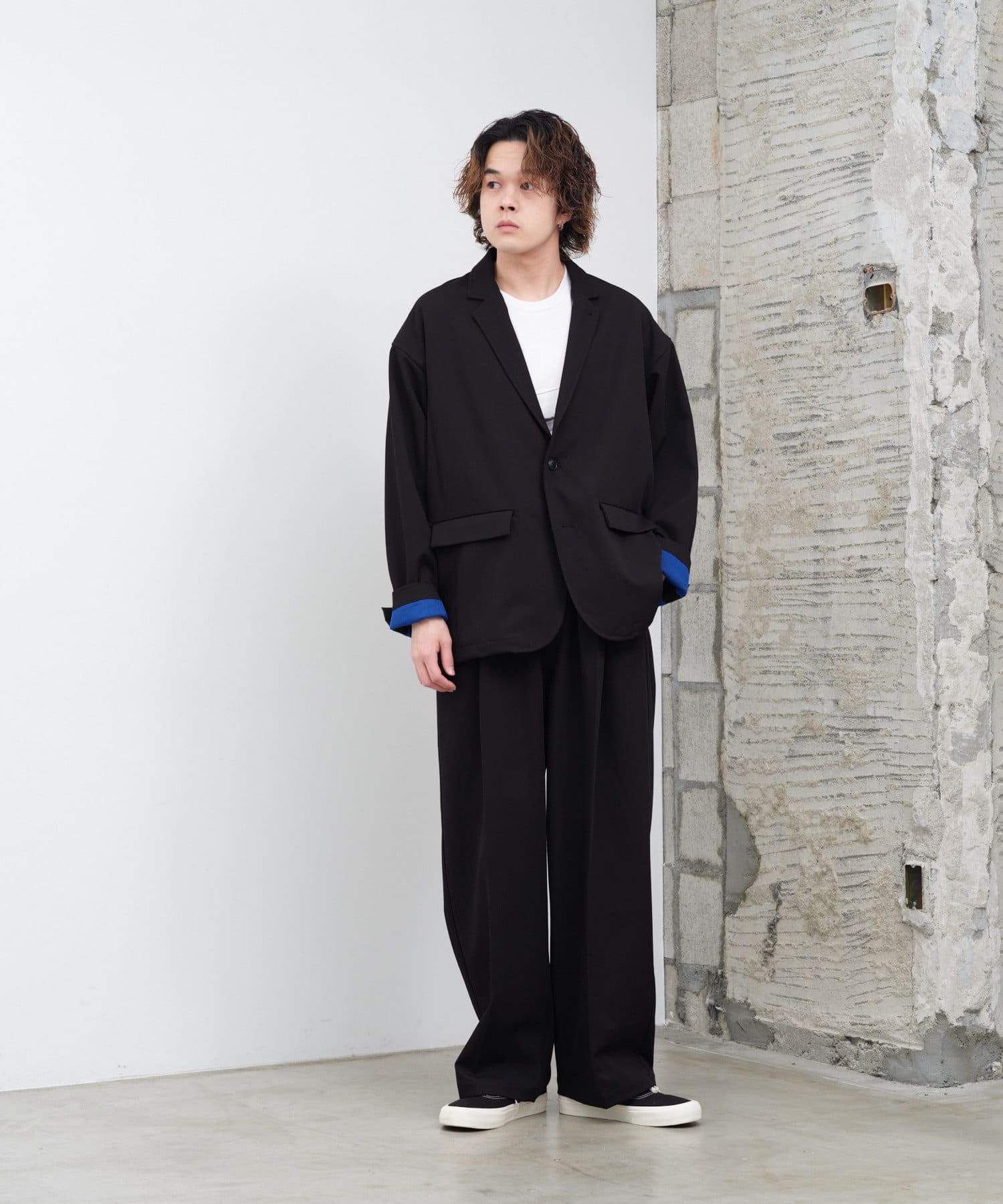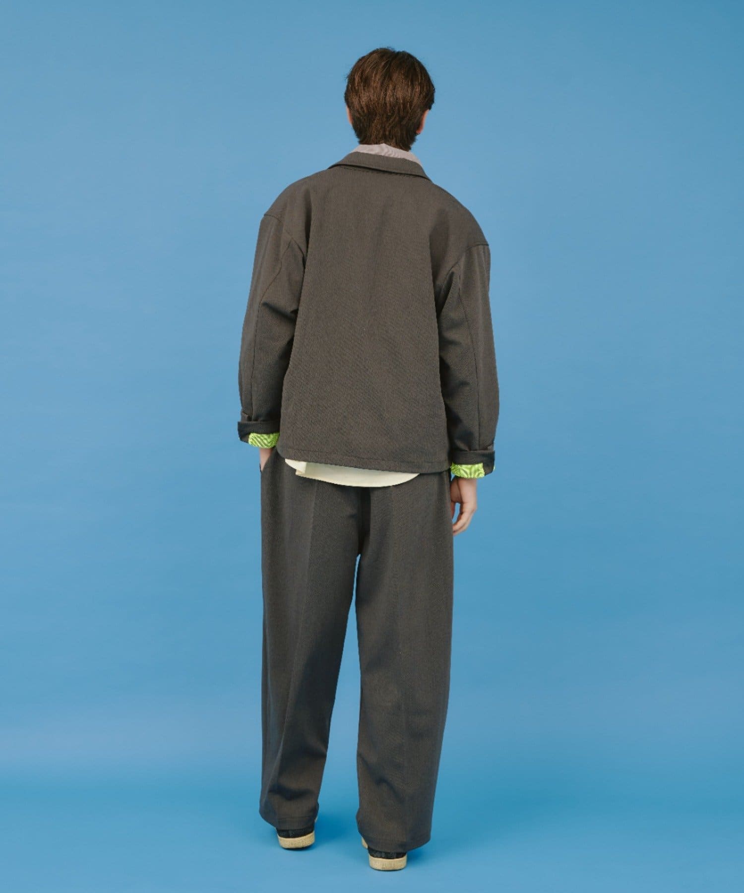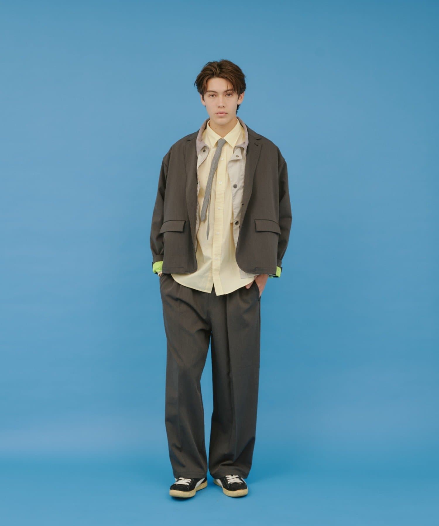 同素材を使用したルーズフィットイージースラックスも展開しているのでセットアップとしてのコーディネイトもオススメです。