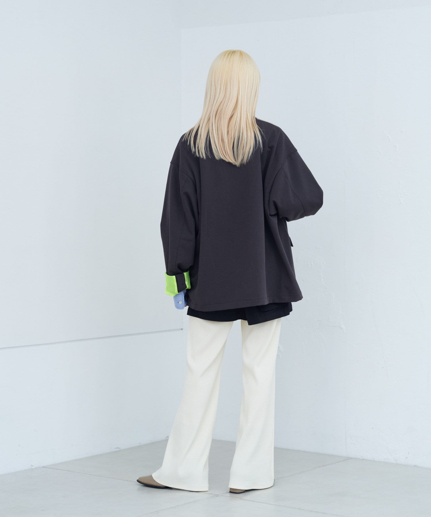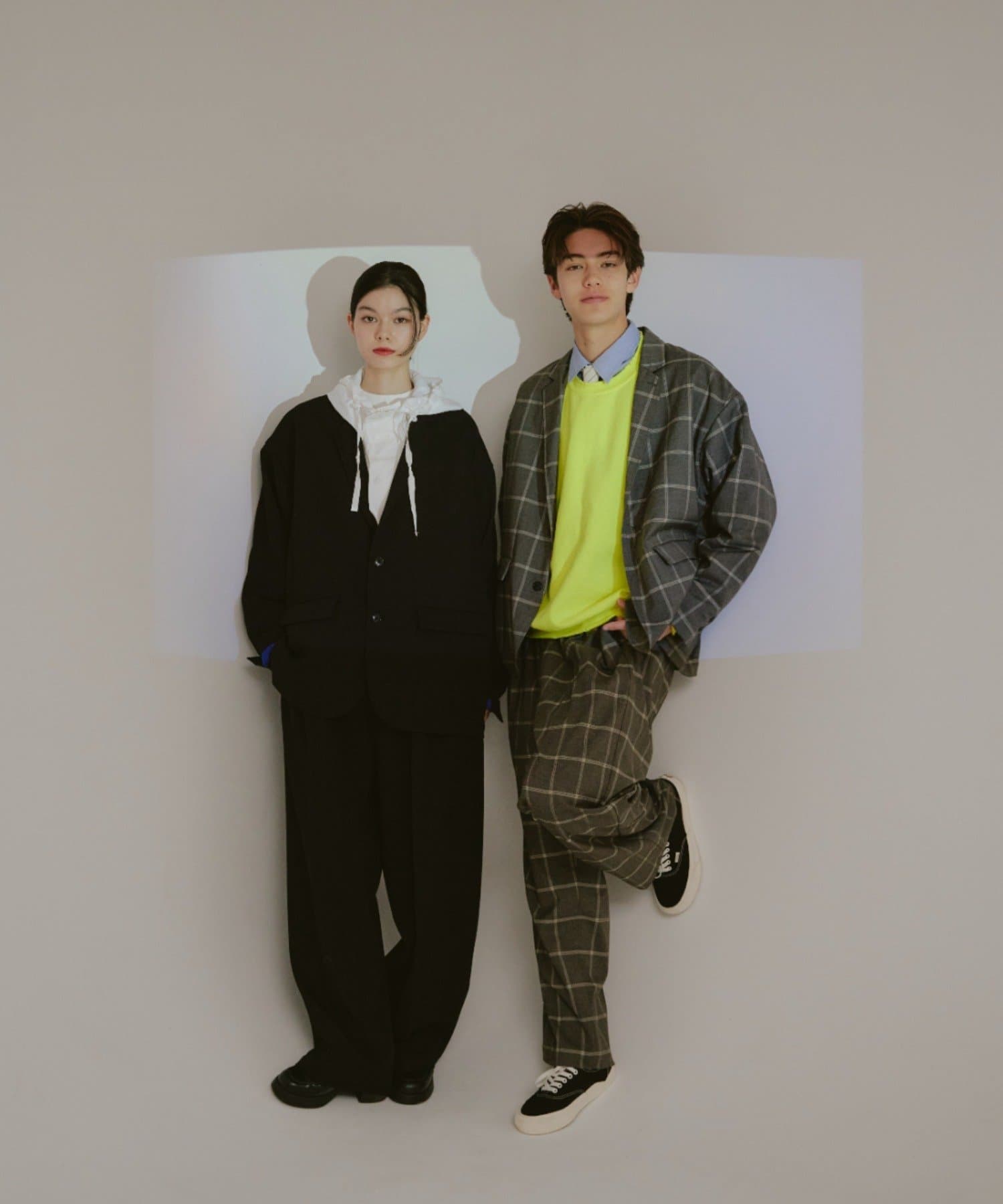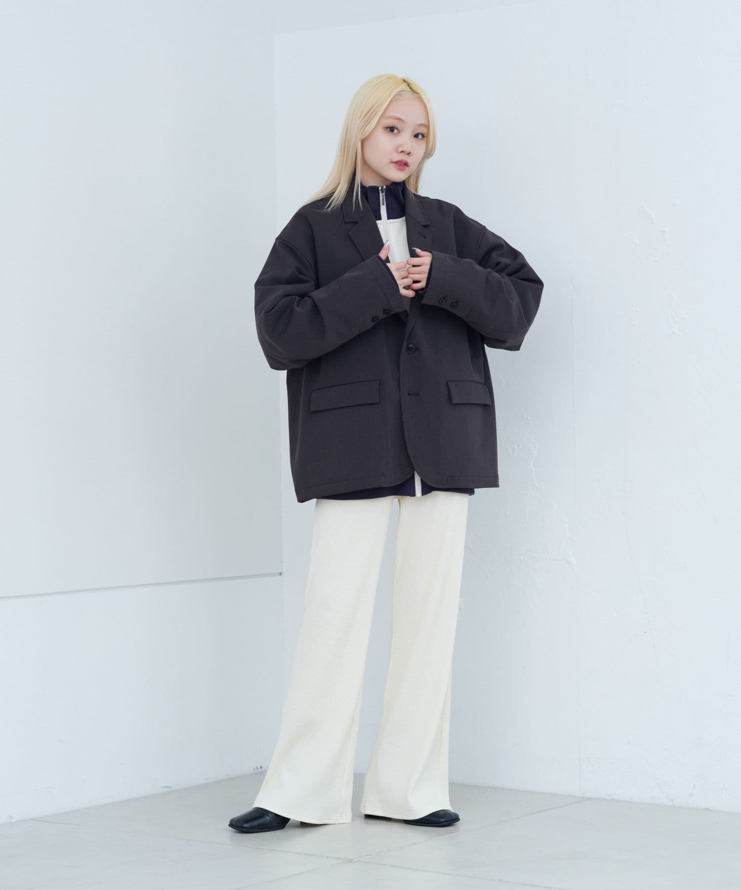 同素材を使用したルーズフィットイージースラックスも展開しているのでセットアップとしてのコーディネイトもオススメです。