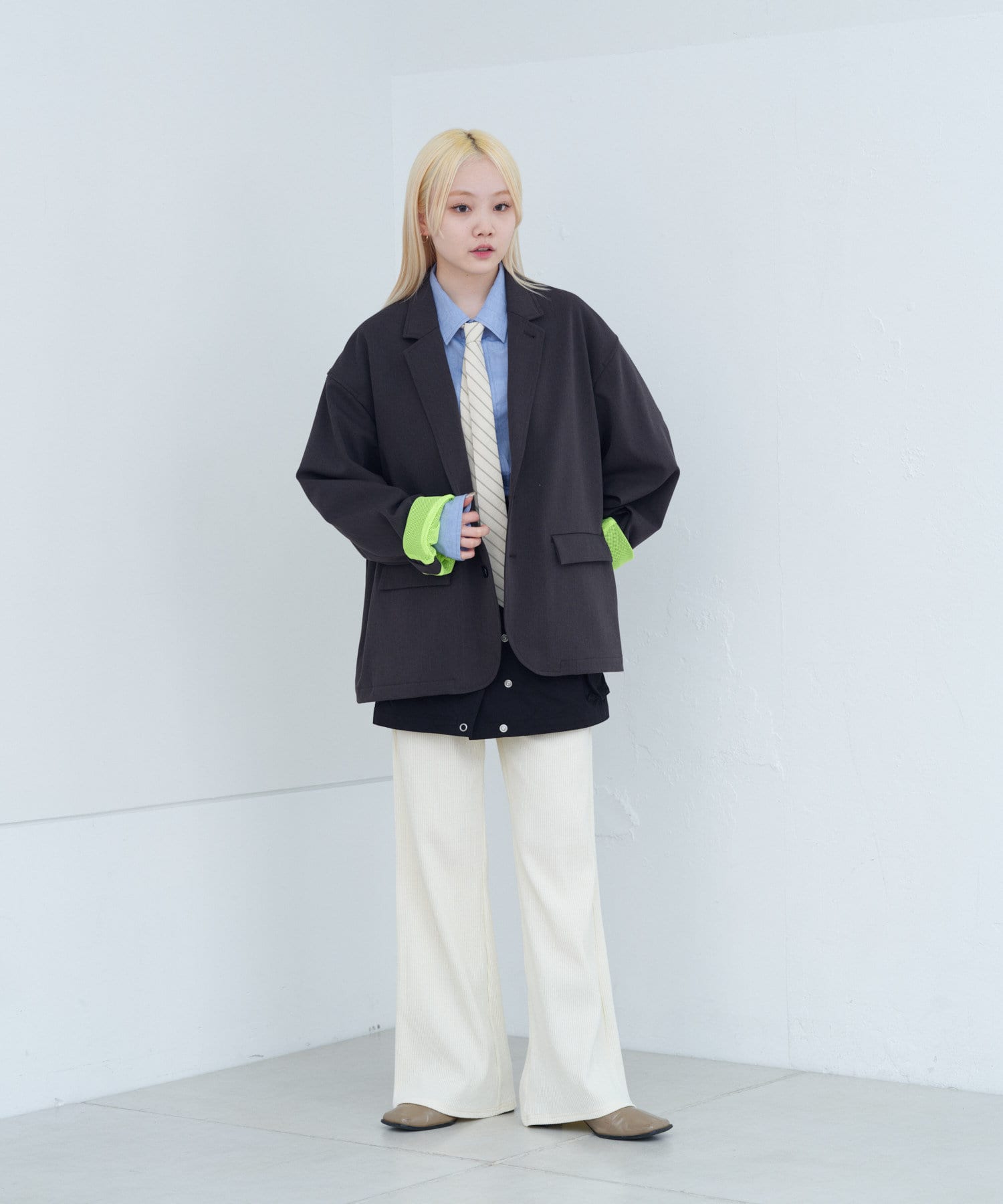 オーセンティックなデザインでありながら裏地の蛍光色が効いた遊び心のある2Bテーラードジャケットです。