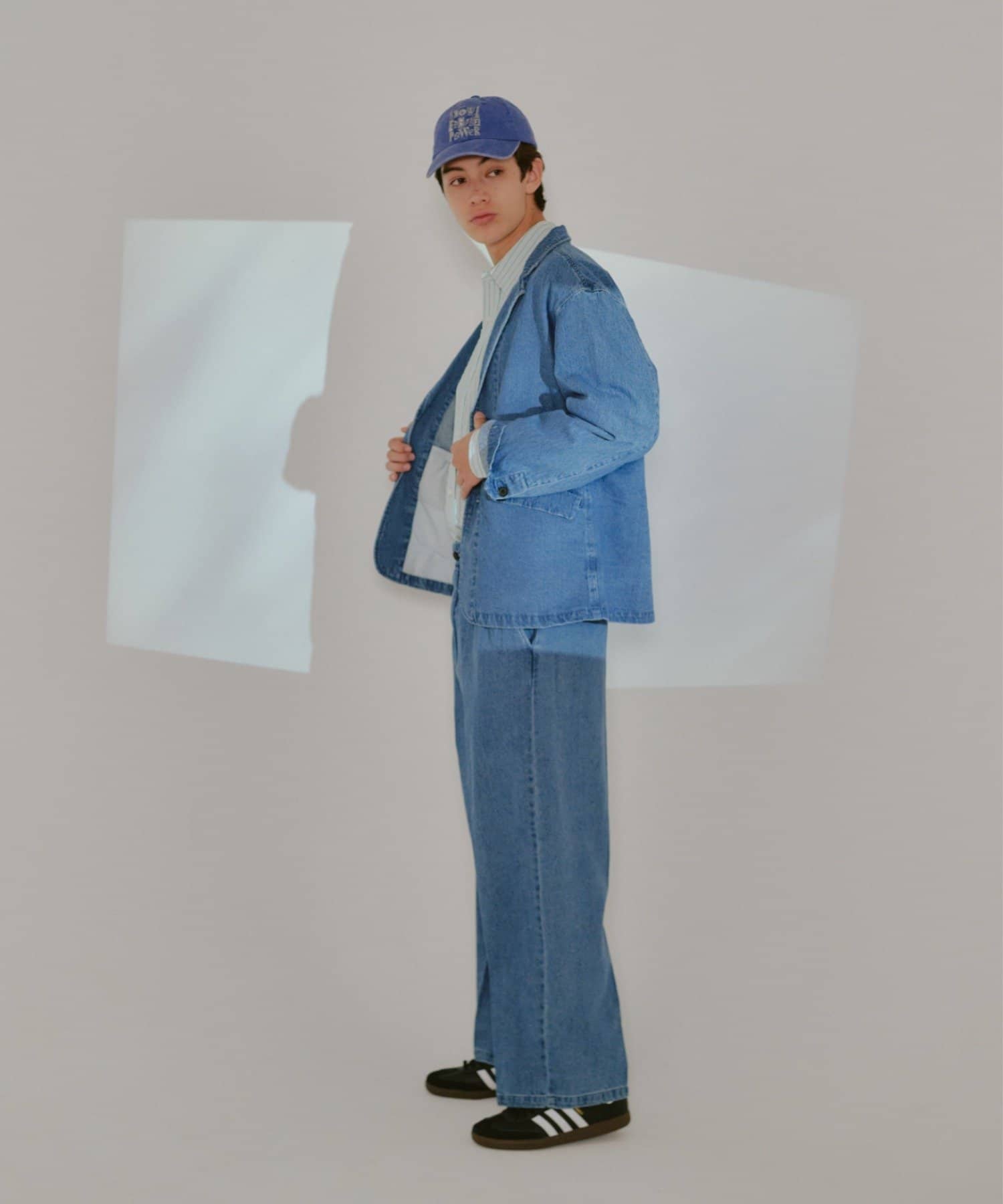 同素材を使用したコットンリネンデニムスラックスも用意しているのでセットアップとしてのコーディネイトもオススメです。