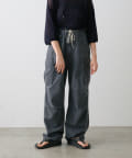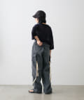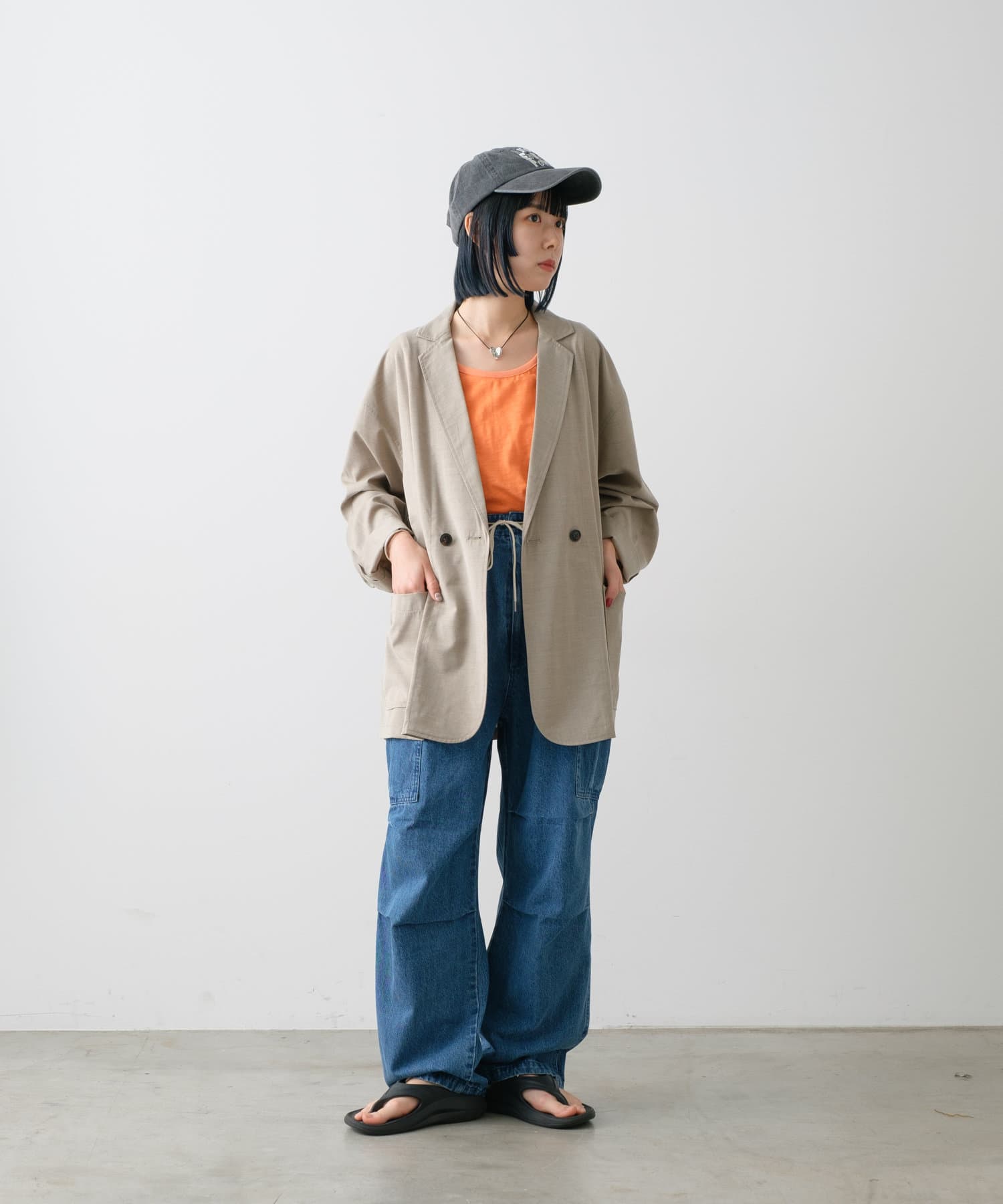 スピンドルでウエストを絞ることが可能なため、Tシャツやシャツのインスタイル、アウトスタイルどちらもしやすく、キレイ目なスタイリングからカジュアルなスタイリングまで幅広く楽しめます。