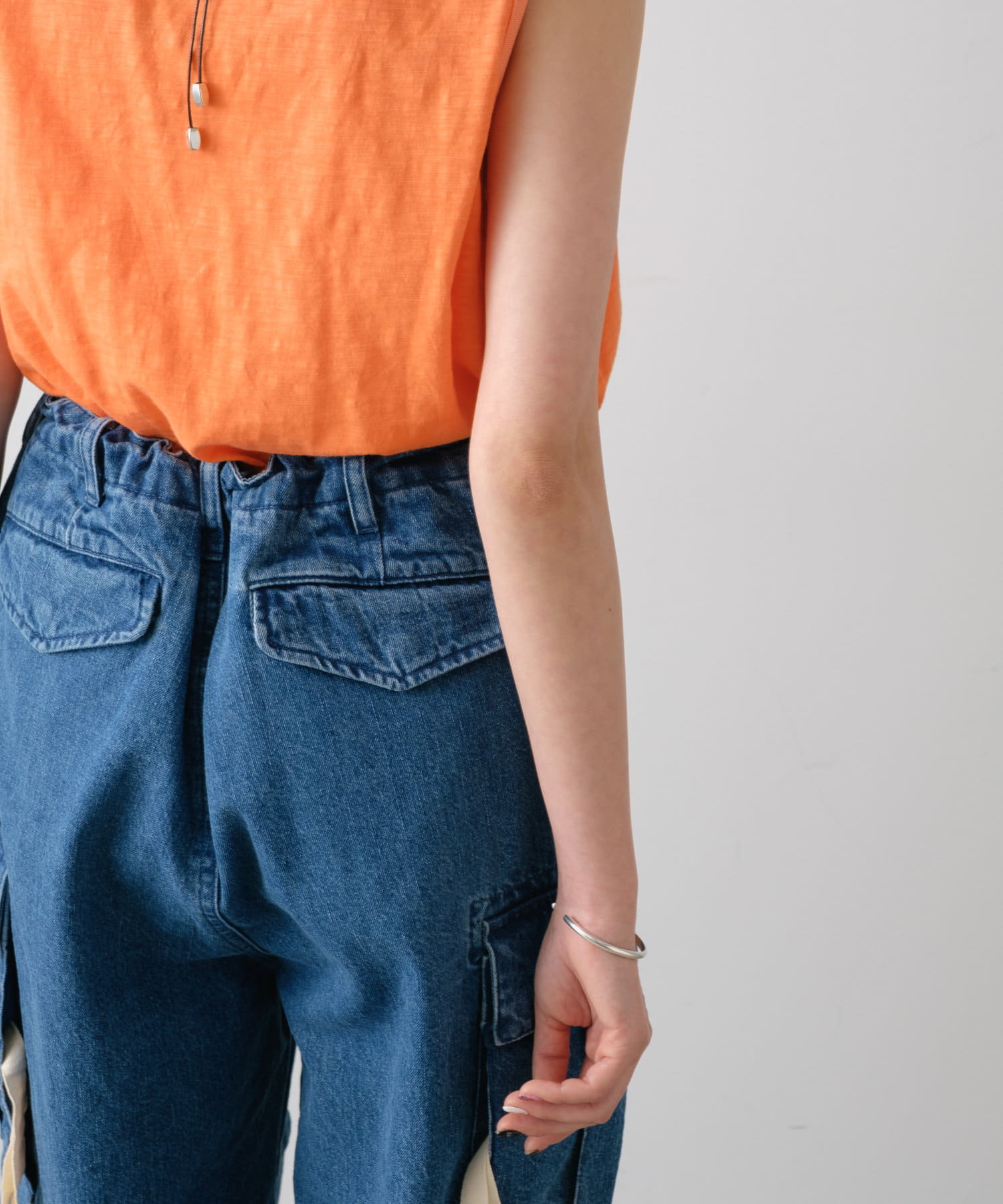 デザインはそのままにデニムを使用することでトレンド感のあるカーゴパンツにアップデート。