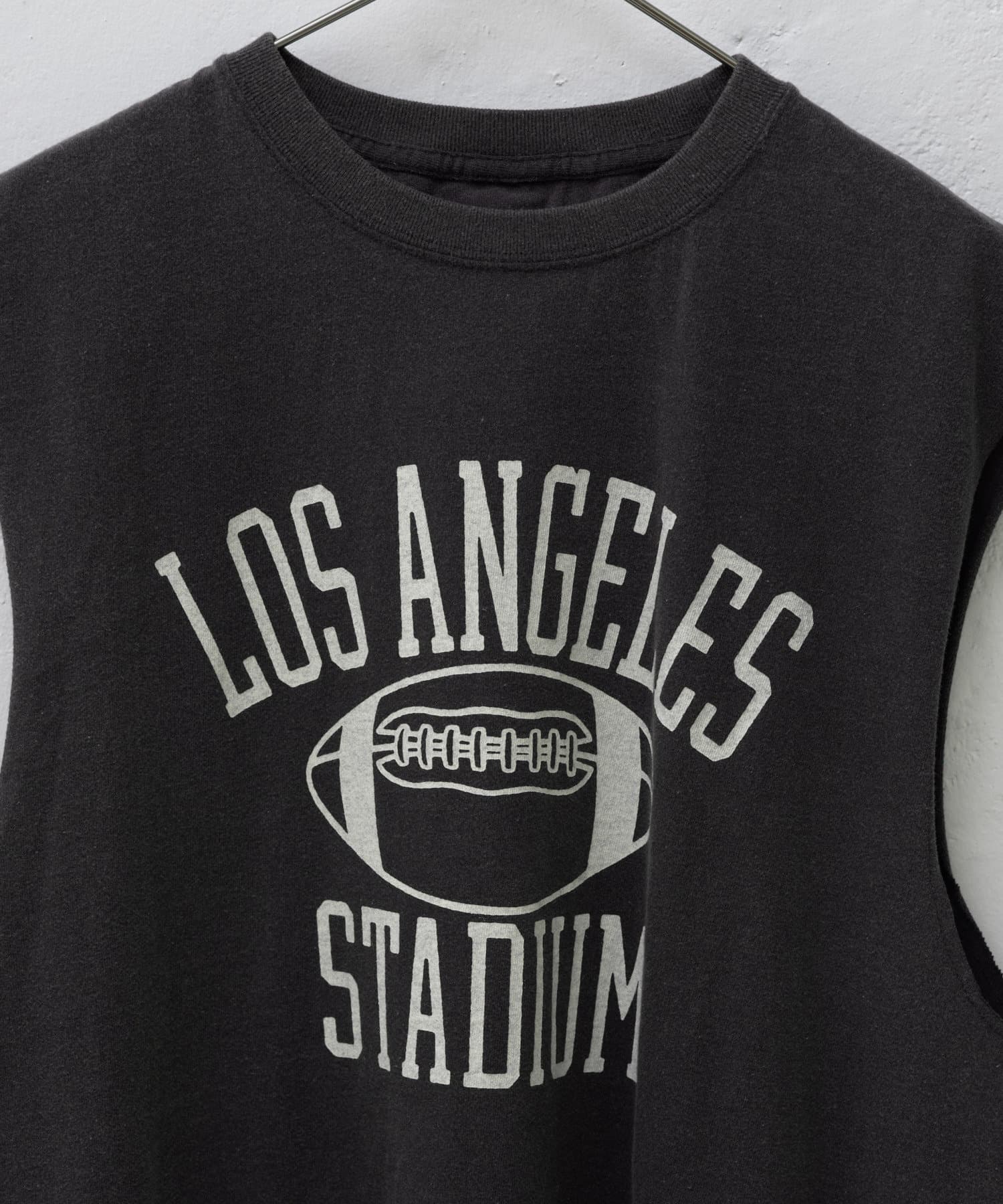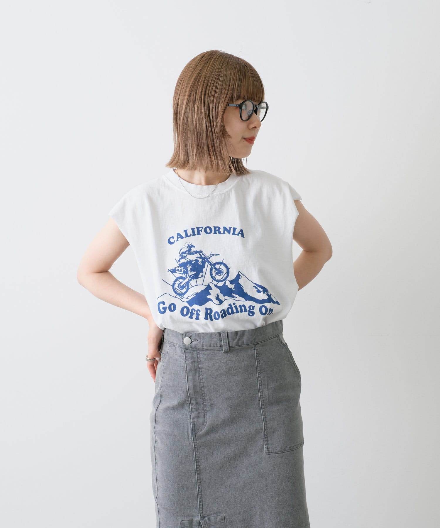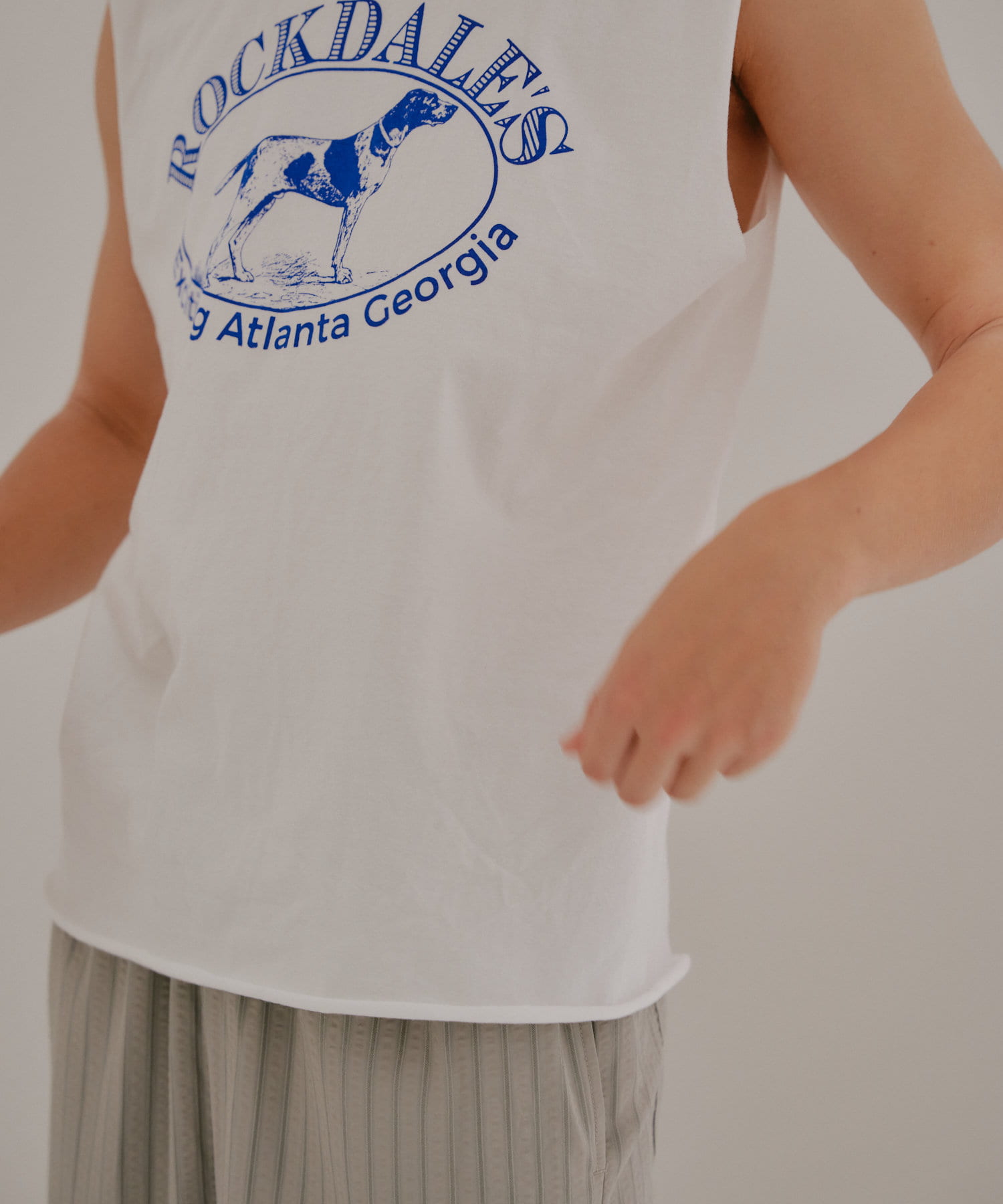 シルクスクリーンプリントを入れたノースリーブプリントTシャツです。