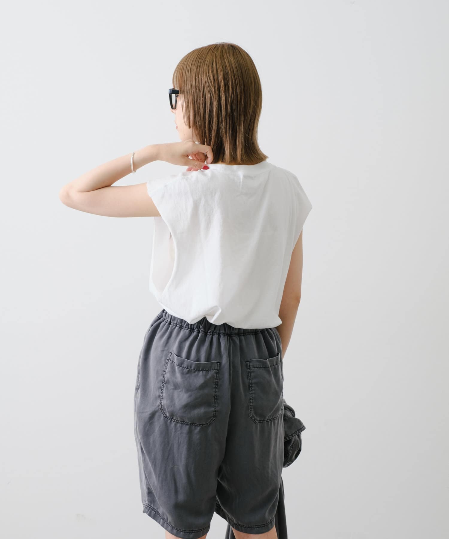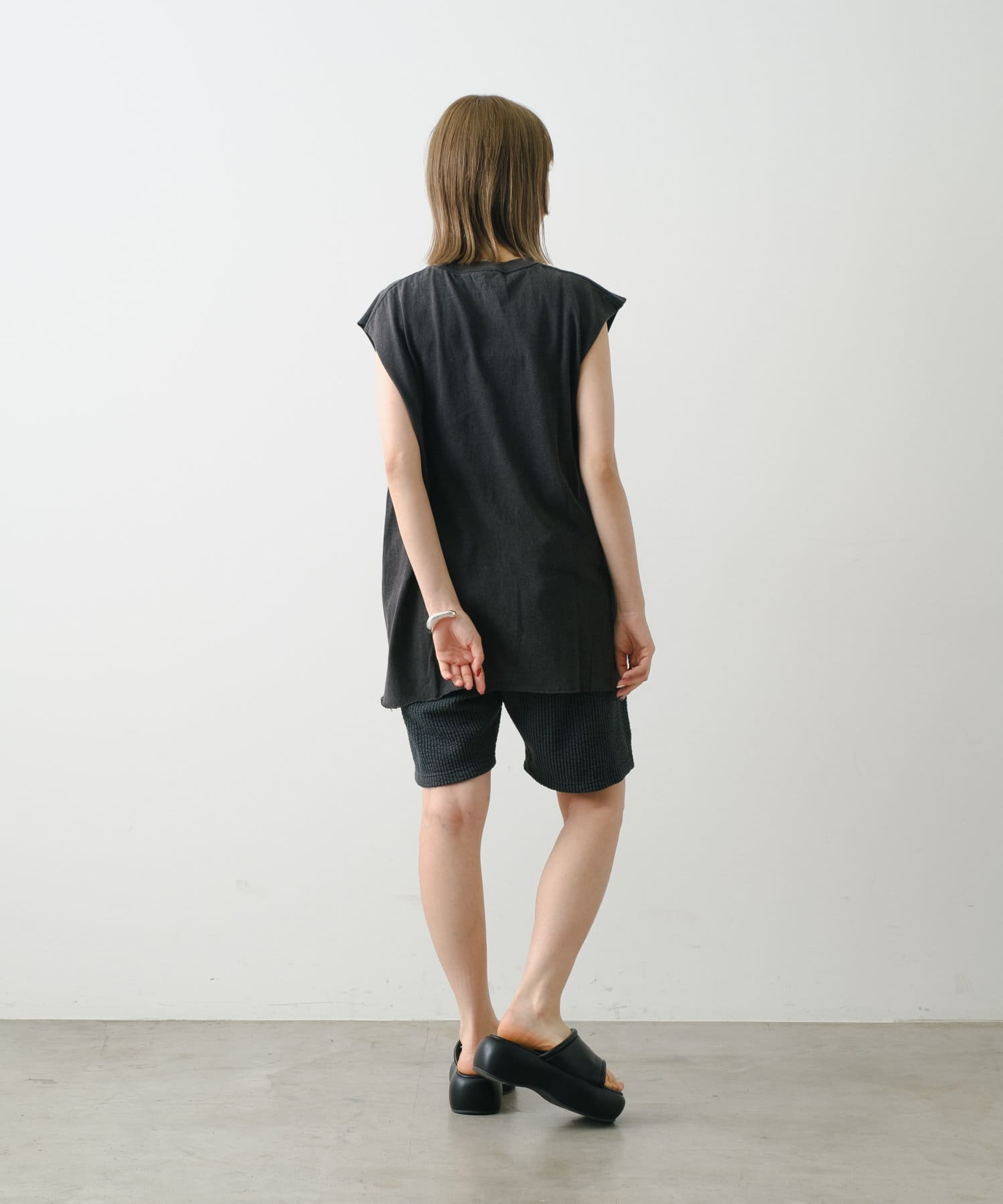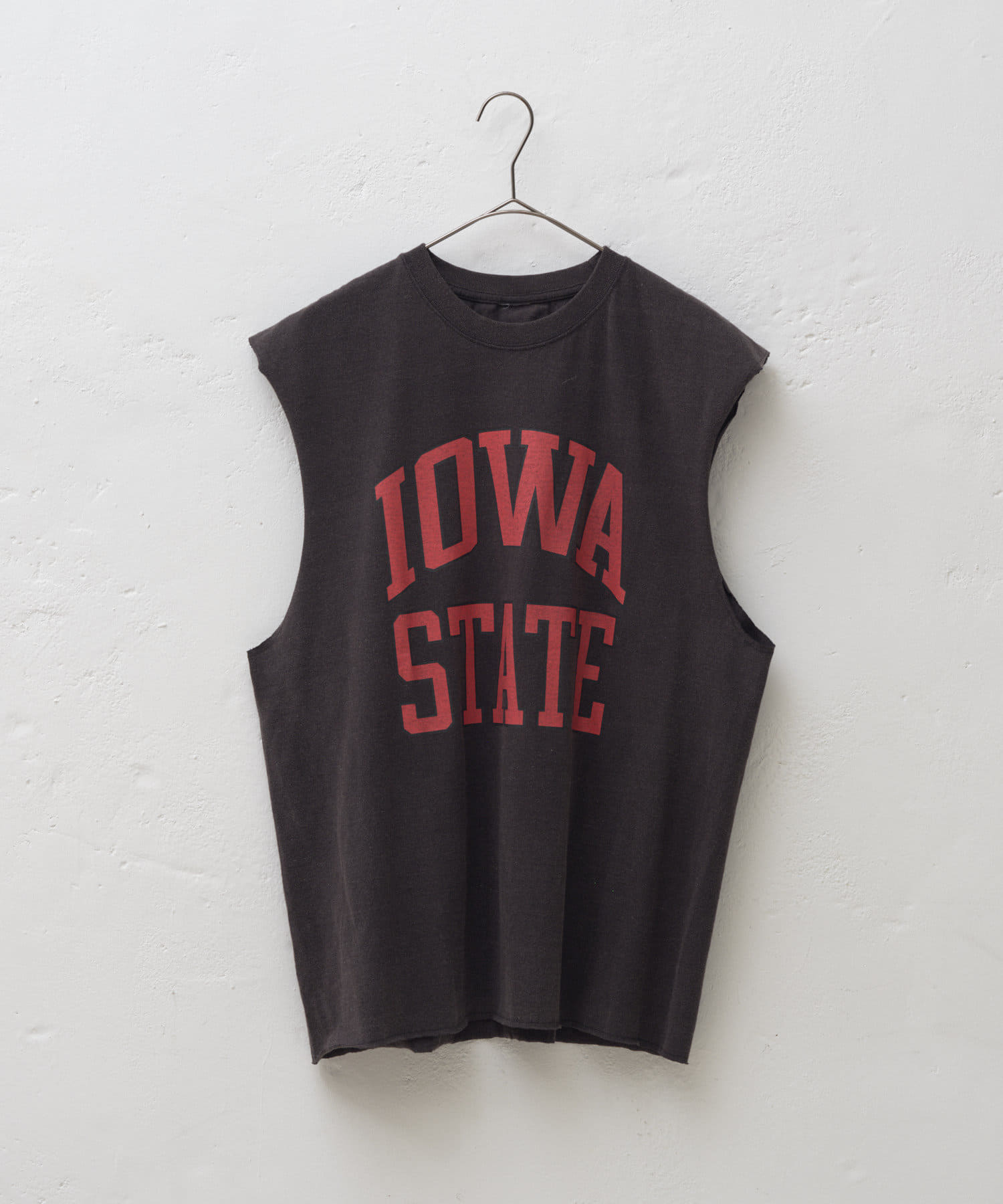 シルクスクリーンプリントを入れたノースリーブプリントTシャツです。
