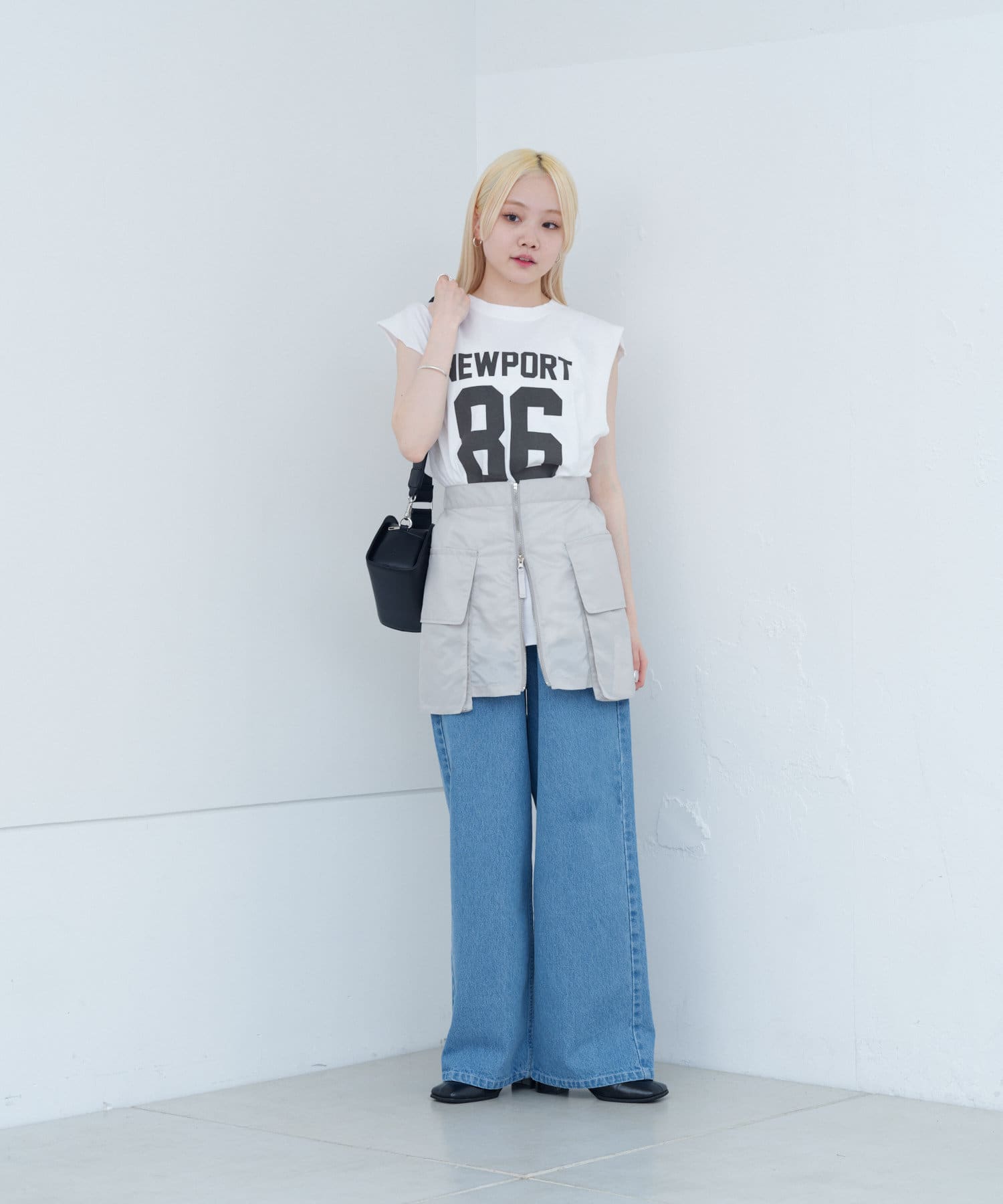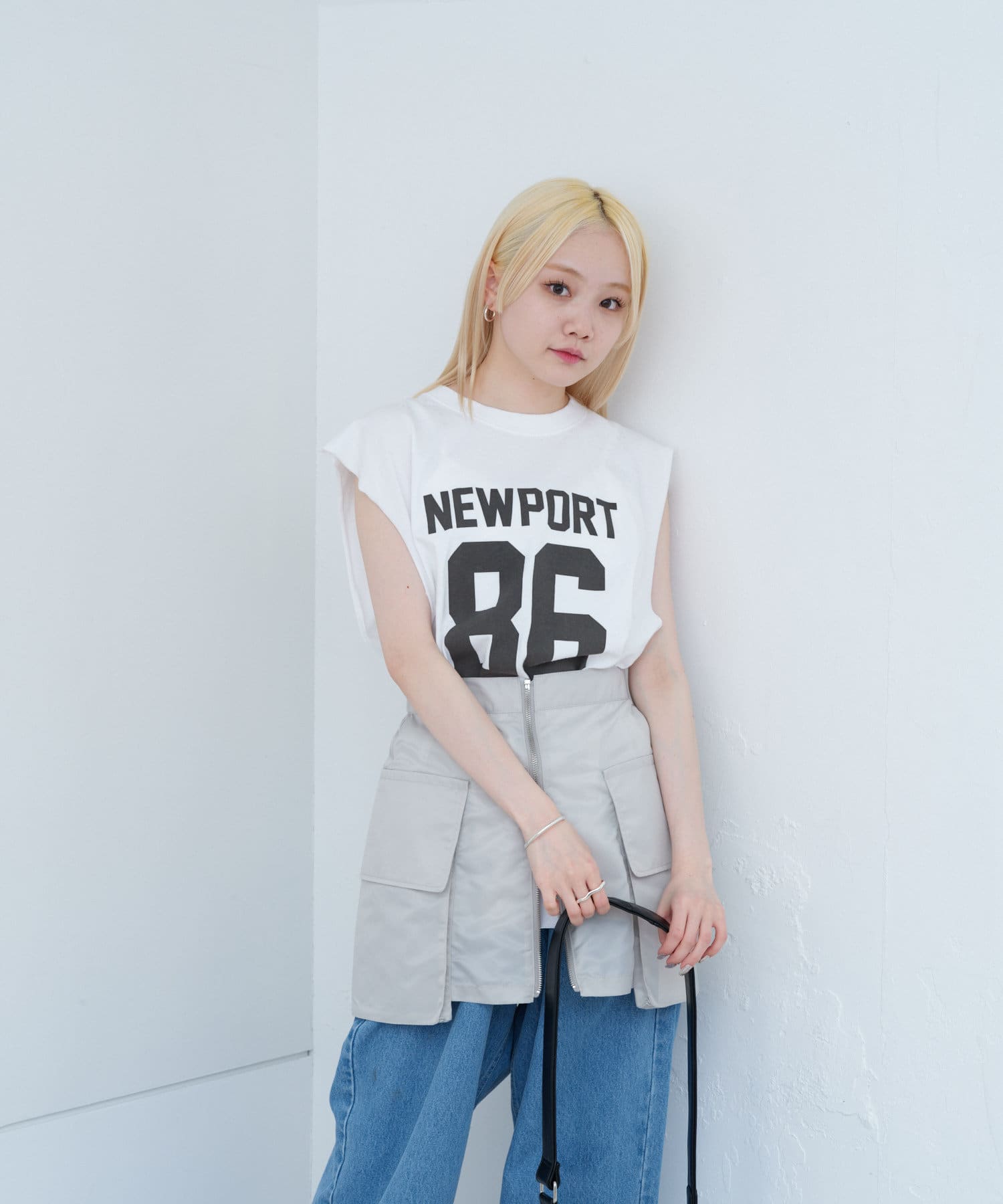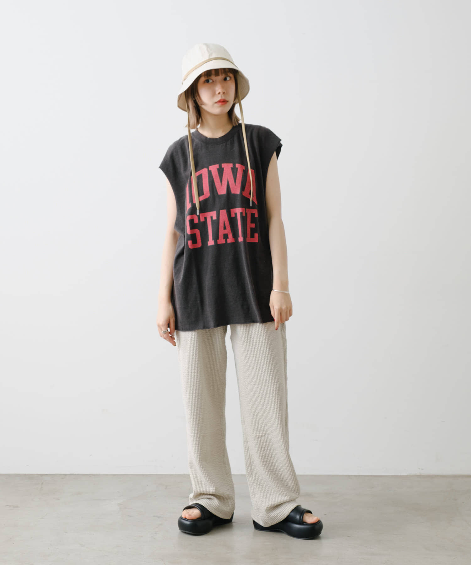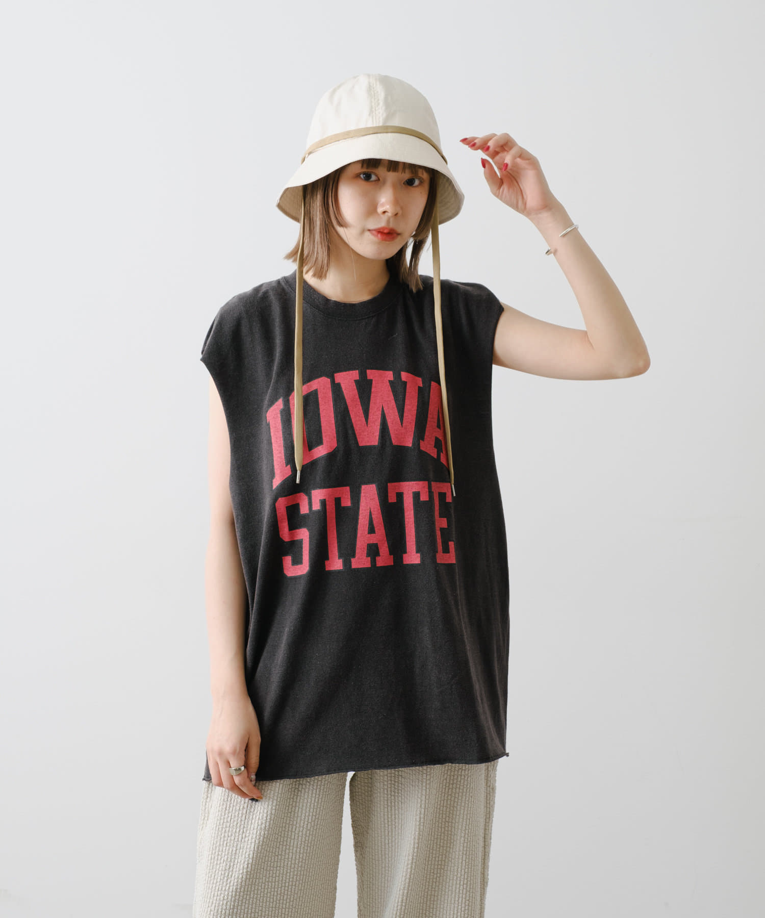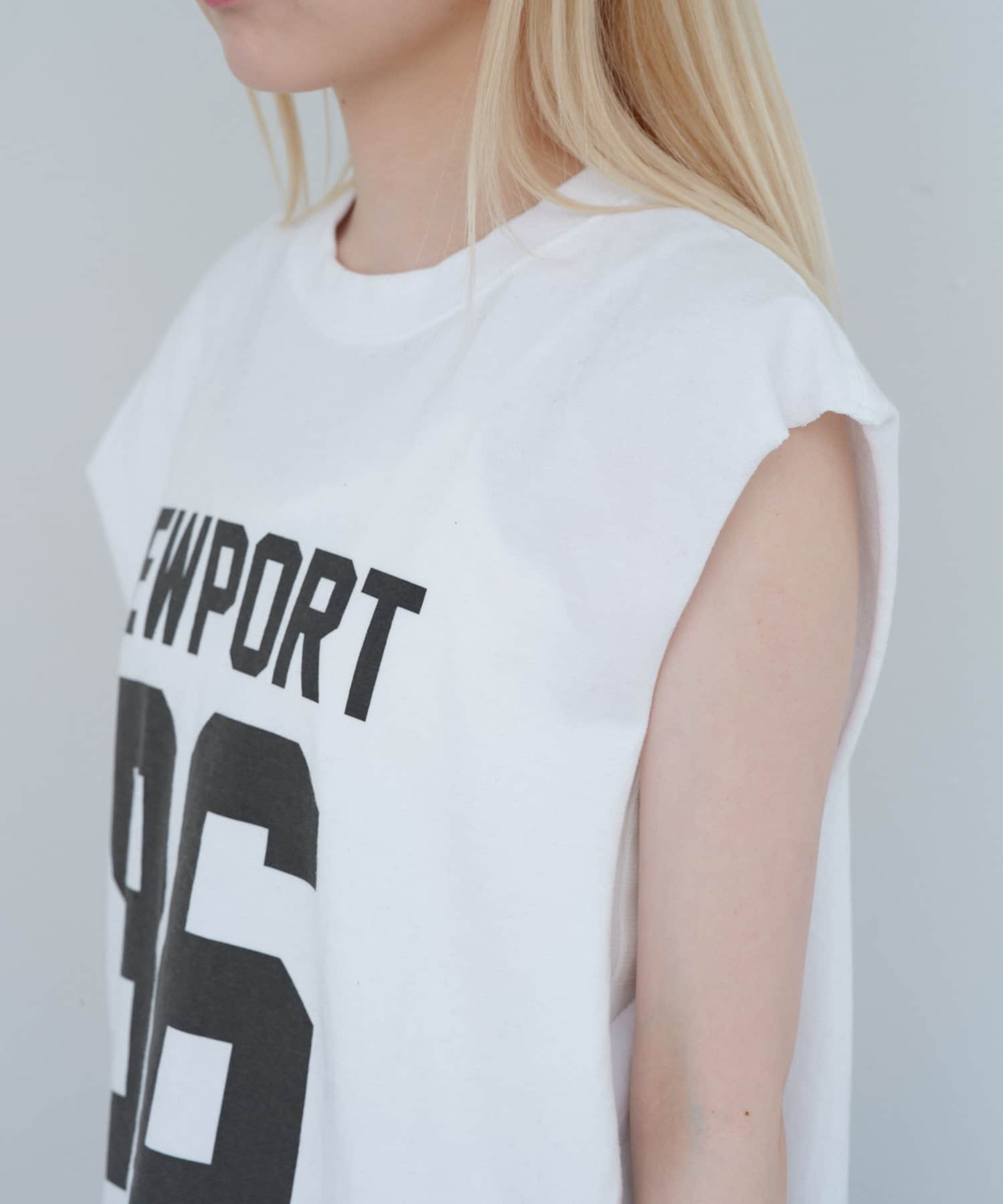 【WHIMSIC/新色追加】ロゴプリントスリーブレスTシャツ