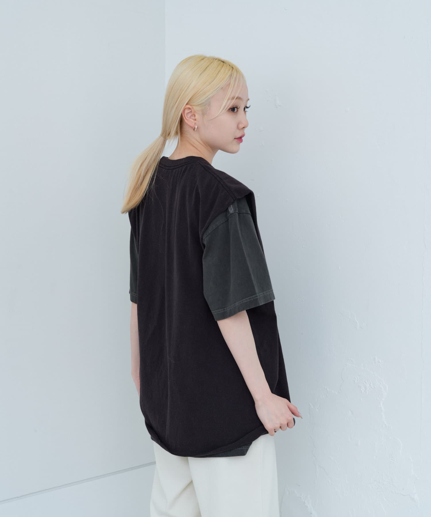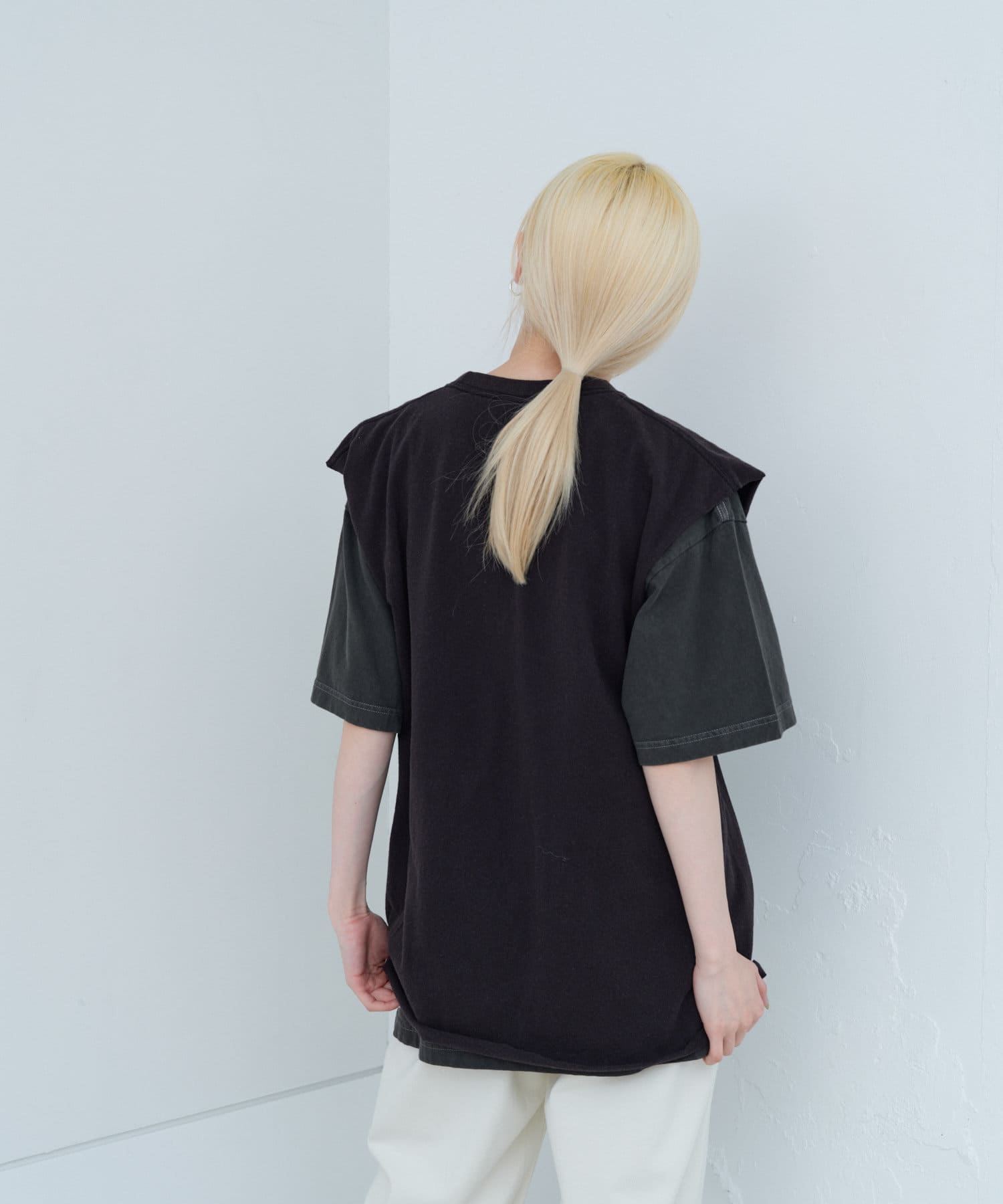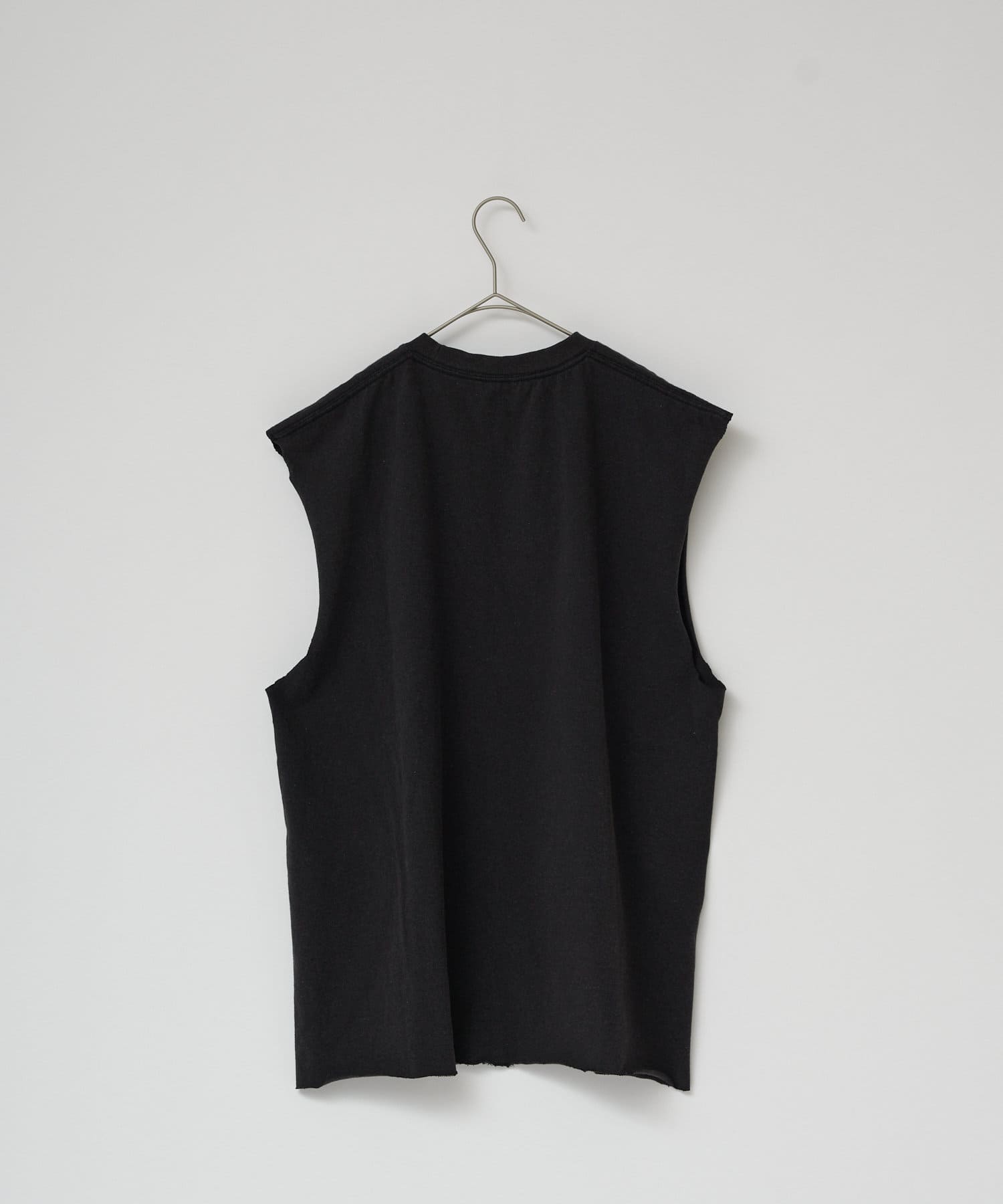 5.6オンスヘビーウェイトTシャツをベースに袖、裾をカットオフ後、