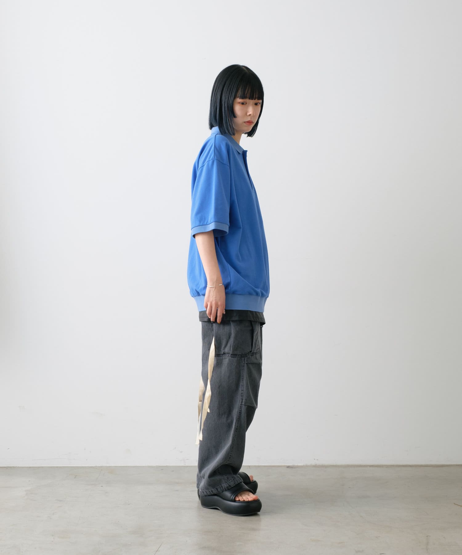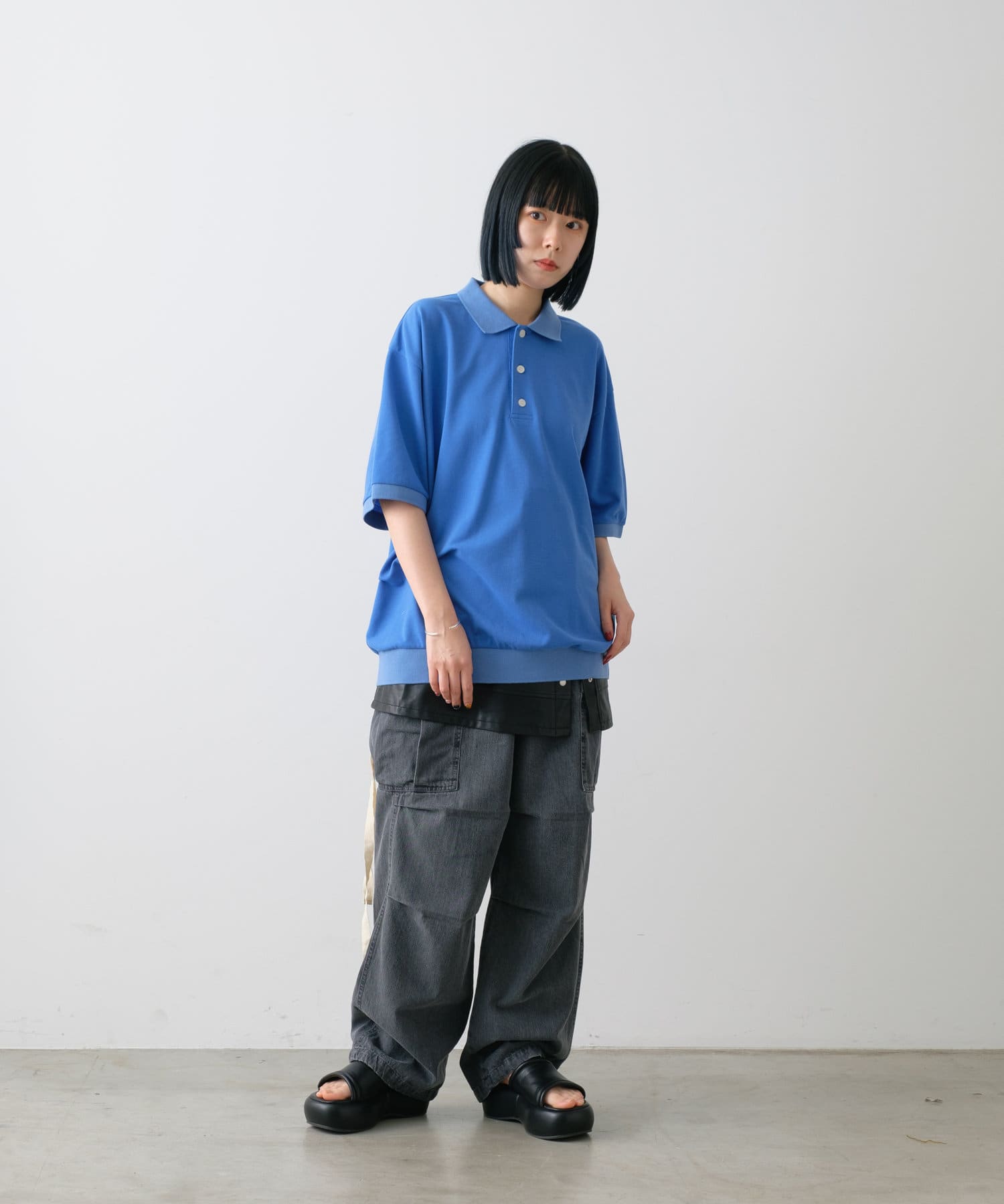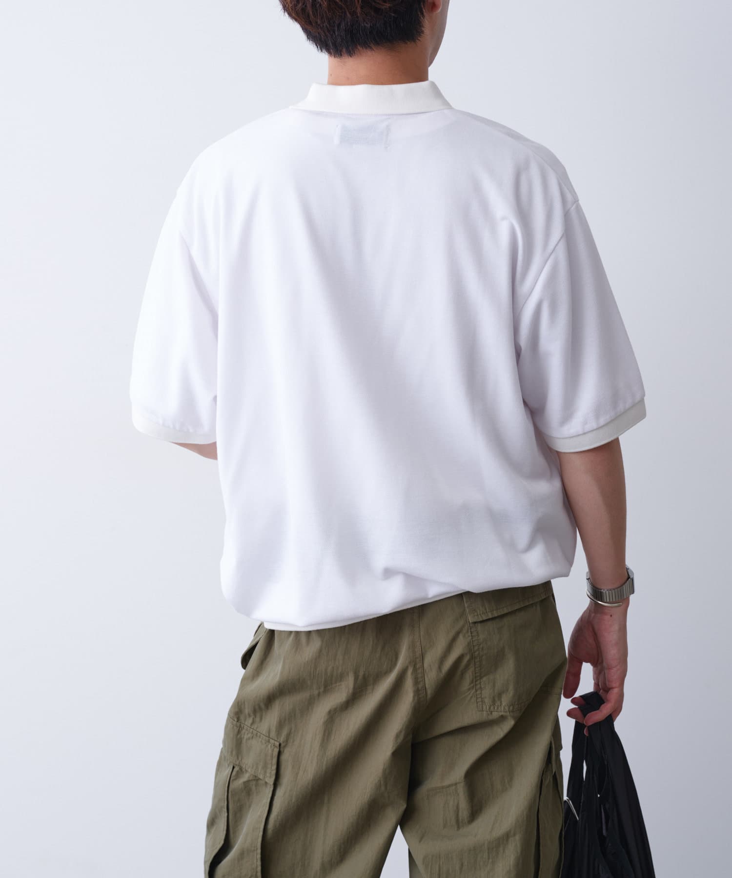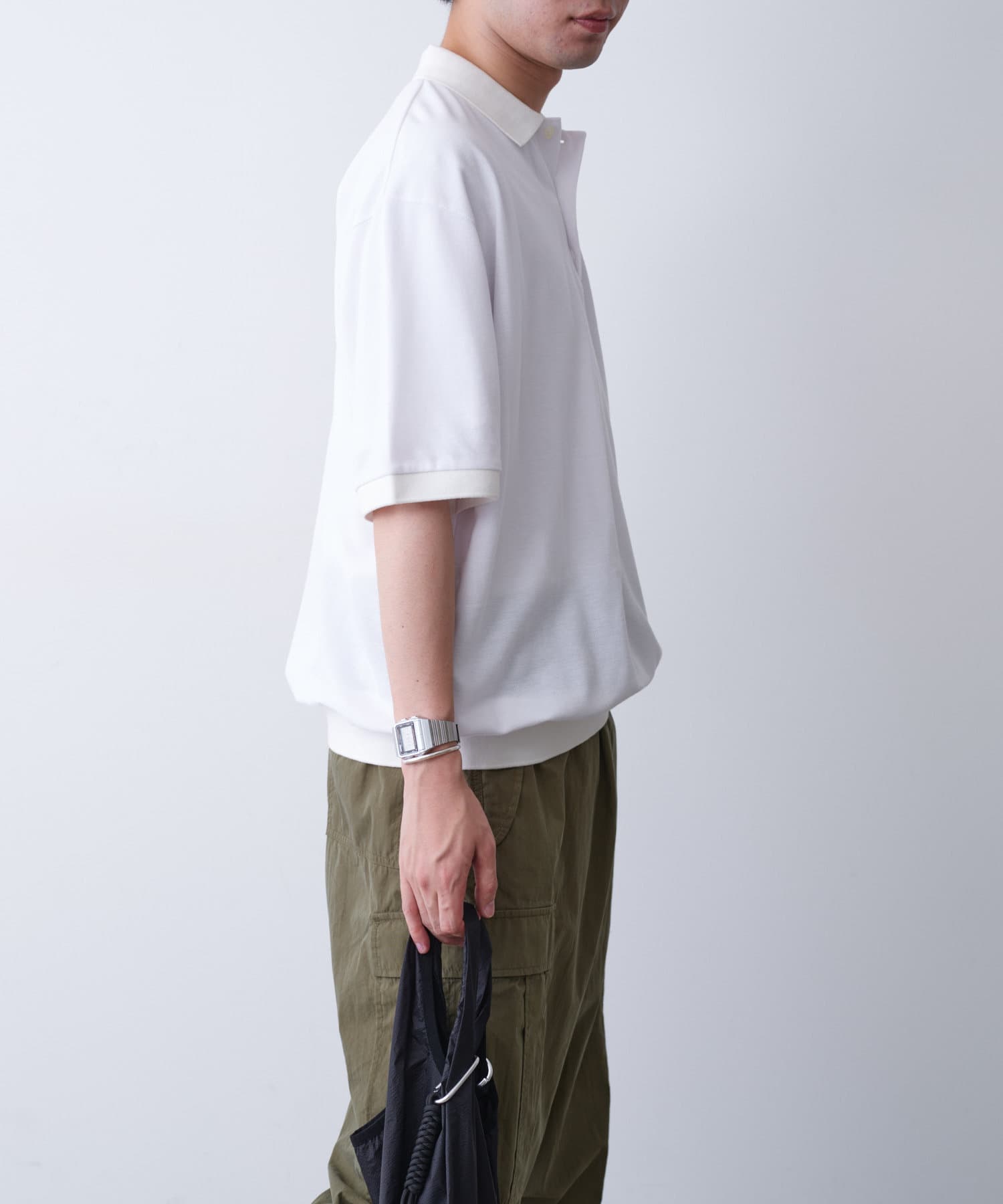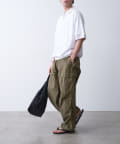 程よくゆとりを持たせたサイズ感でボトムとのバランスも取り易く、カーゴパンツやデニム、キレイ目なスラックスパンツまで幅広いボトムスと合わせやすく、着回し力があるアイテムです。