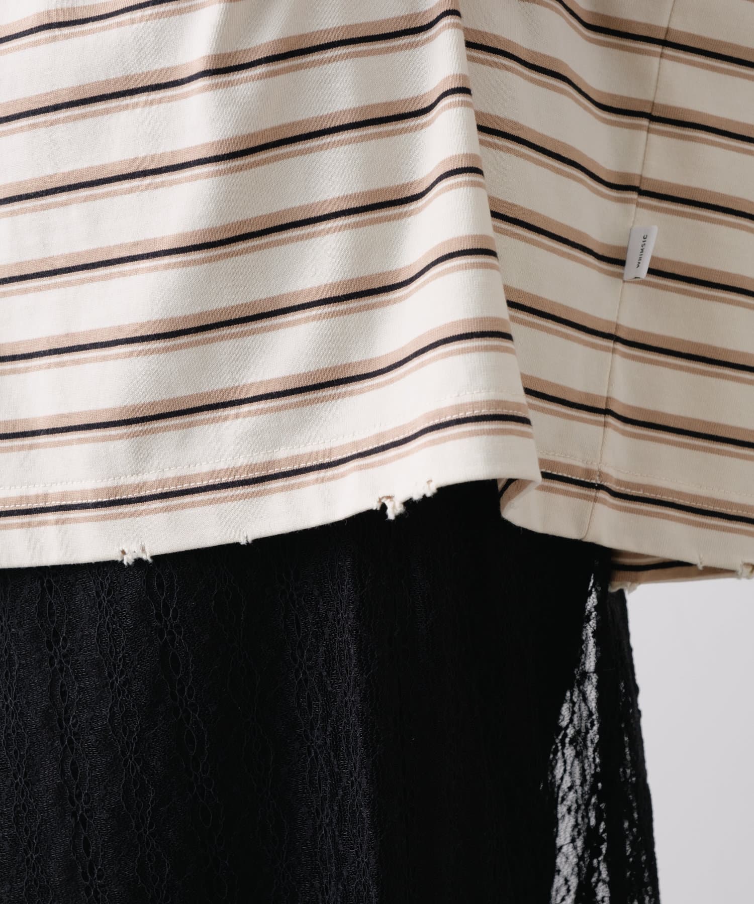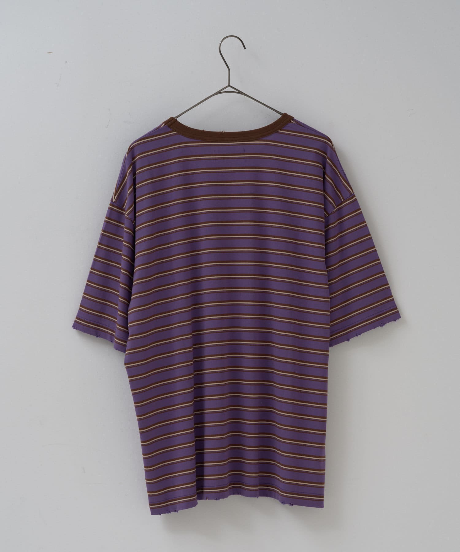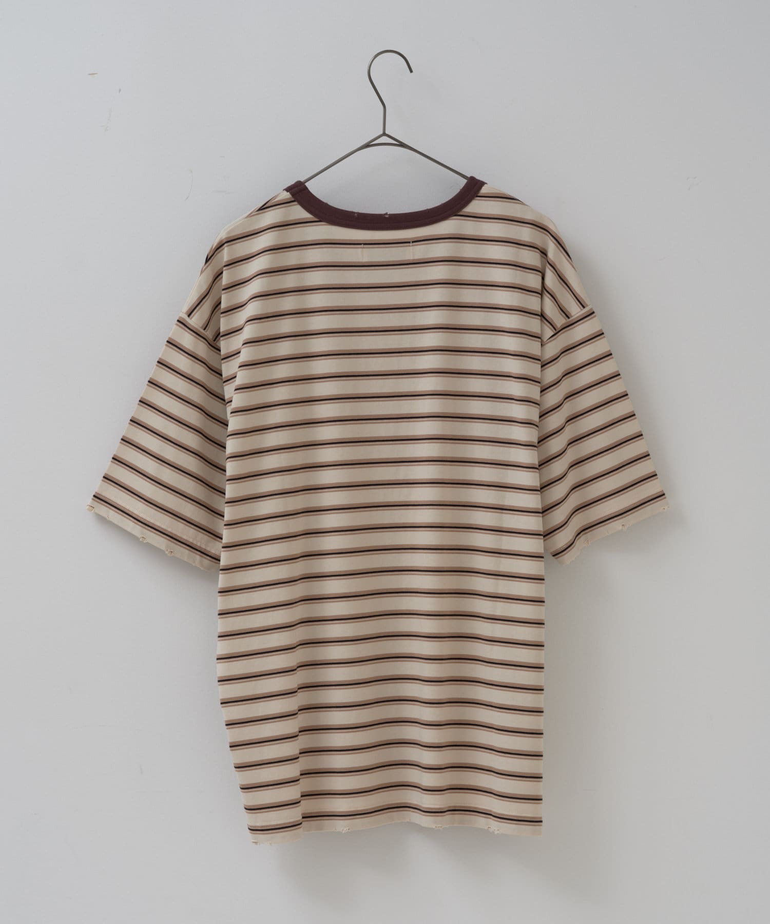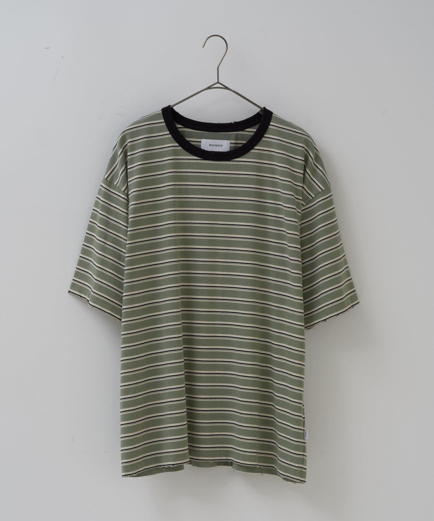 【WHIMSIC】ハンドプロセスドダメージボーダーTシャツ