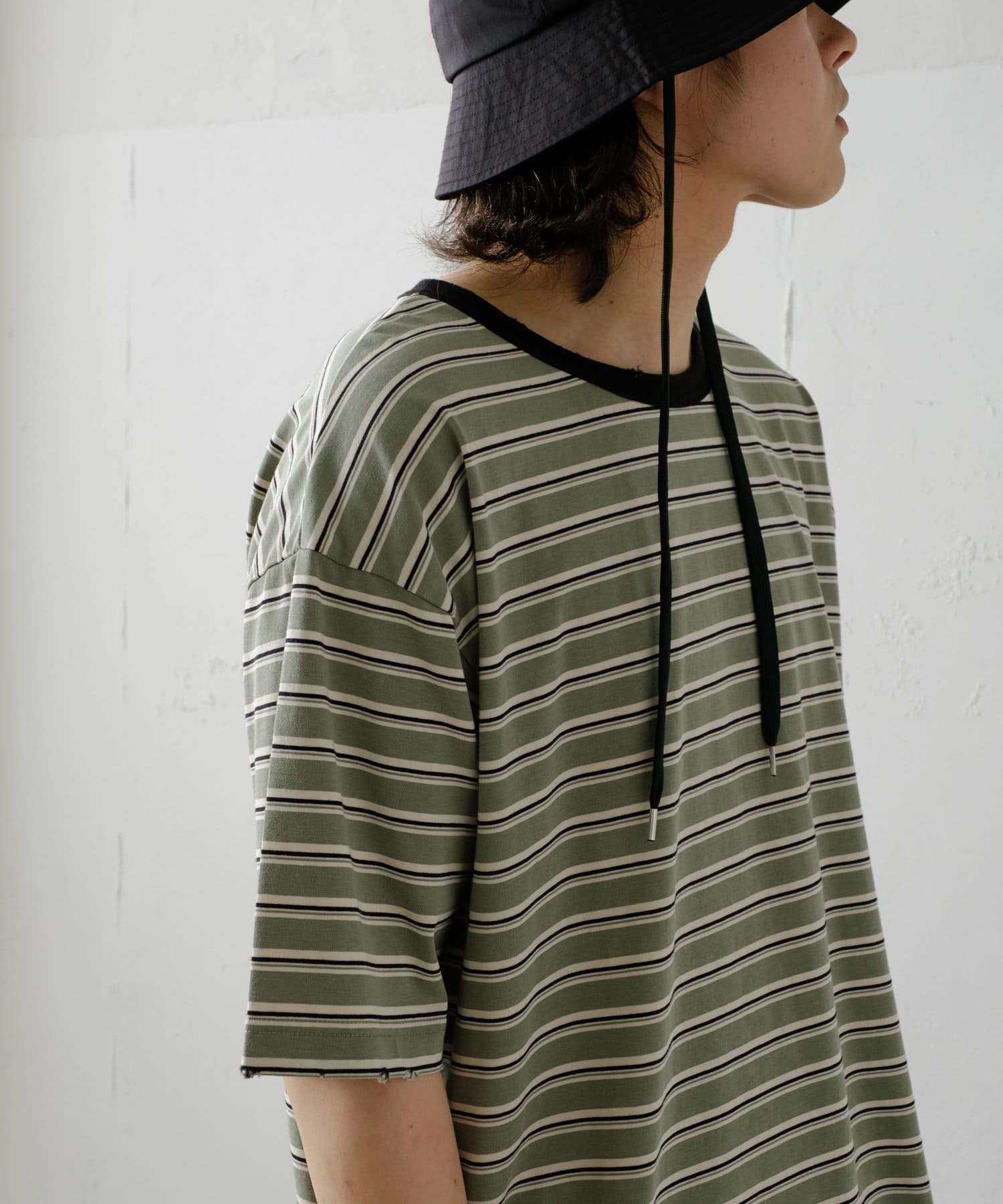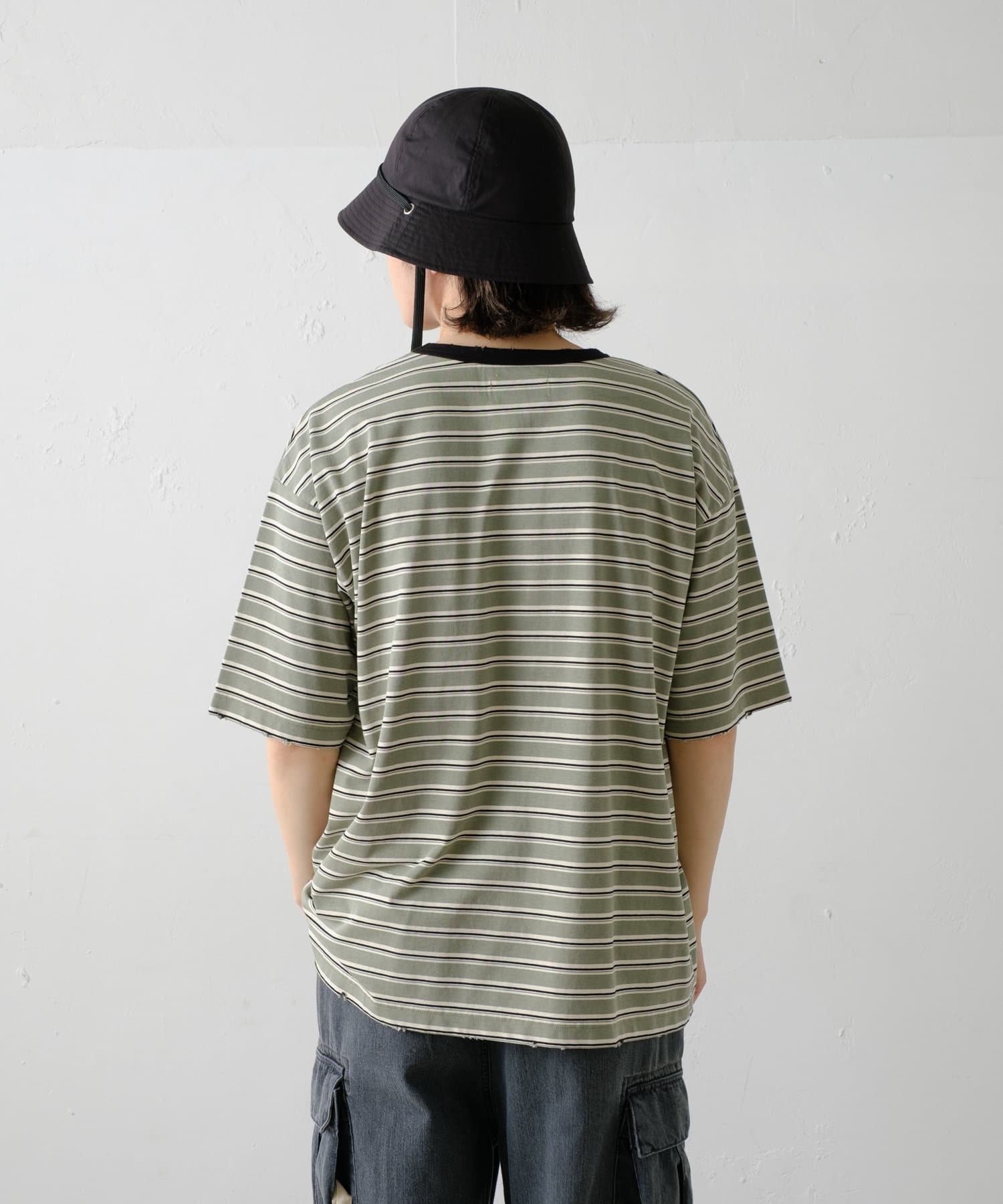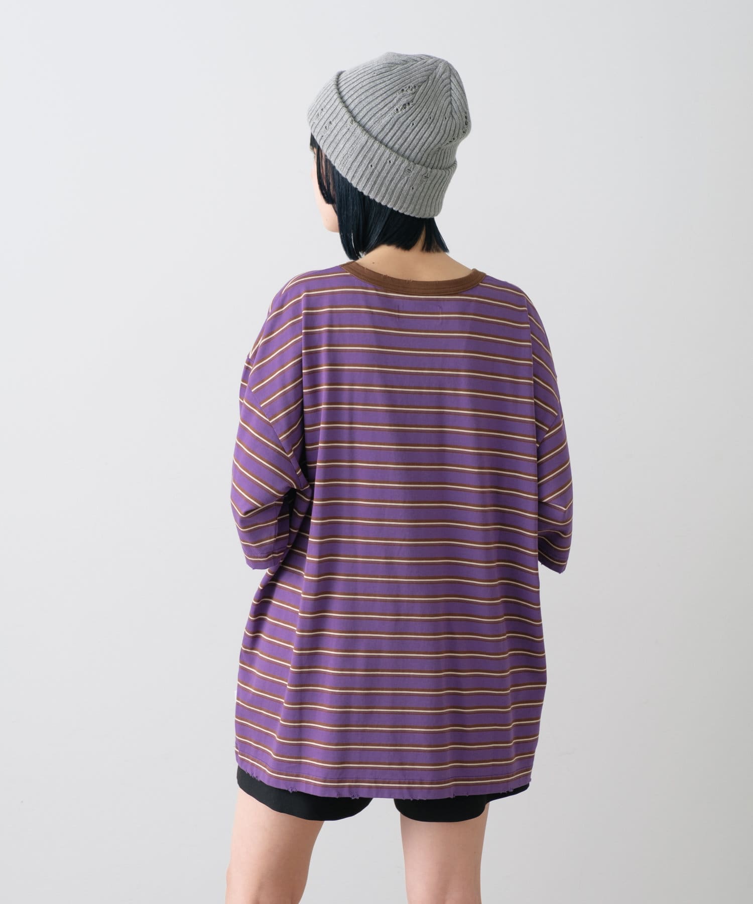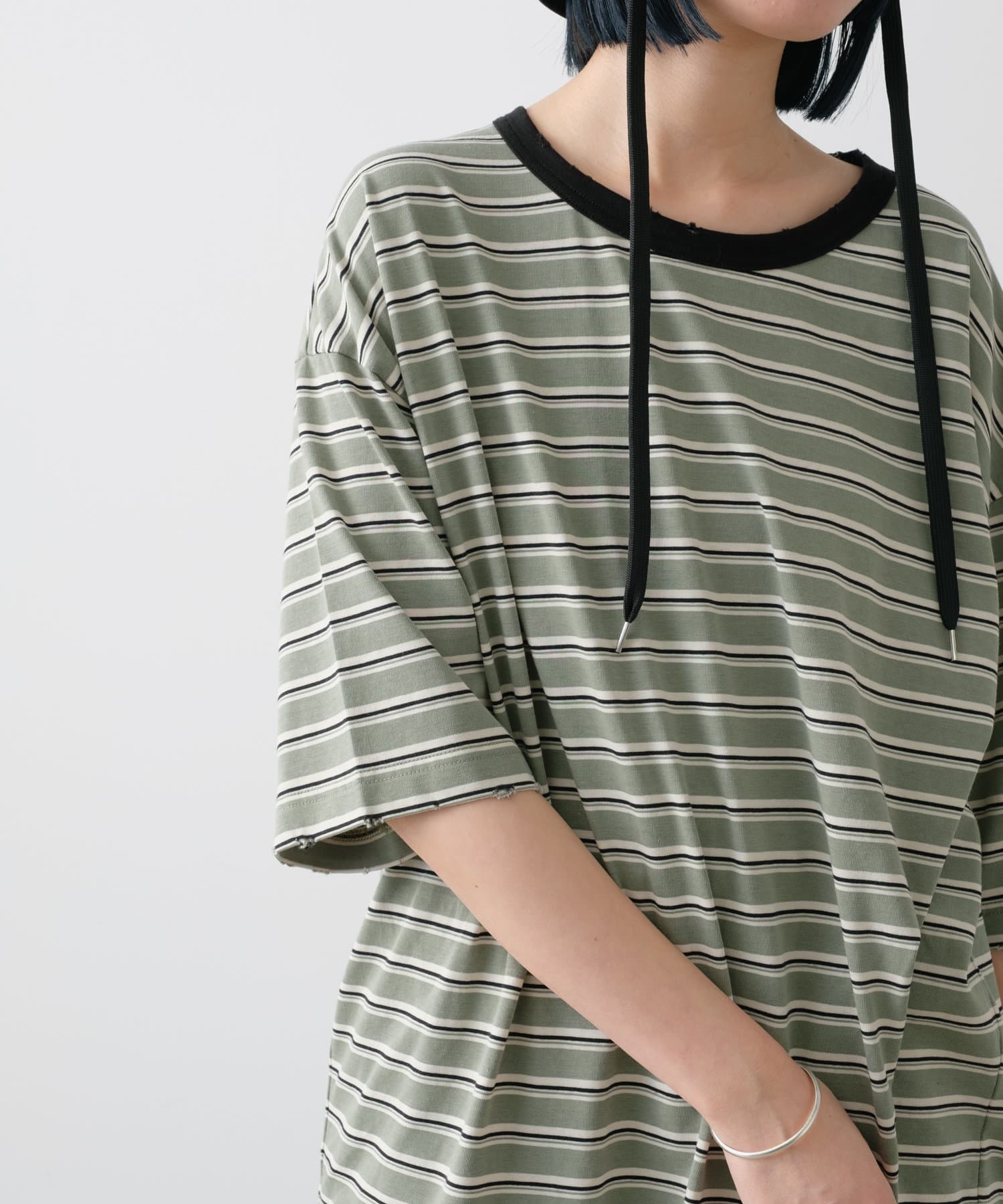 【WHIMSIC】ハンドプロセスドダメージボーダーTシャツ
