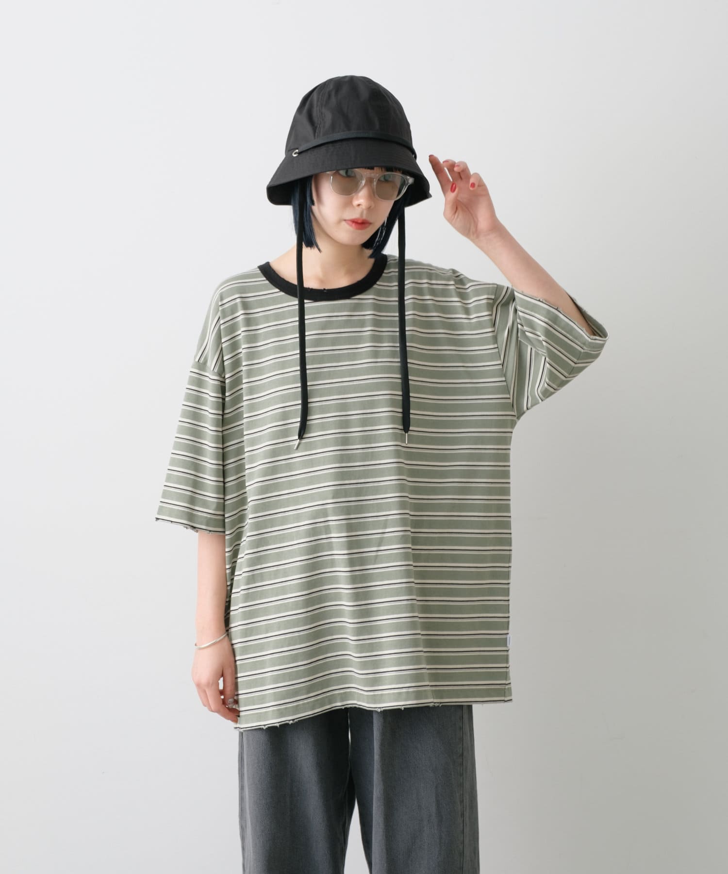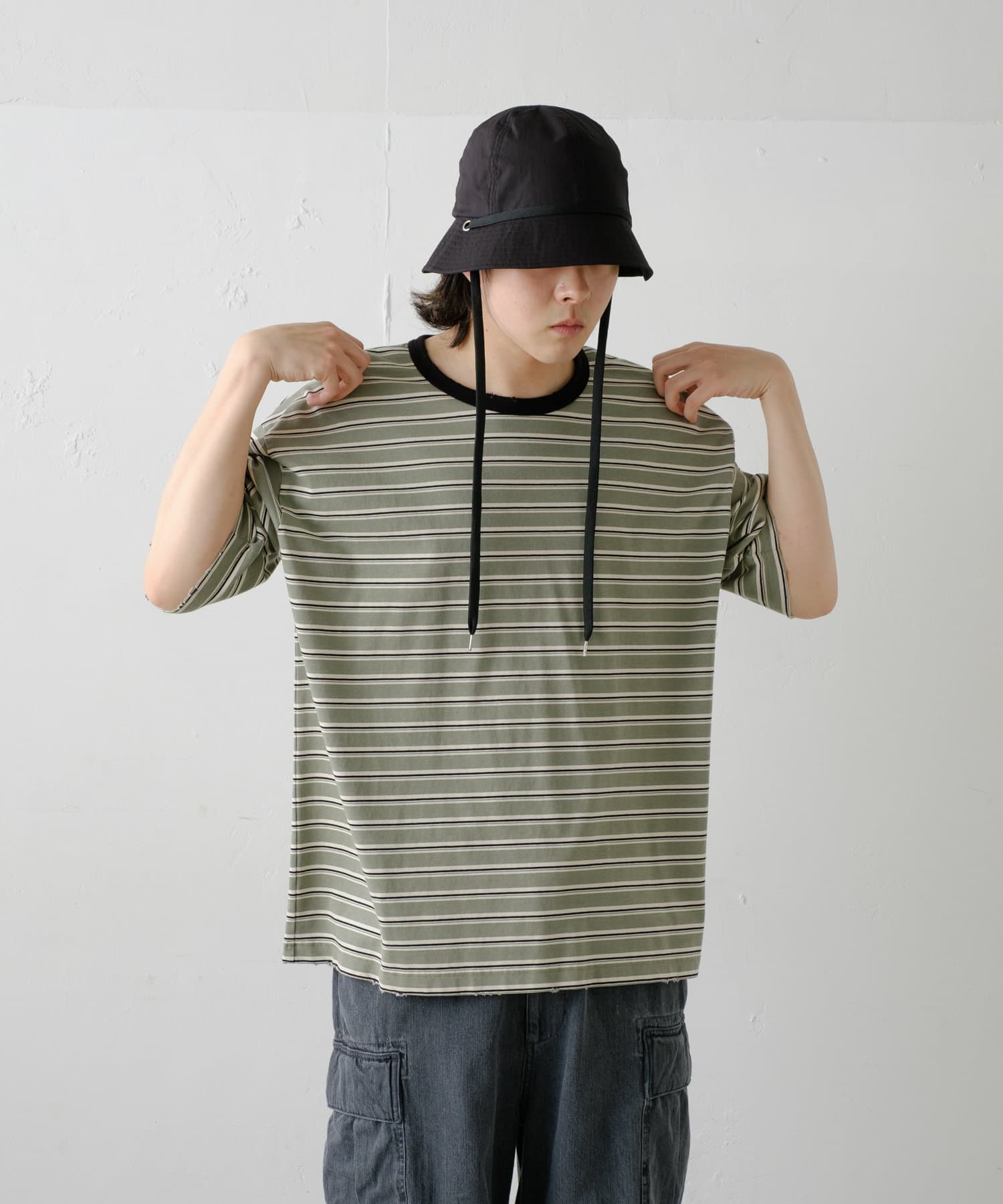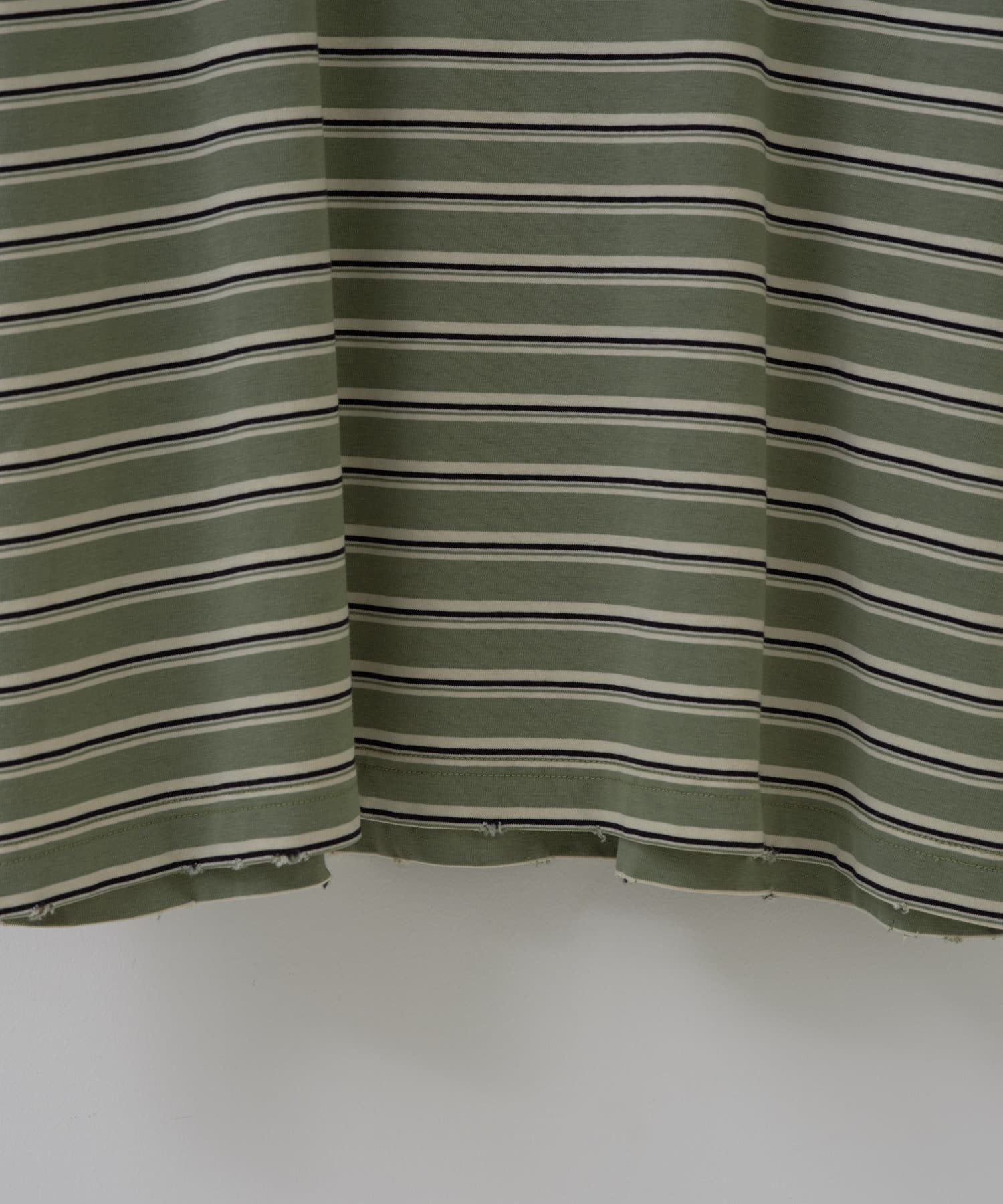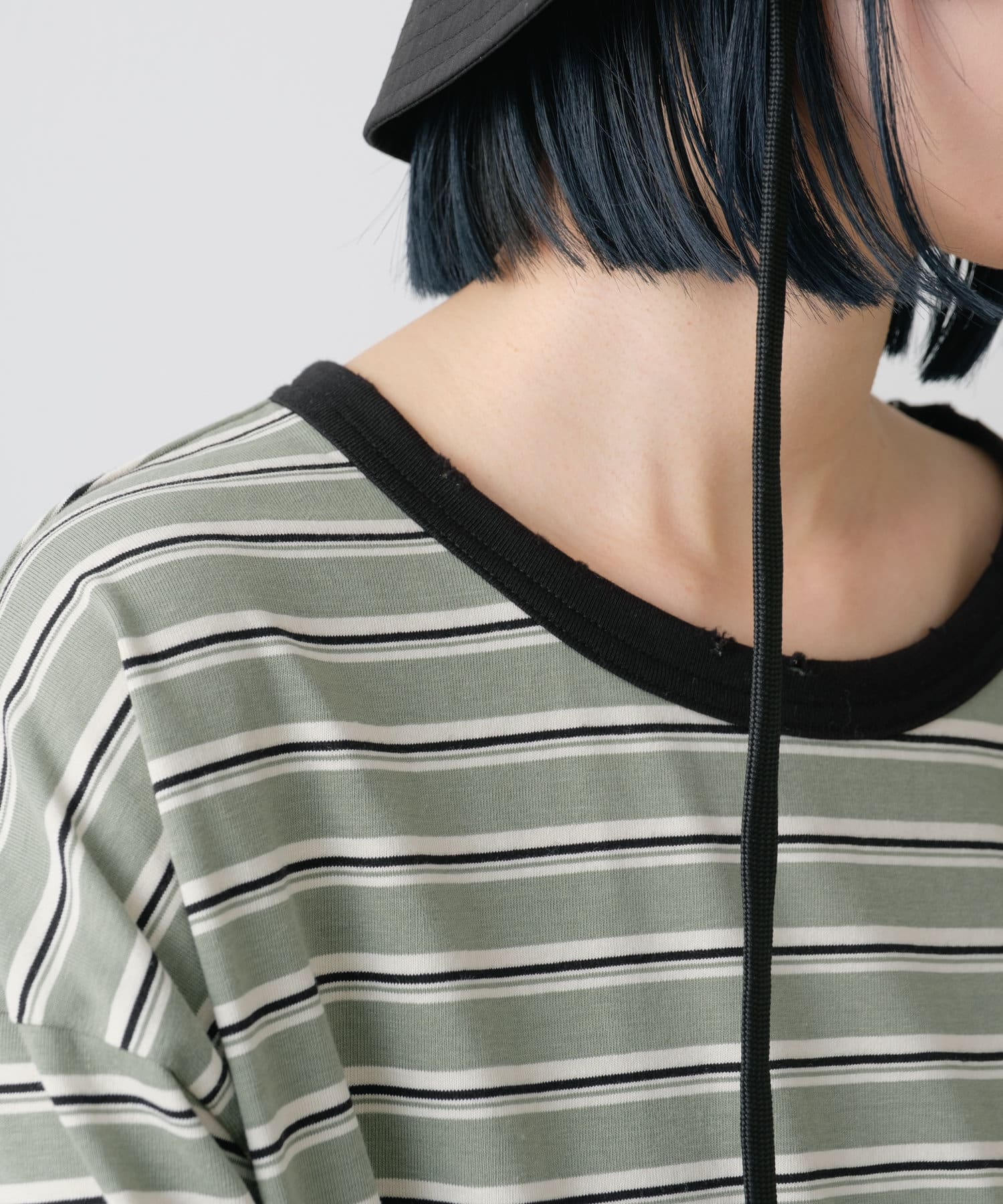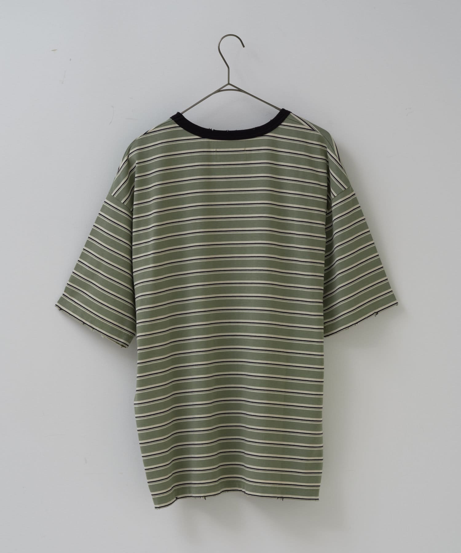 【WHIMSIC】ハンドプロセスドダメージボーダーTシャツ
