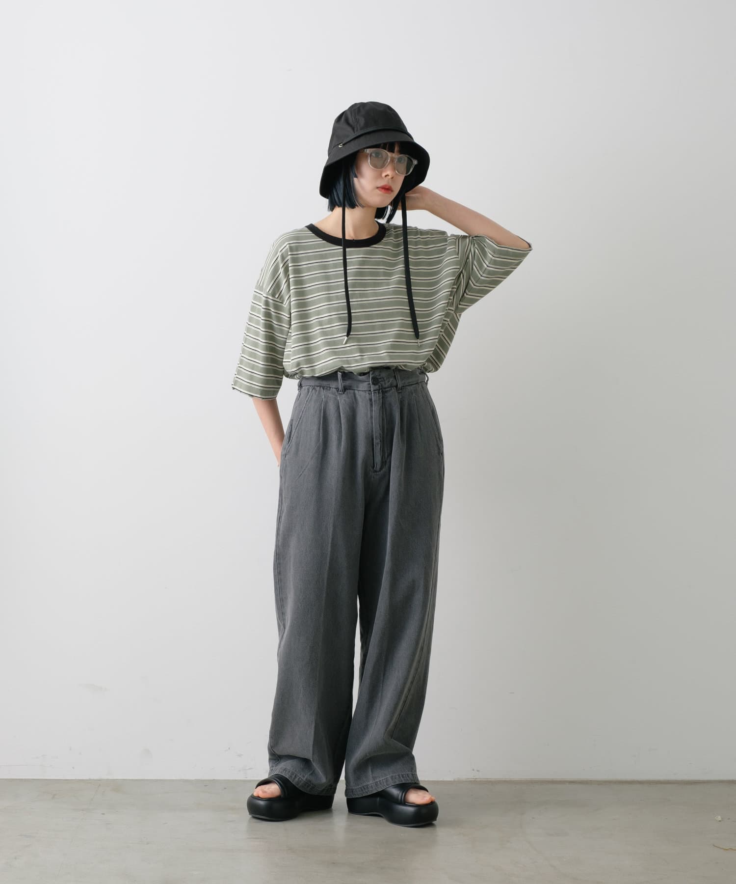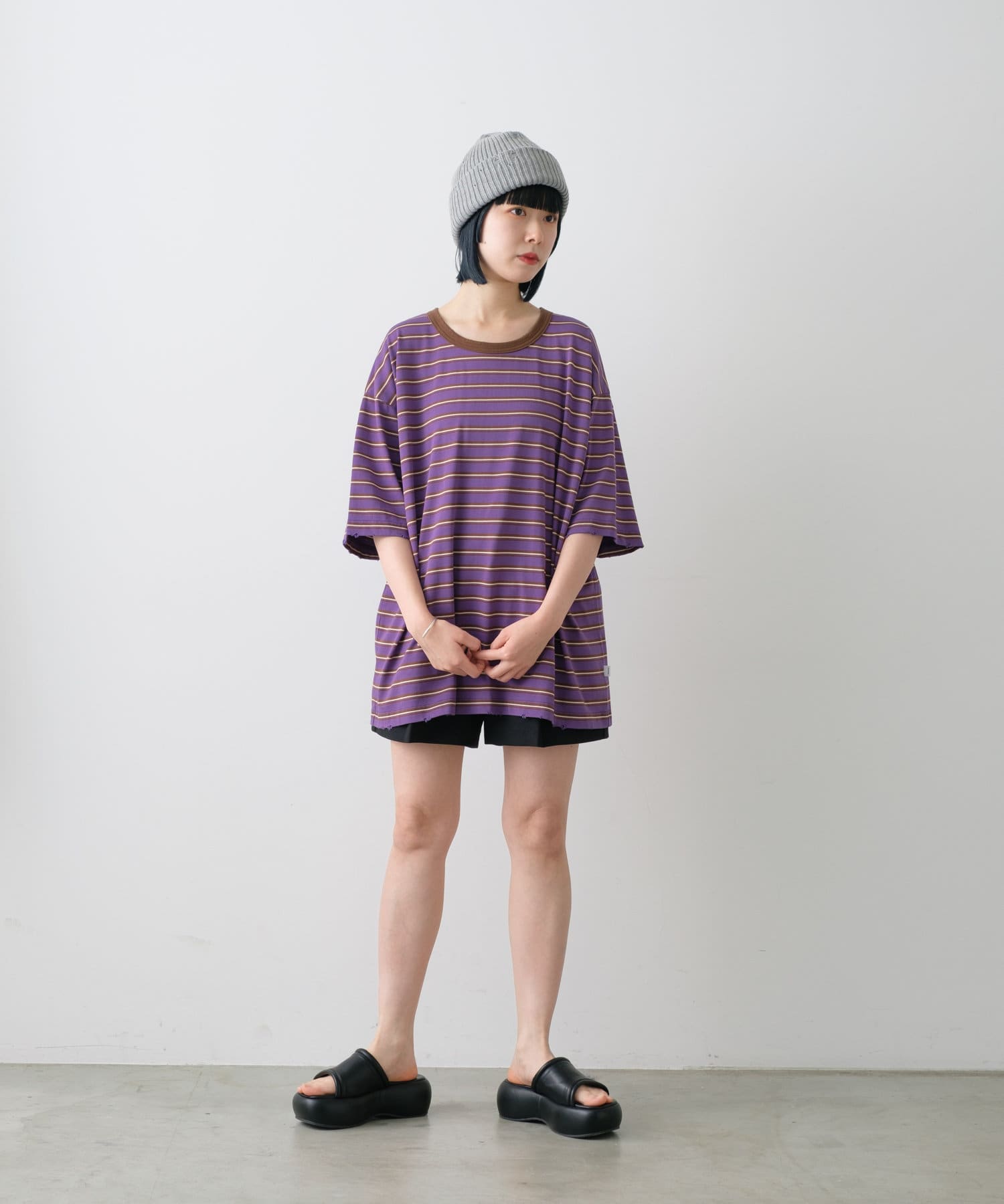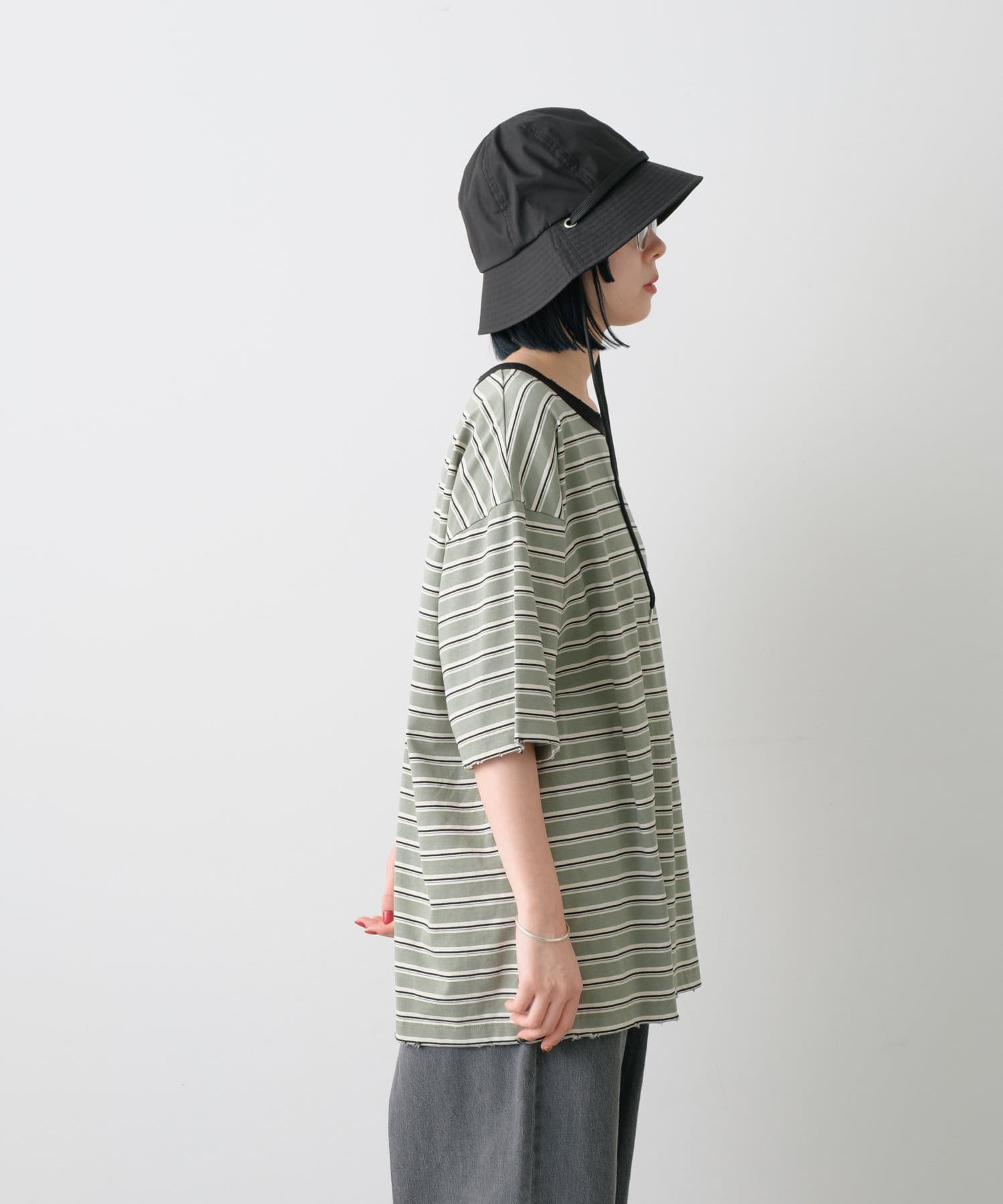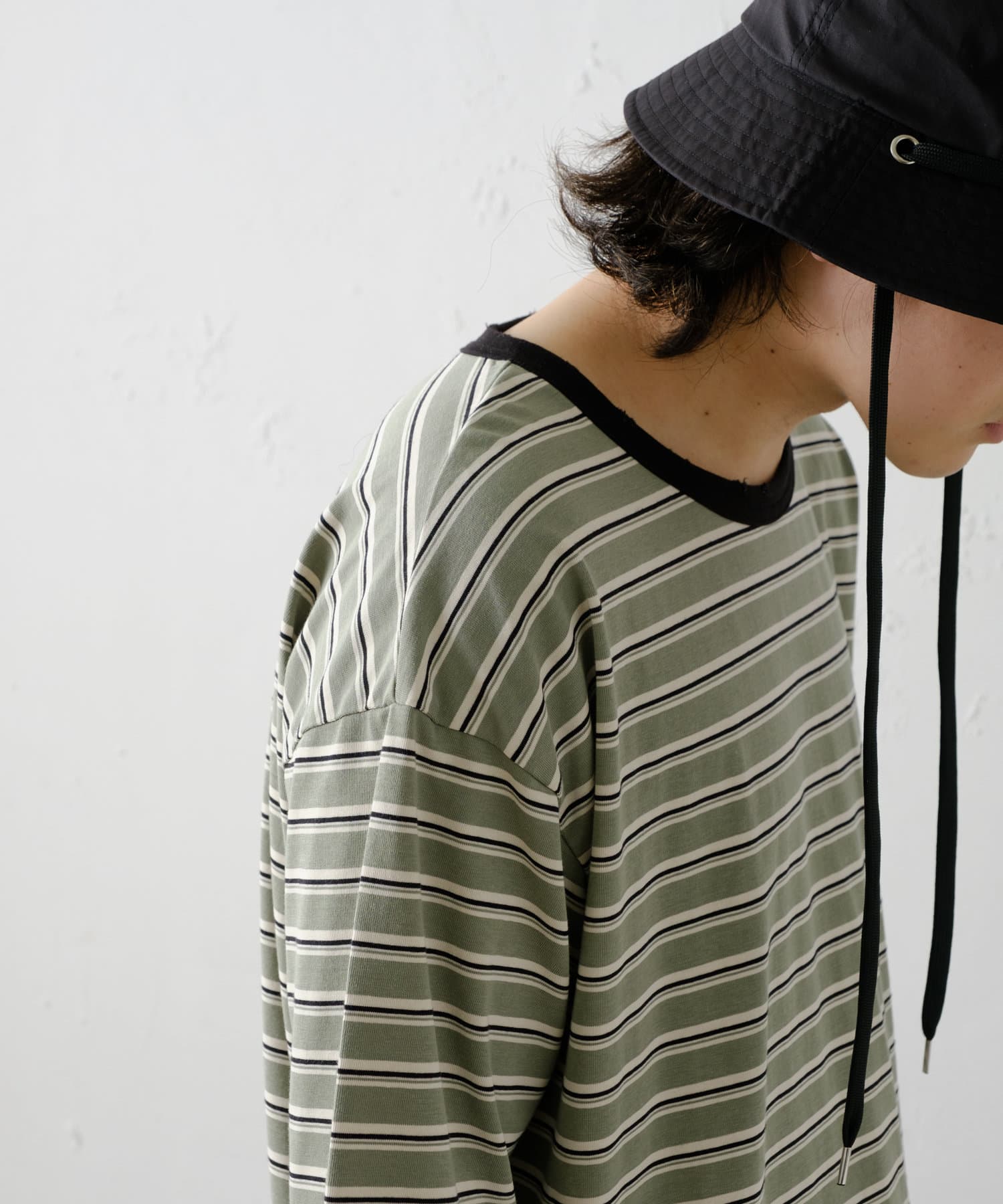 【WHIMSIC】ハンドプロセスドダメージボーダーTシャツ