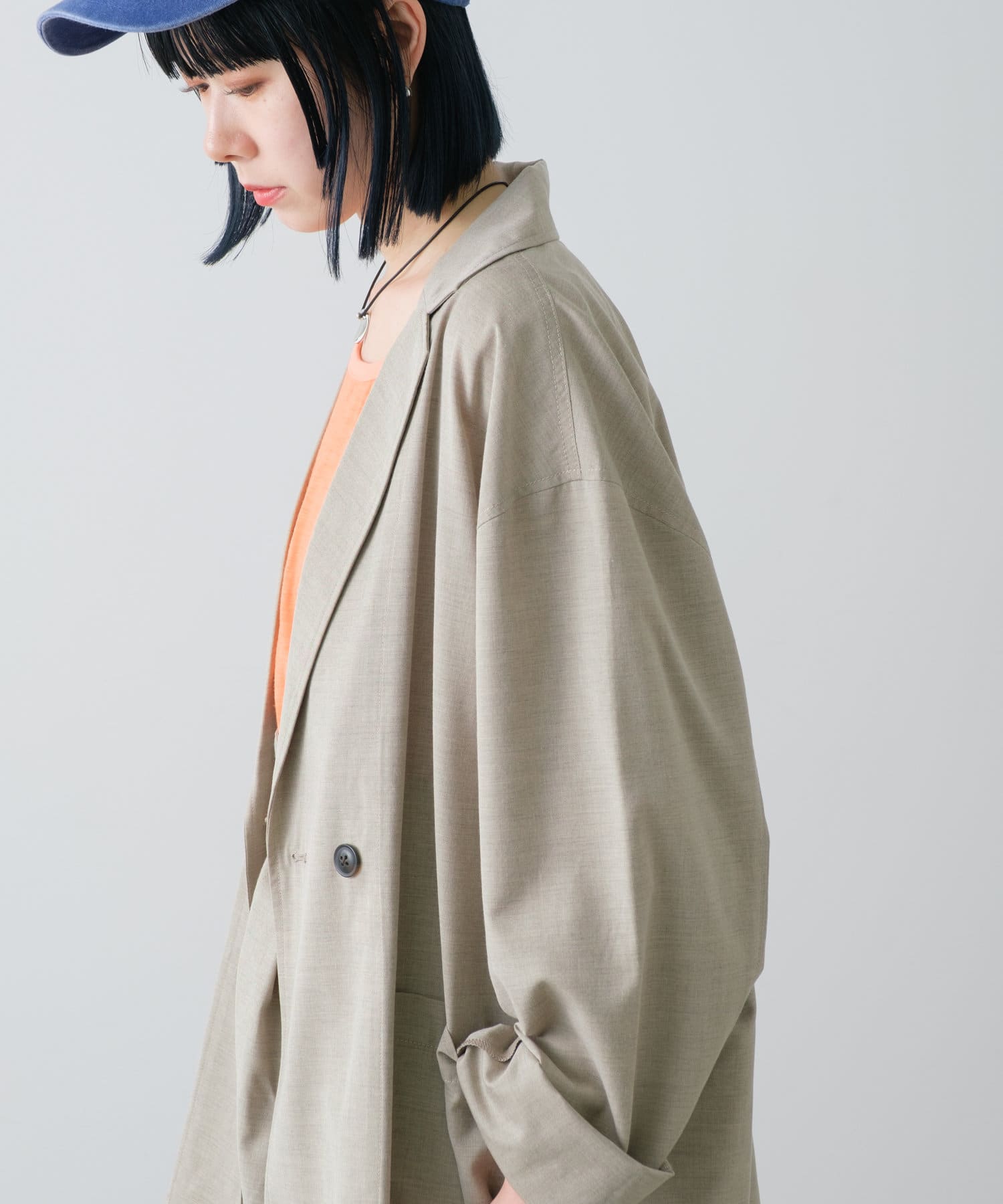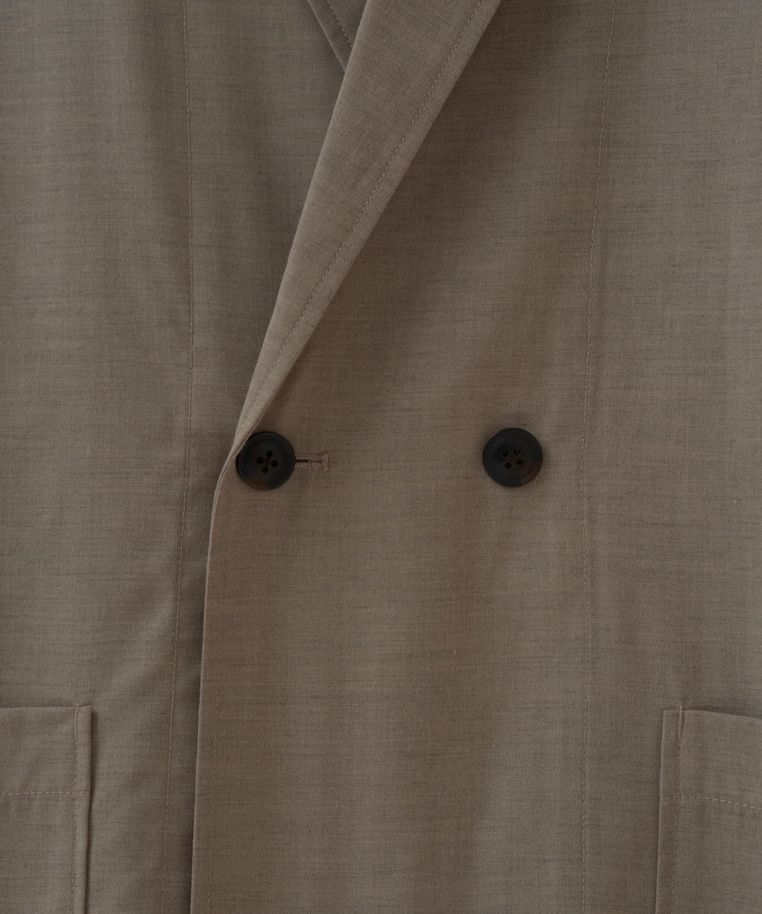 気温の高くなるシーズンに最適な薄手で肌触りの良い生地を採用したダブルブレステッドジャケットです。