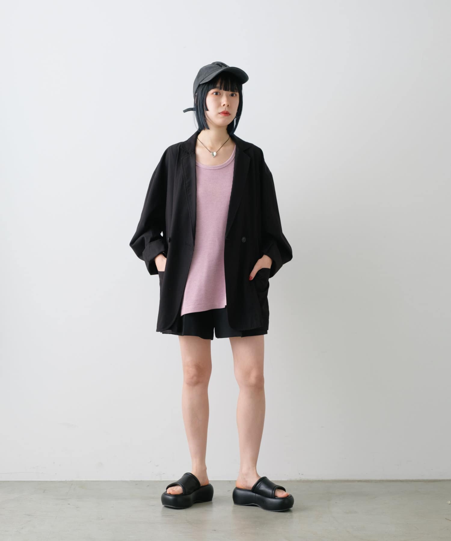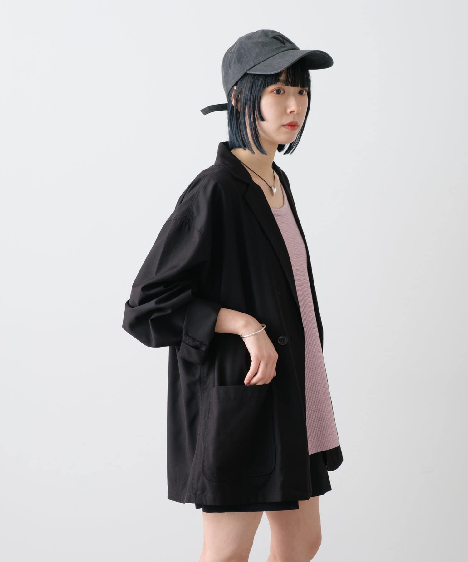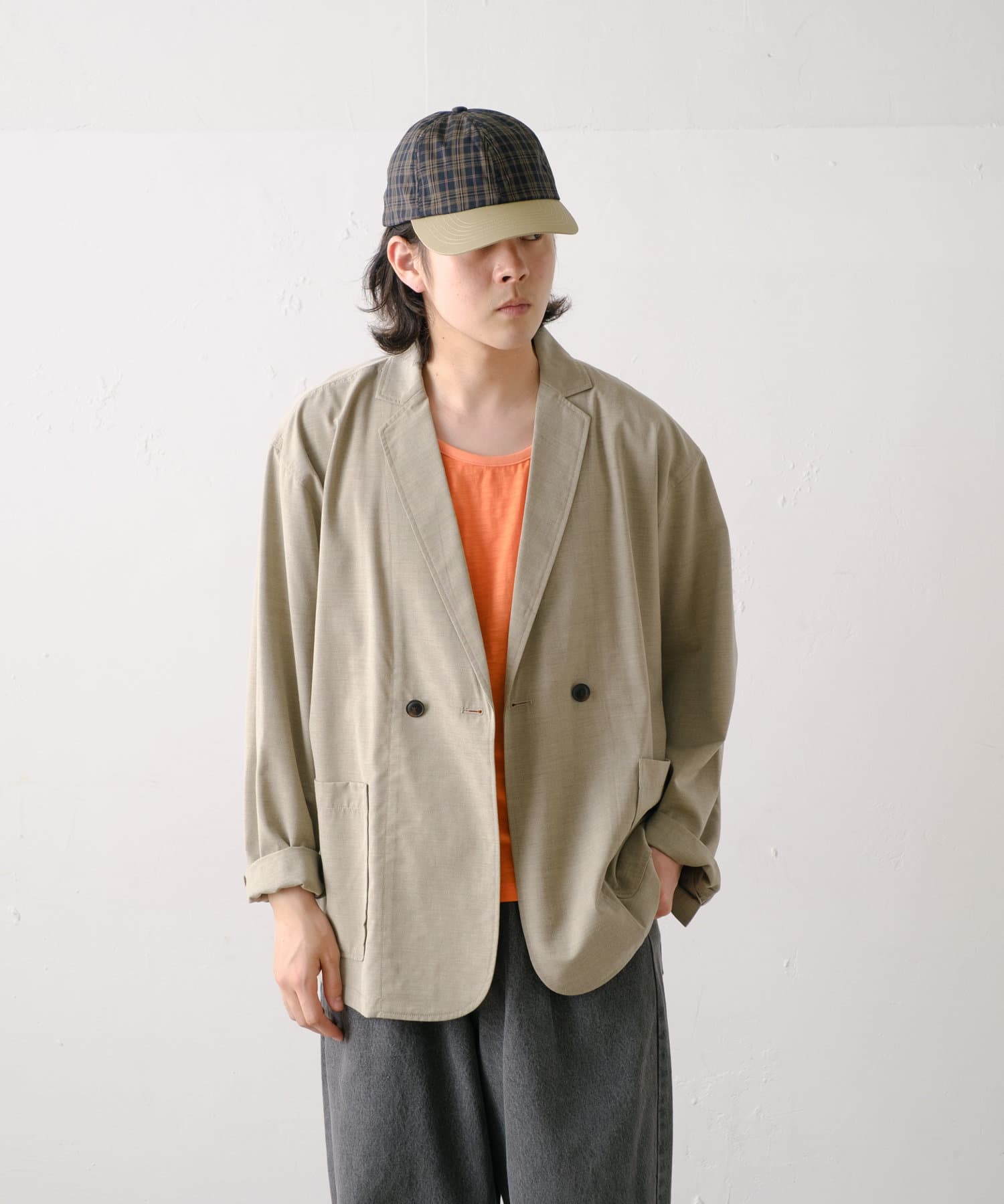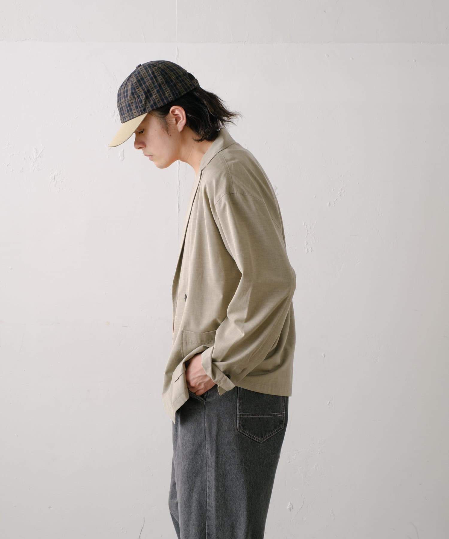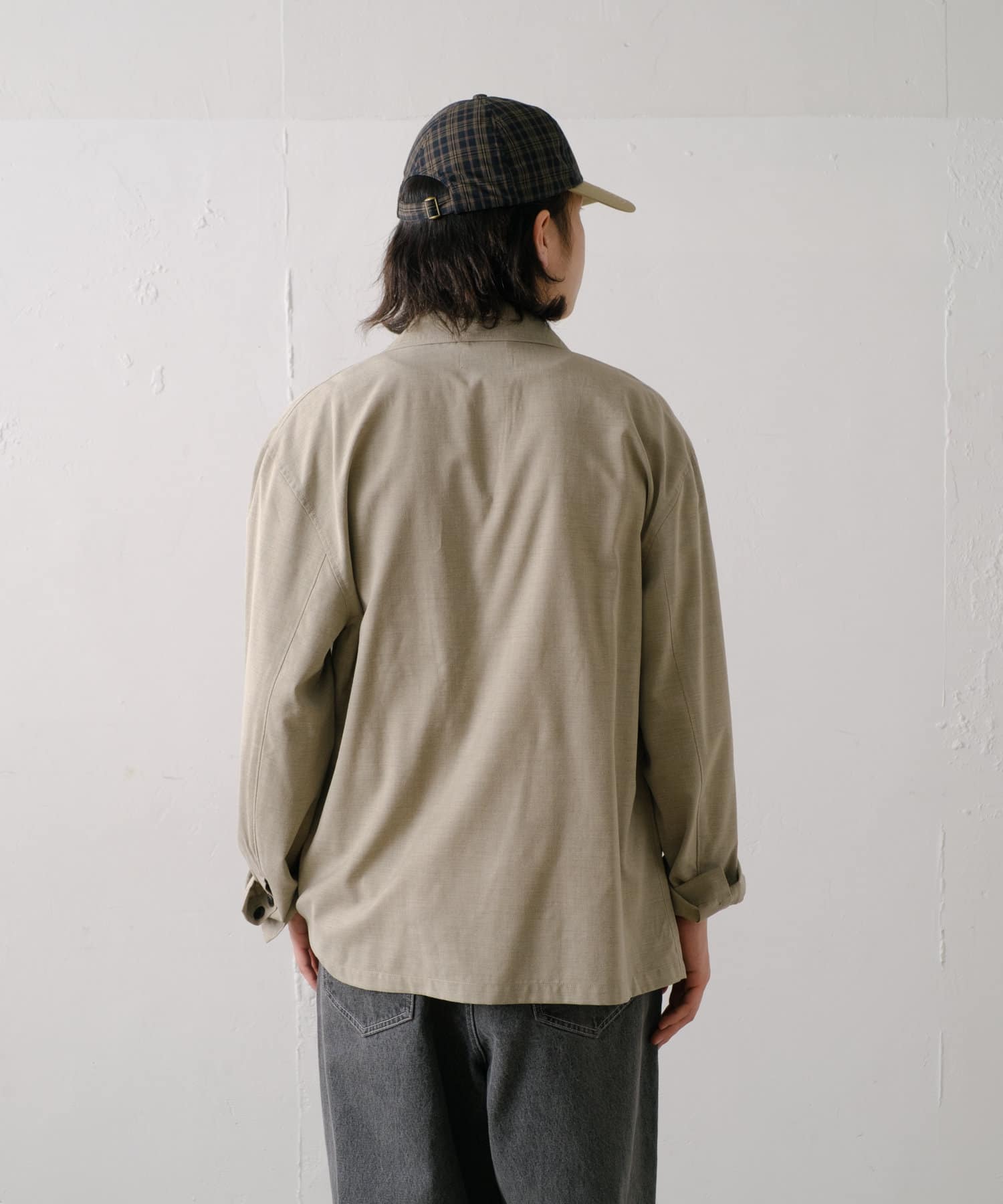 肩パッドや芯地、袖裏の生地を一切使っていないラフに羽織れるジャケットで、カーゴパンツやデニム、キレイ目なスラックスパンツまで幅広いボトムスと合わせて頂けます。