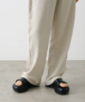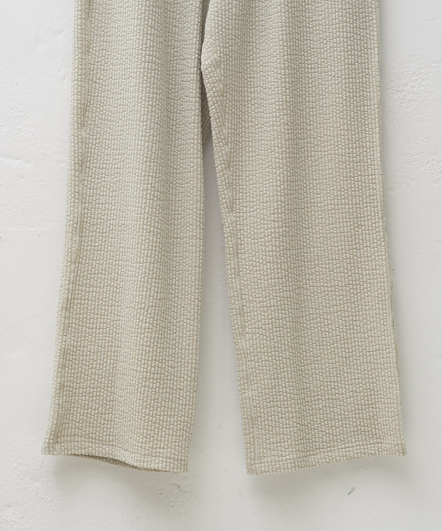 元々はパジャマやカジュアルウェアによく使用されていますが、フォーマル感のあるデザインにシアサッカーを使うことで抜け感やカジュアル感のある仕上がりに。シーンに合わせたスタイリングが楽しめるイージーパンツです。