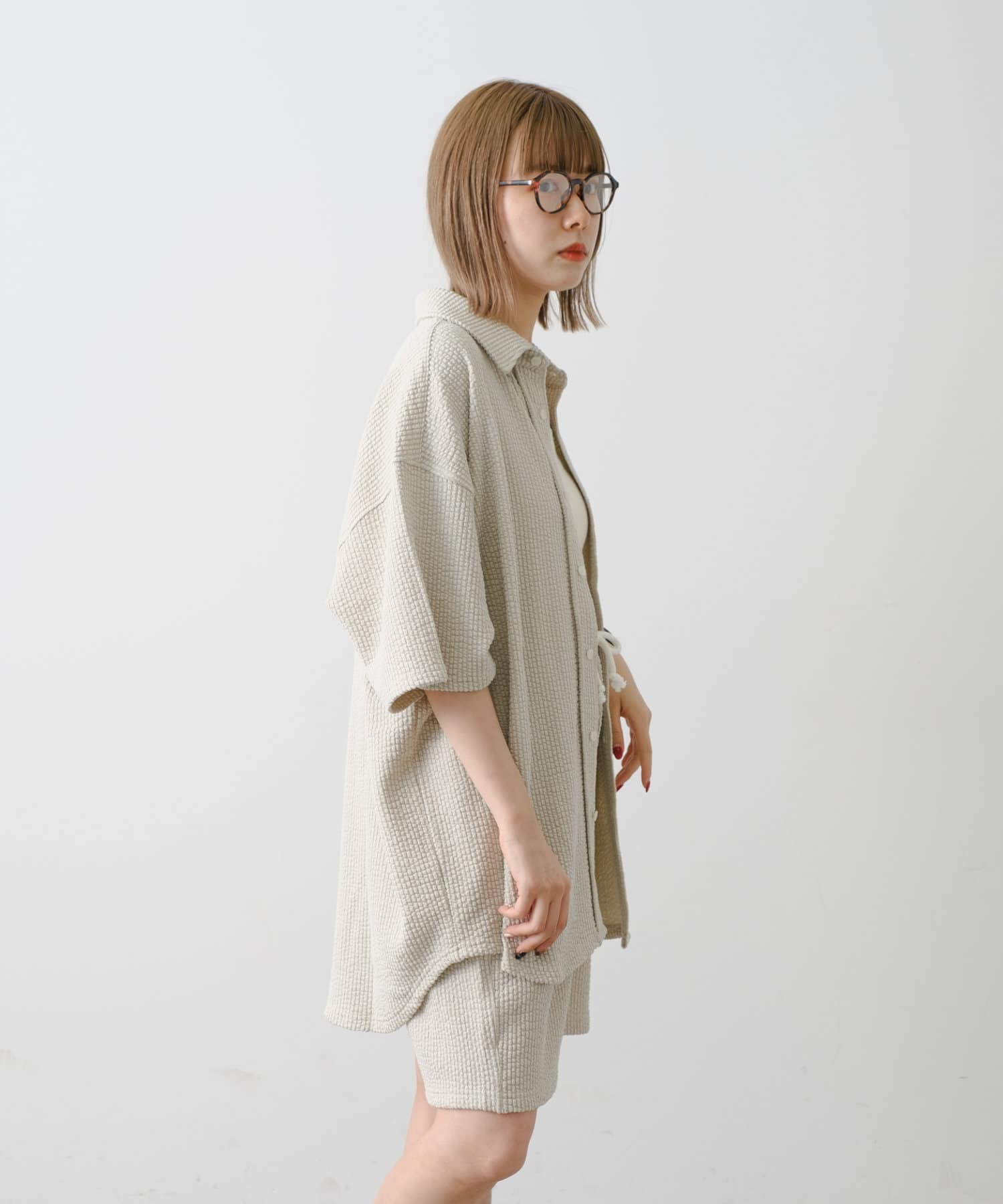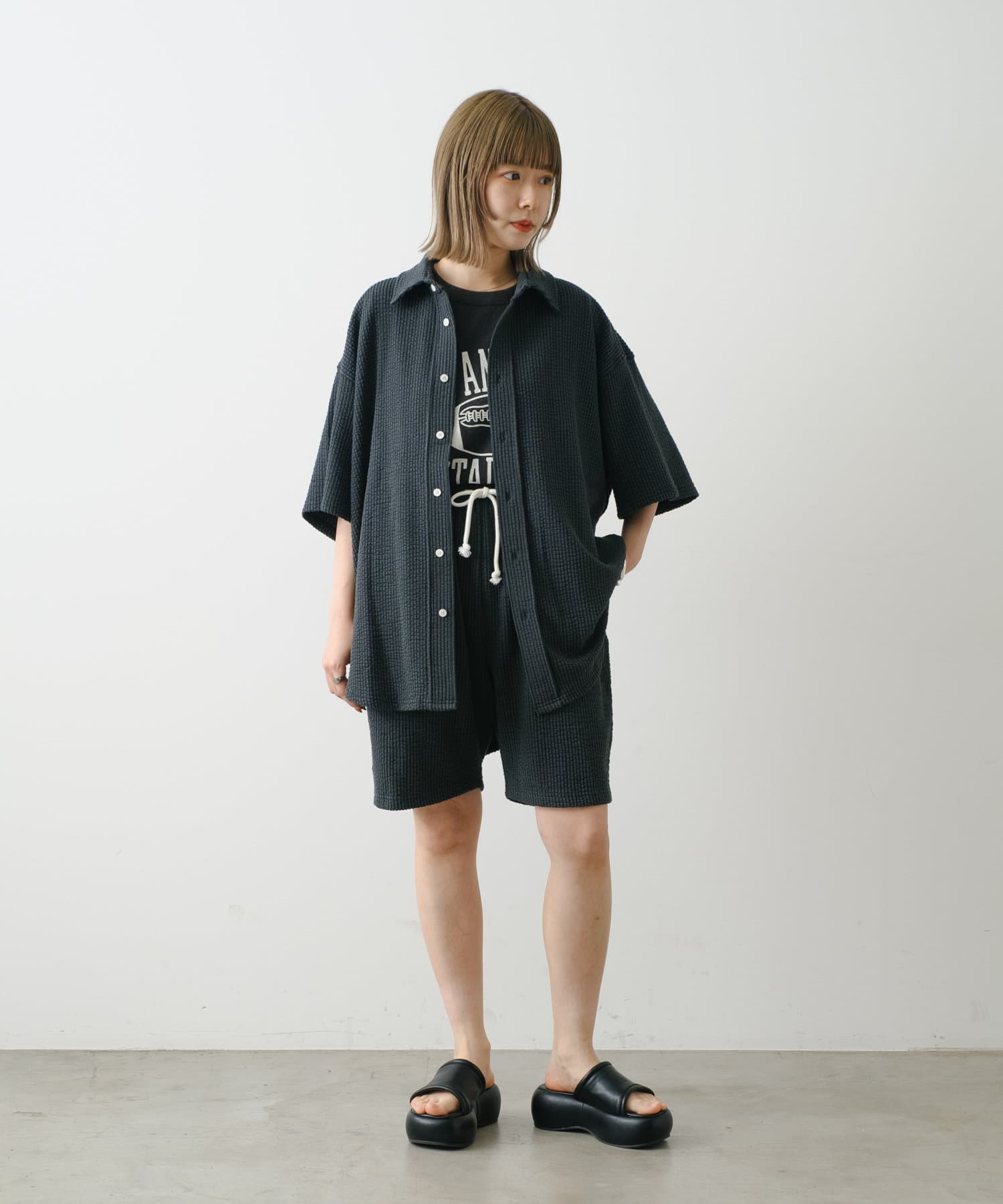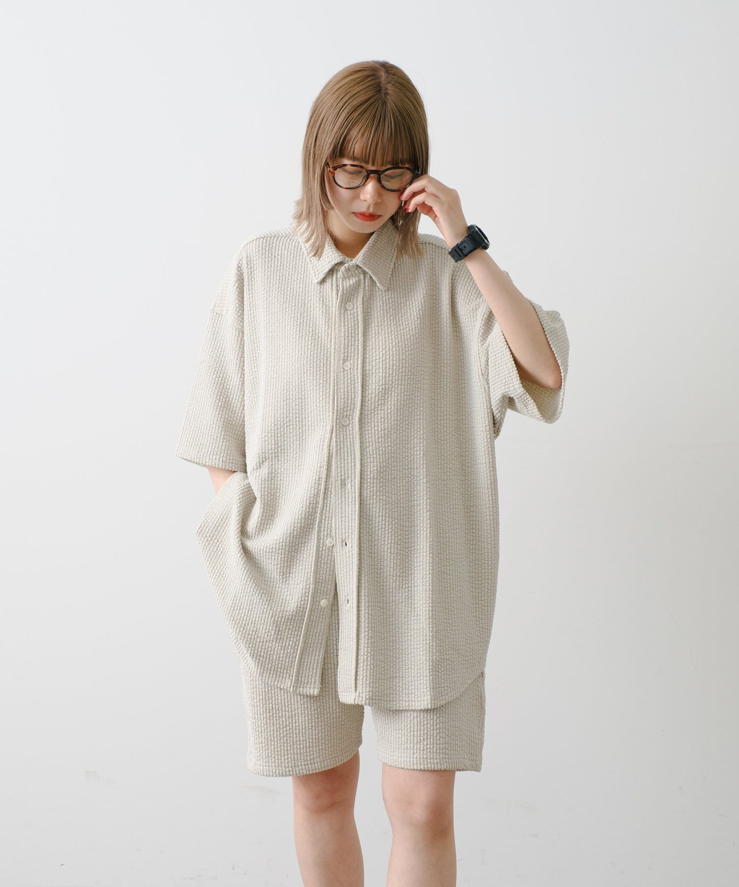 【UNISEX】STRETCH SEERSUCKER SHORT SLEEVE SHIRT